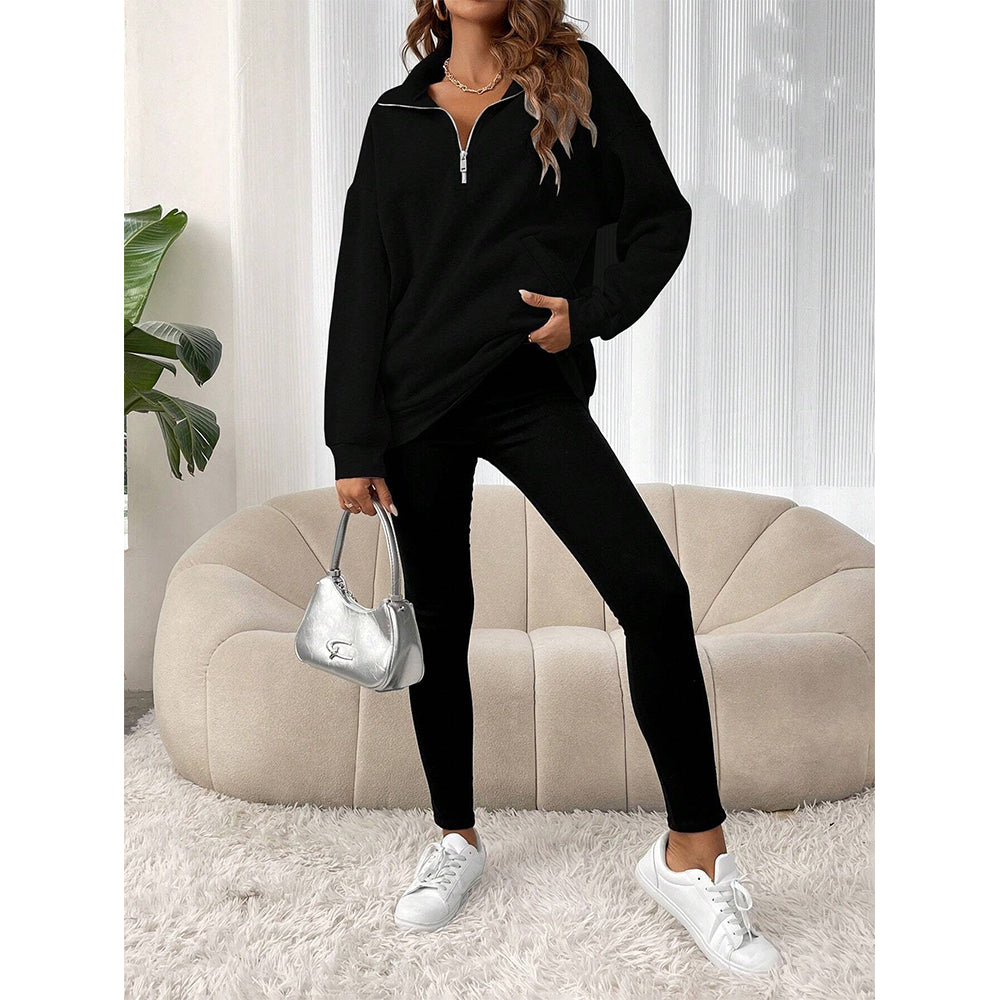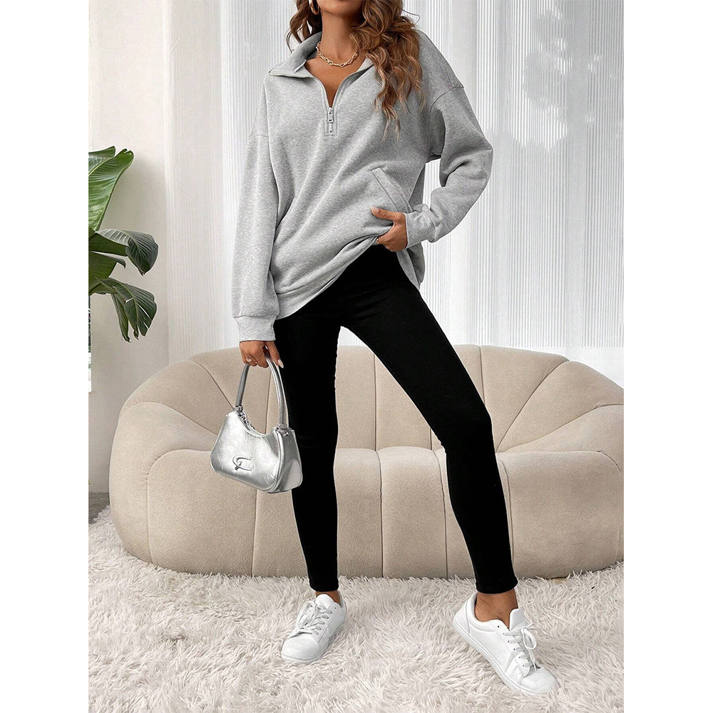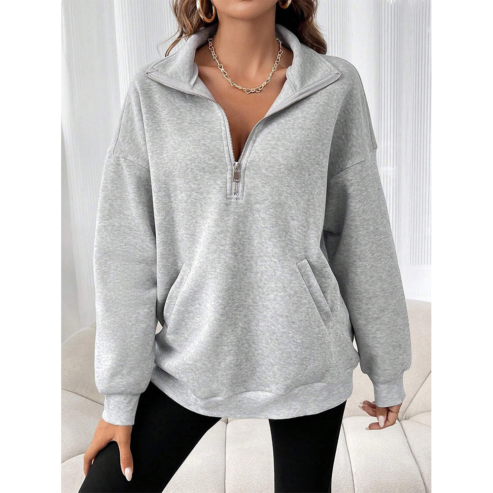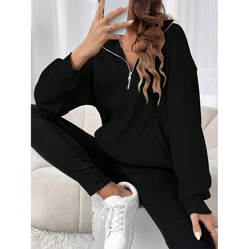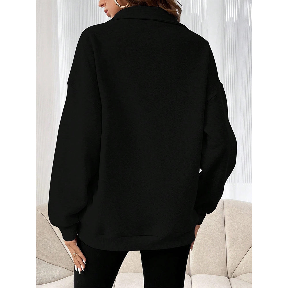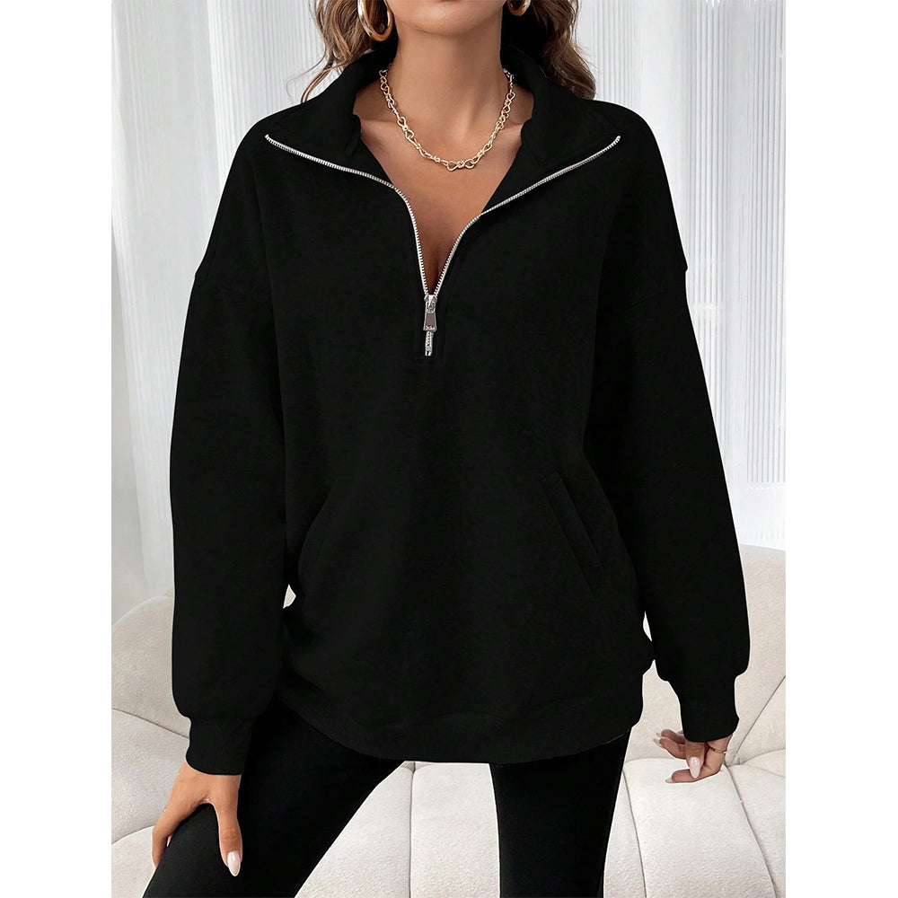 2024 Neue Herbst Und Winter Mode Reißverschluss Revers Sweatshirt Einfarbig Lässig Damen Sweatshirt