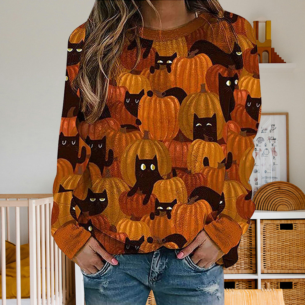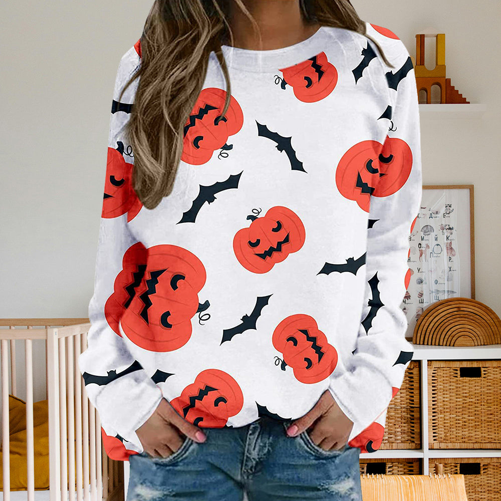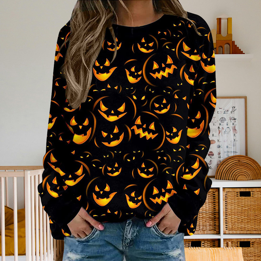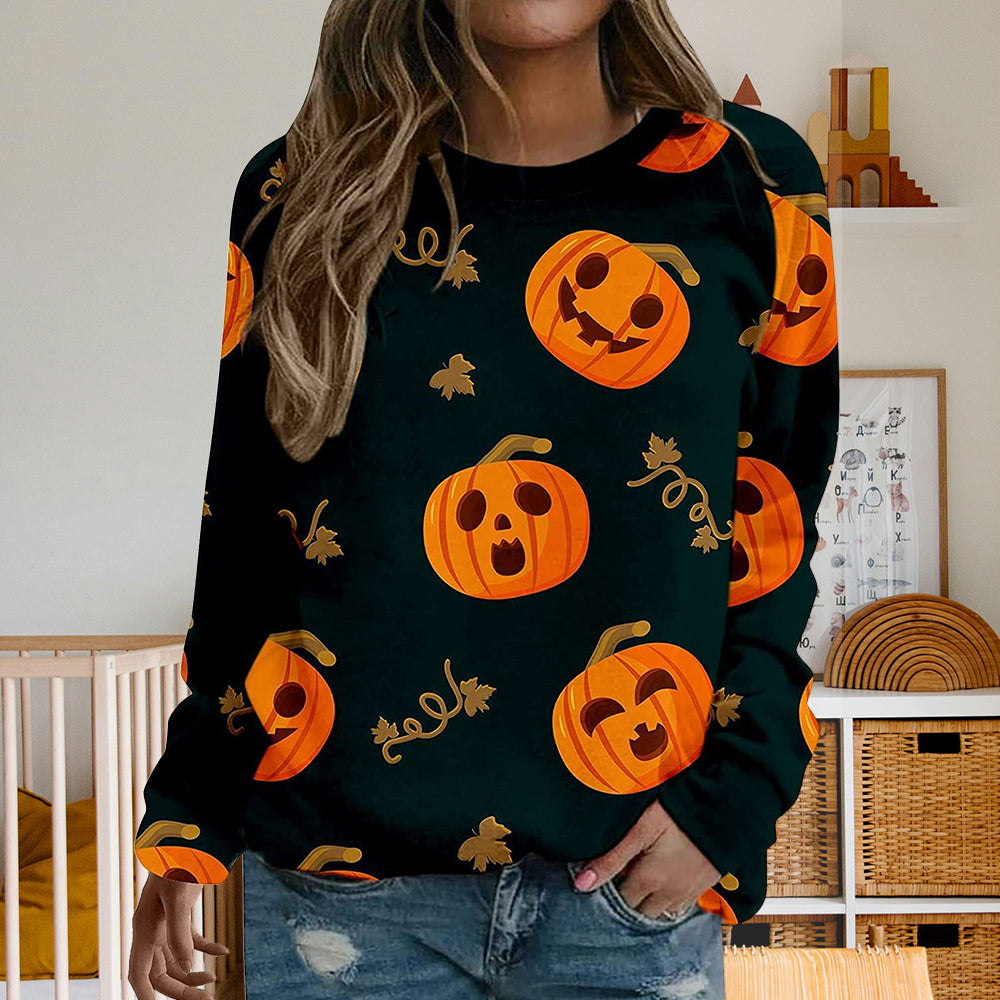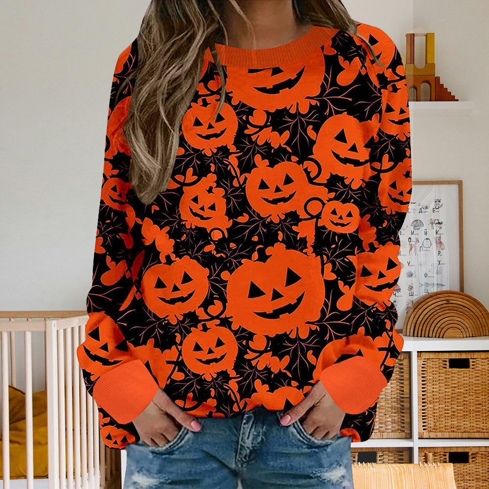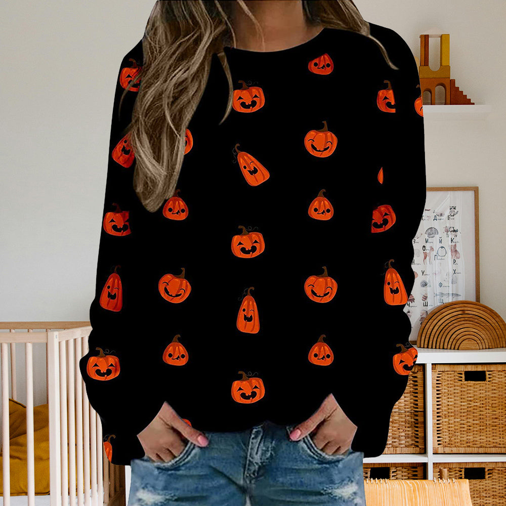 Damen-Sweatshirt Mit Halloween-Kürbismuster, Bequem, Lässig, Rundhalsausschnitt, Langärmelig