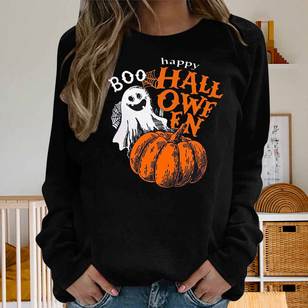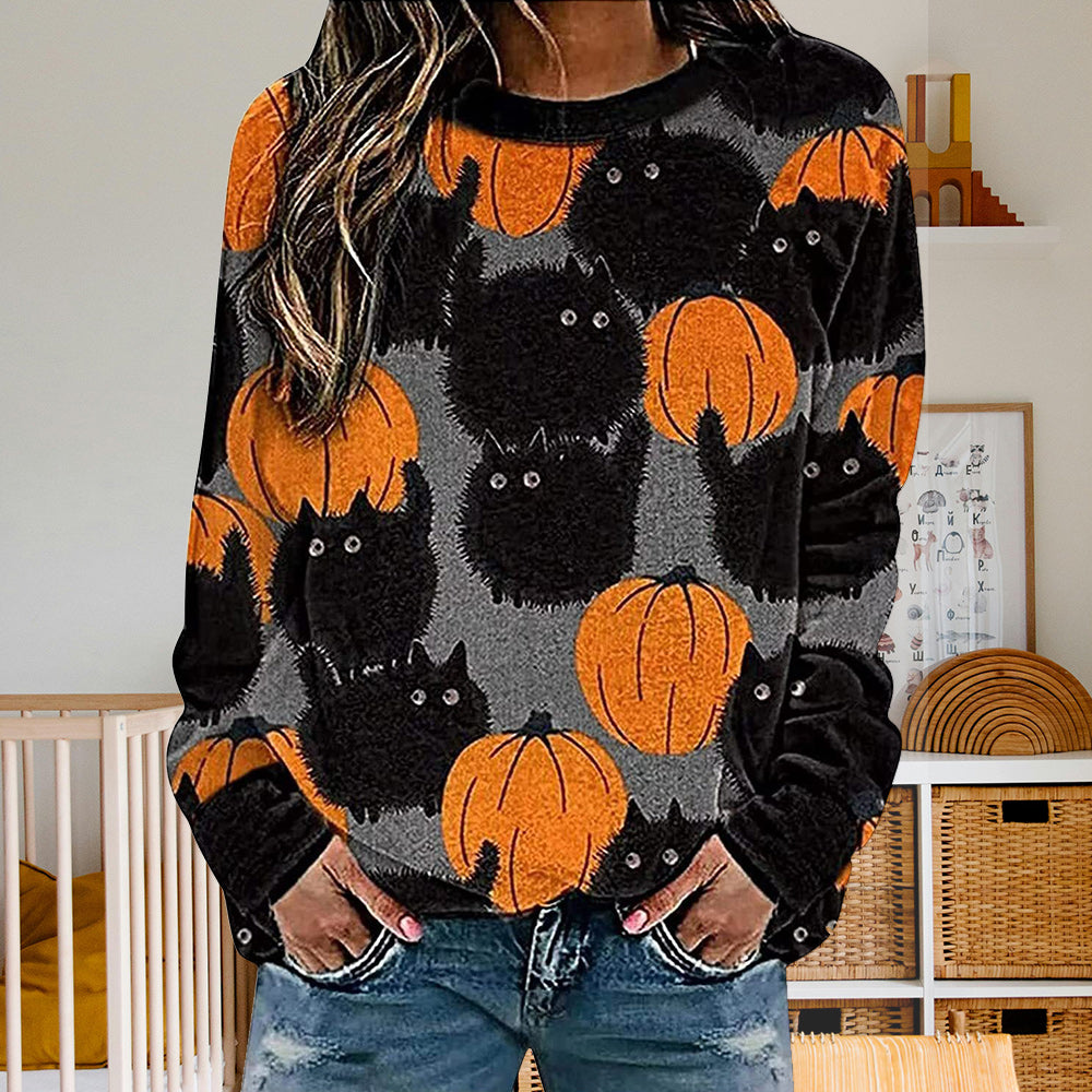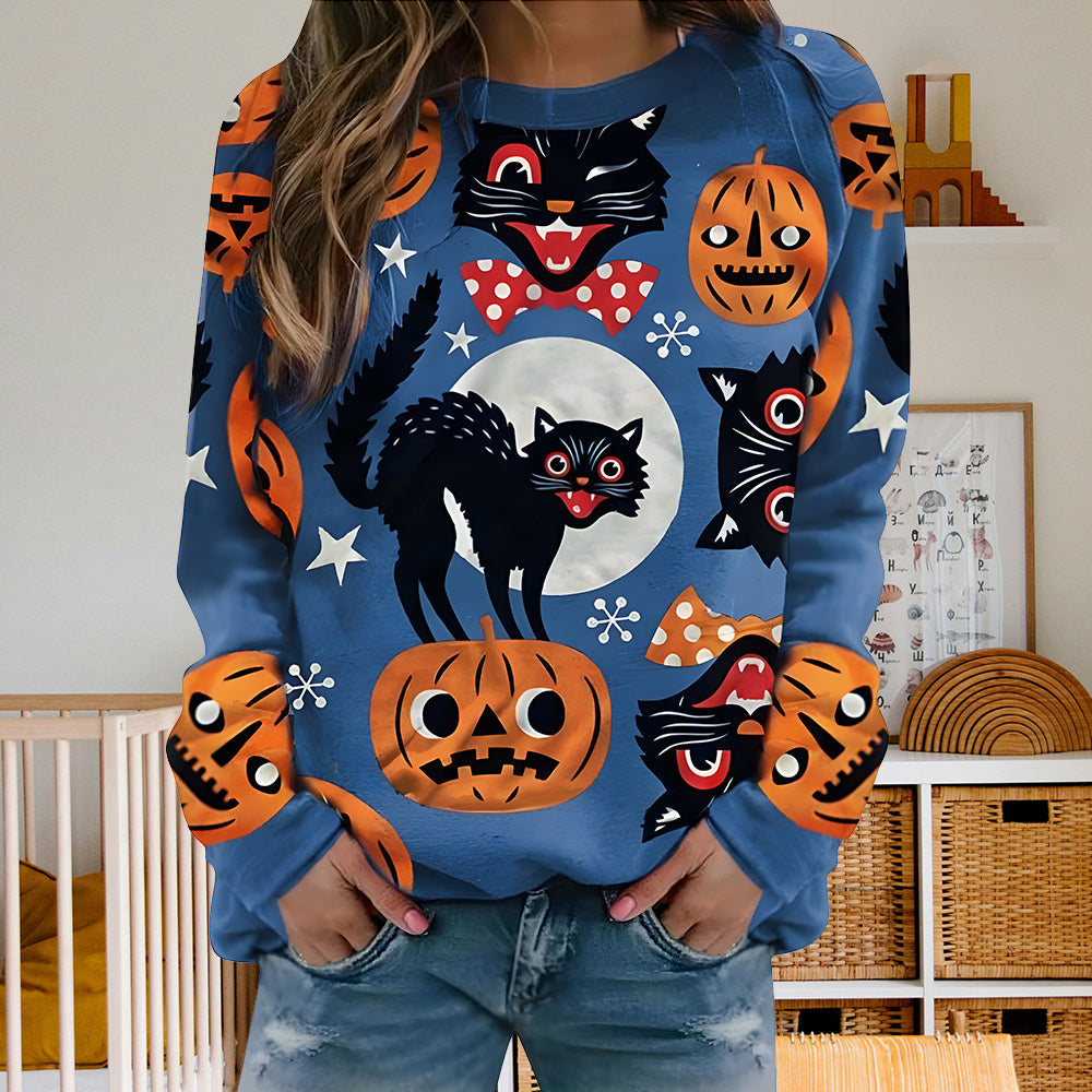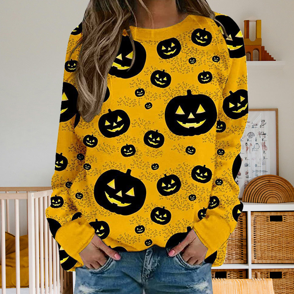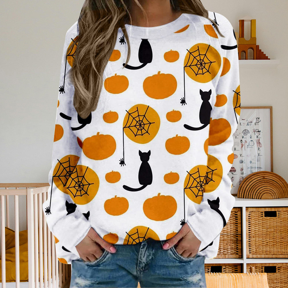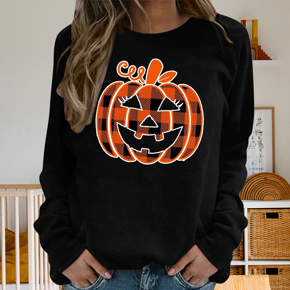 Damen-Sweatshirt Mit Halloween-Kürbismuster, Bequem, Lässig, Rundhalsausschnitt, Langärmelig
