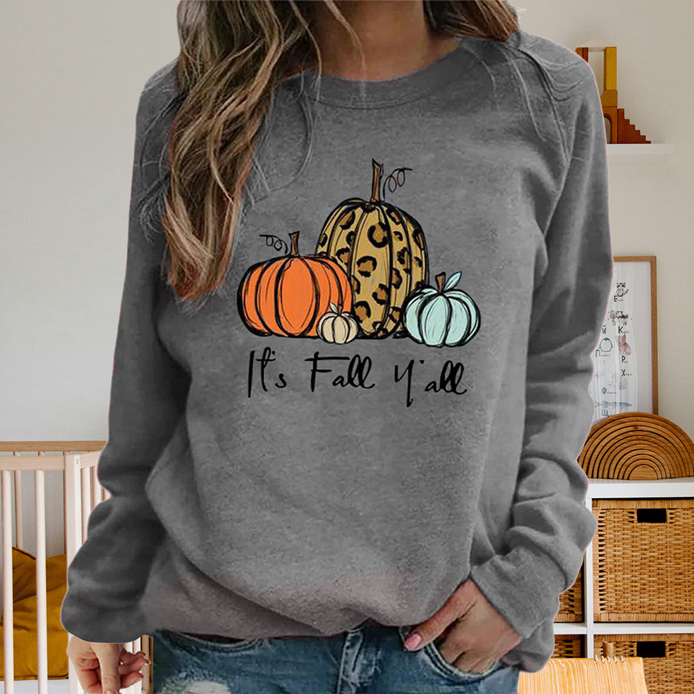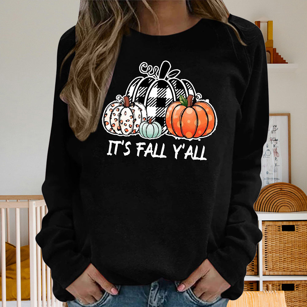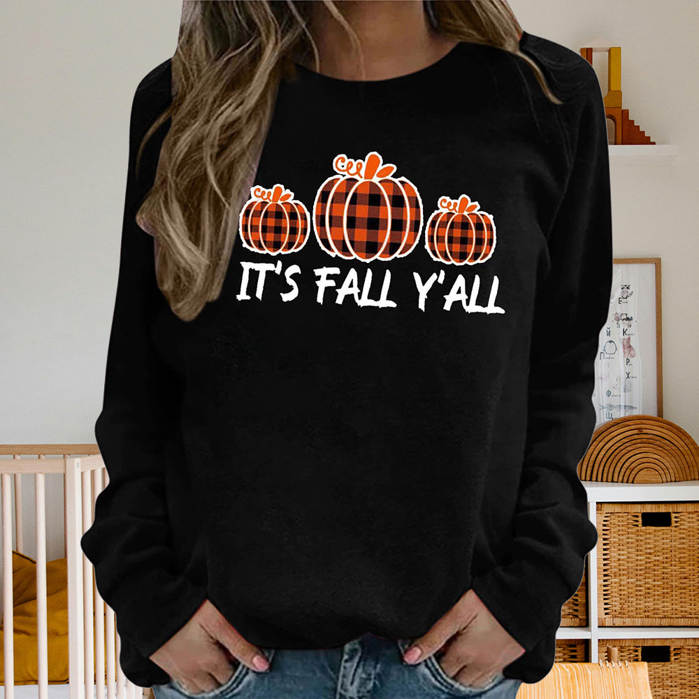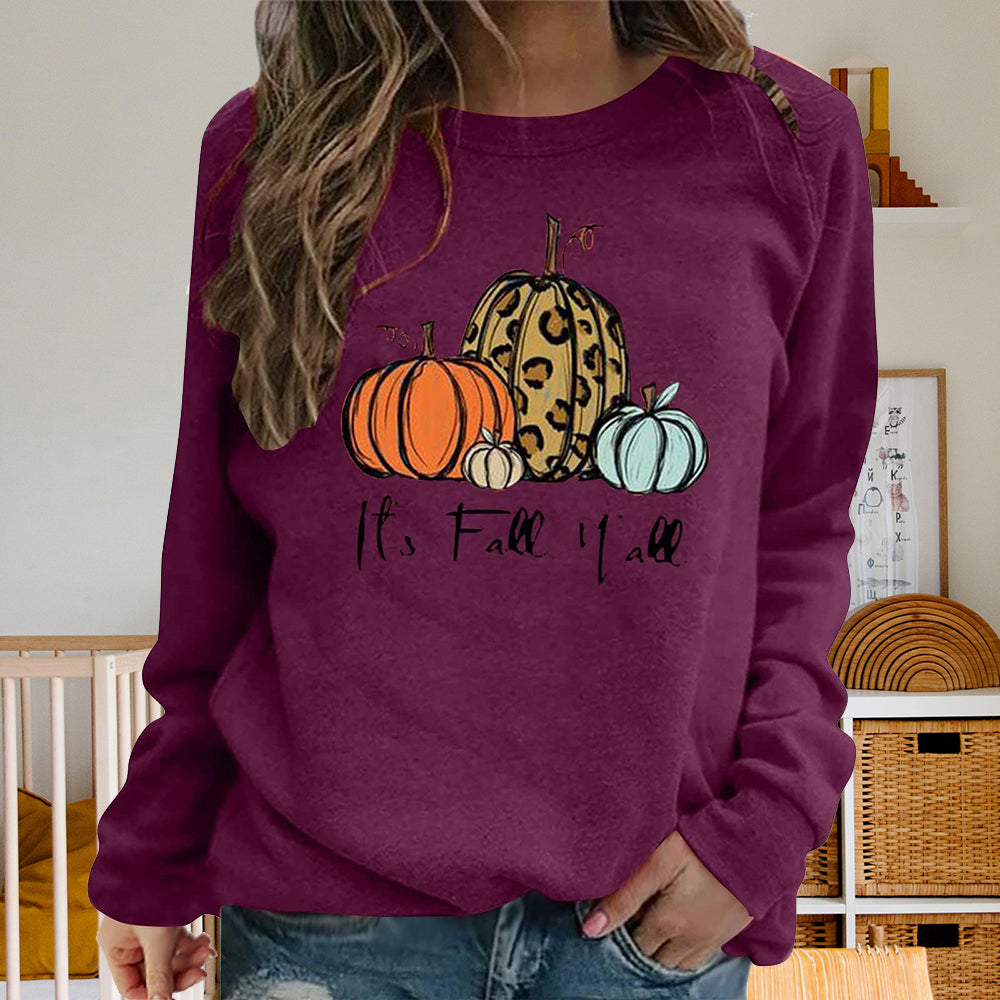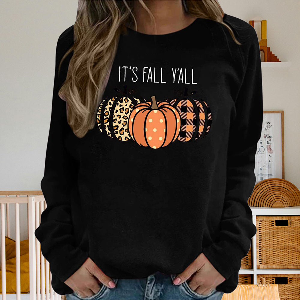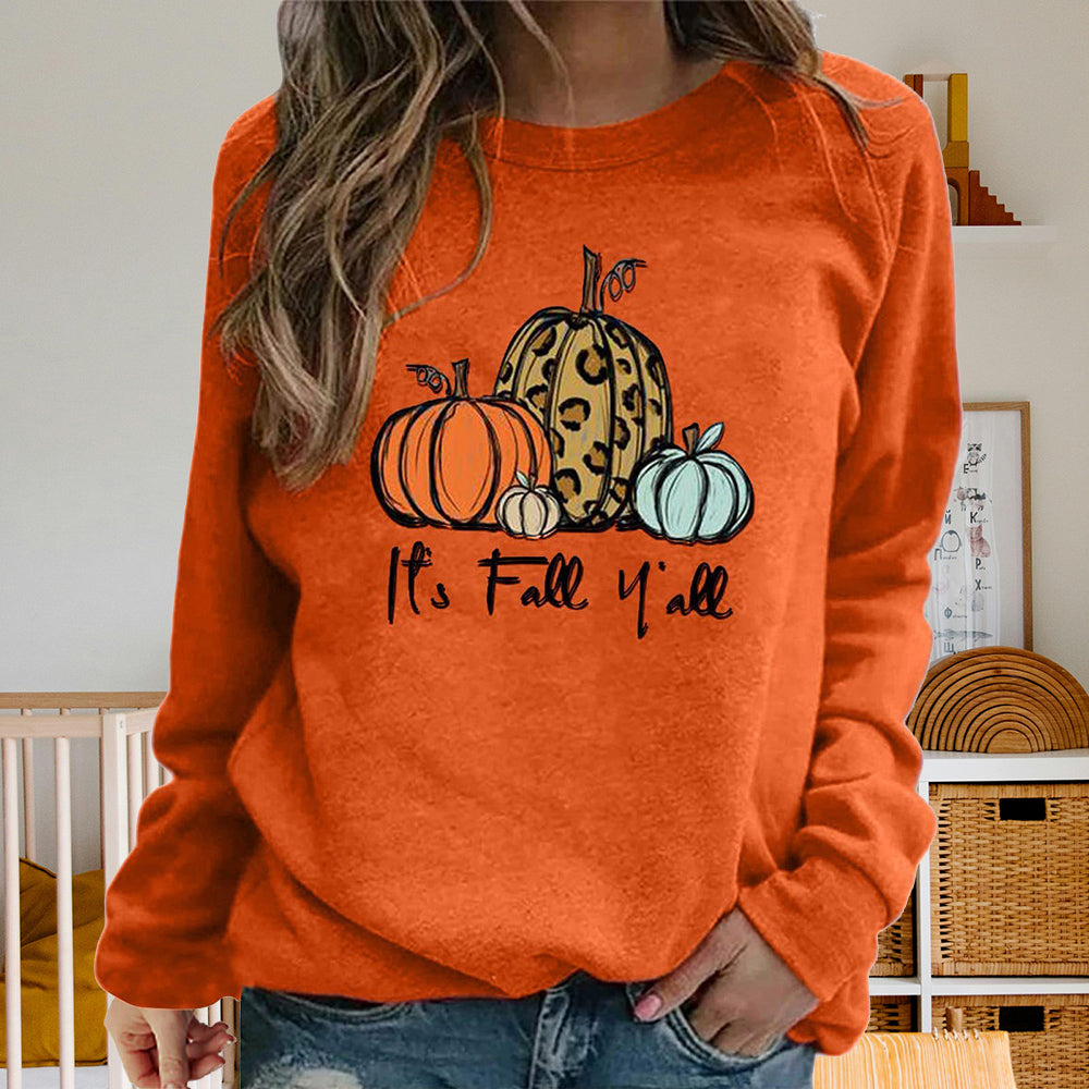 Damen-Sweatshirt Mit Halloween-Kürbismuster, Bequem, Lässig, Rundhalsausschnitt, Langärmelig
