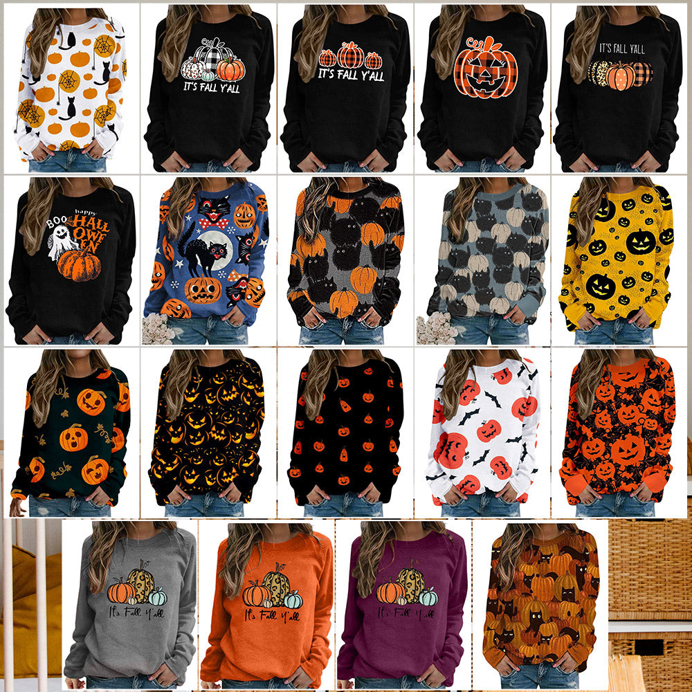 - 1 x Damen-Sweatshirt Mit Halloween-Kürbismuster, Bequem, Lässig, Rundhalsausschnitt, Langärmelig
