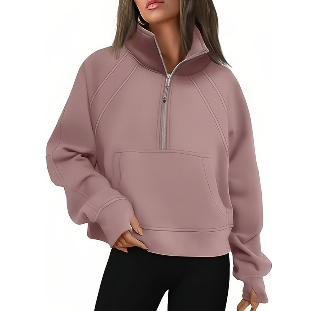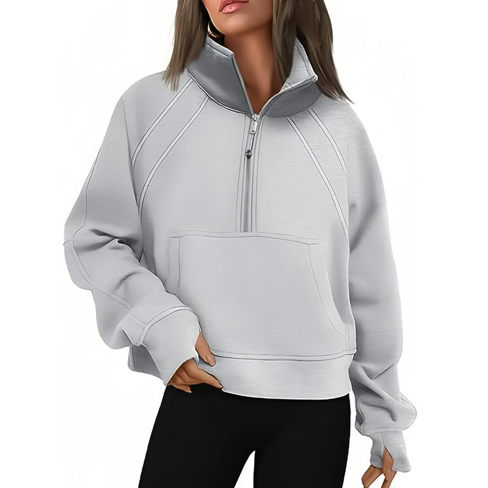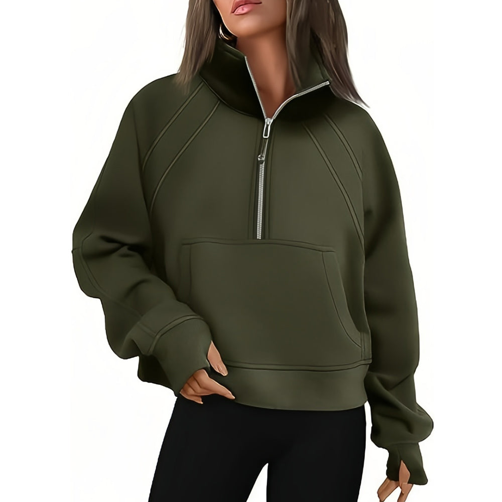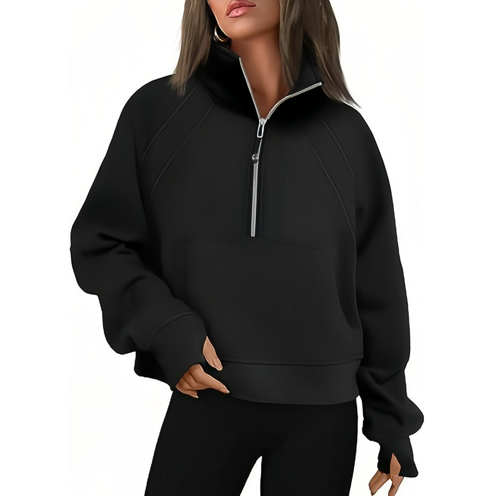 - 1 x Kurzer Stehkragen mit halbem Reißverschluss und einfarbiges Samt-Sweatshirt