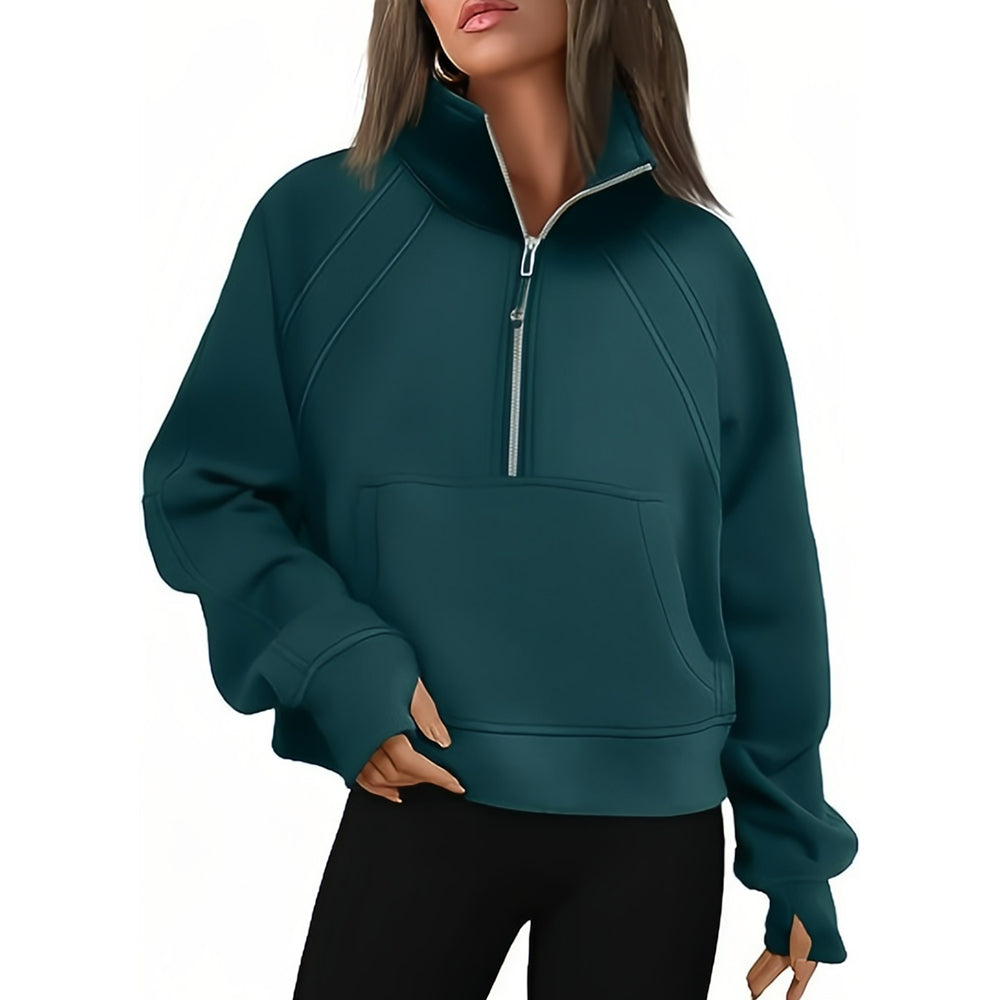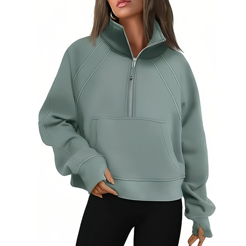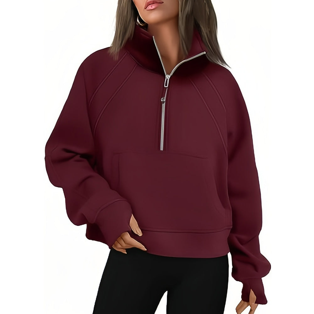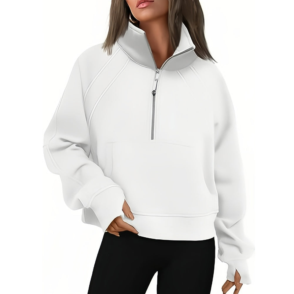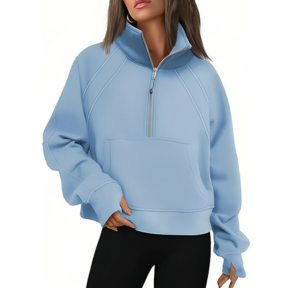 - 1 x Kurzer Stehkragen mit halbem Reißverschluss und einfarbiges Samt-Sweatshirt
