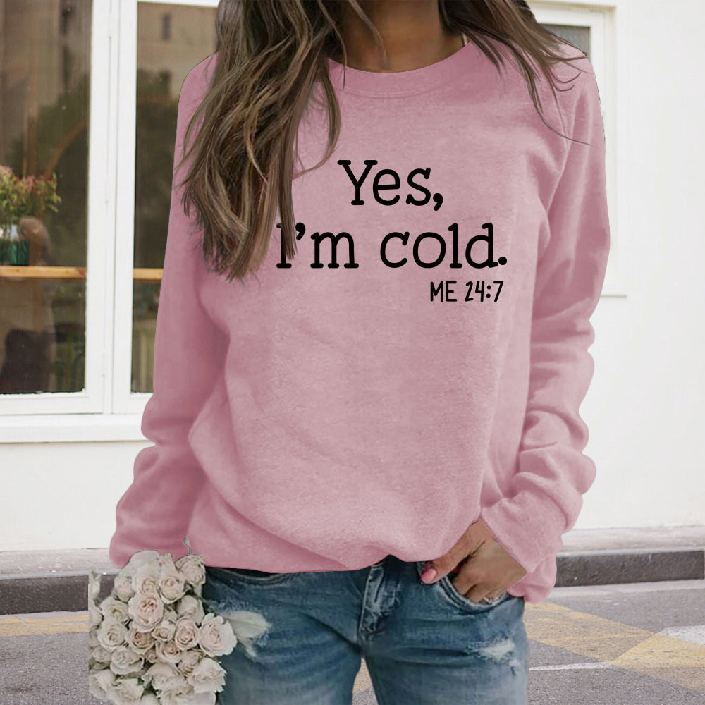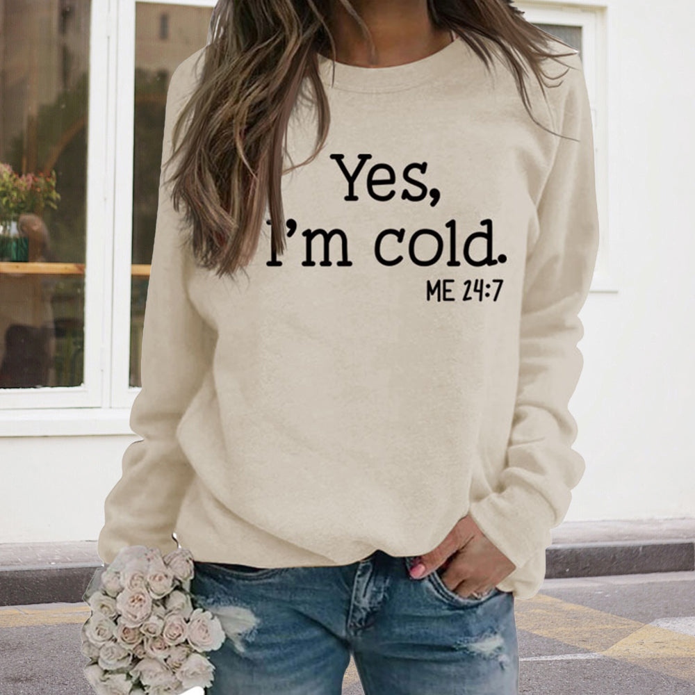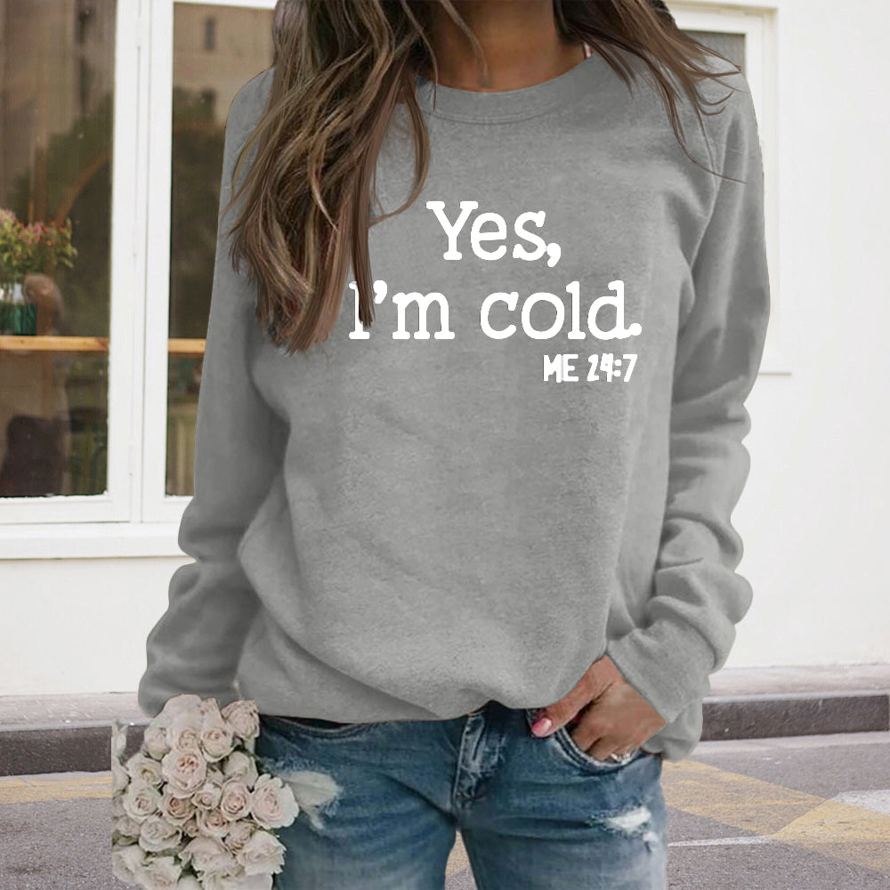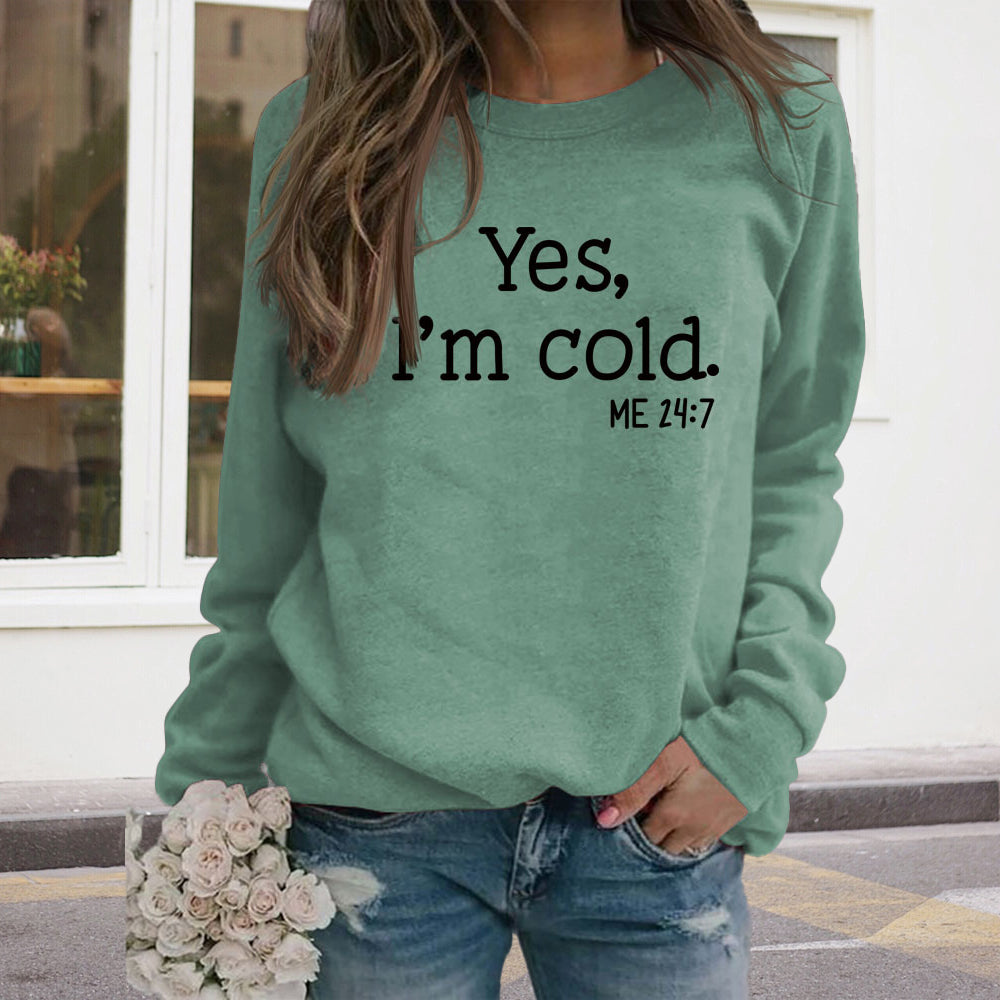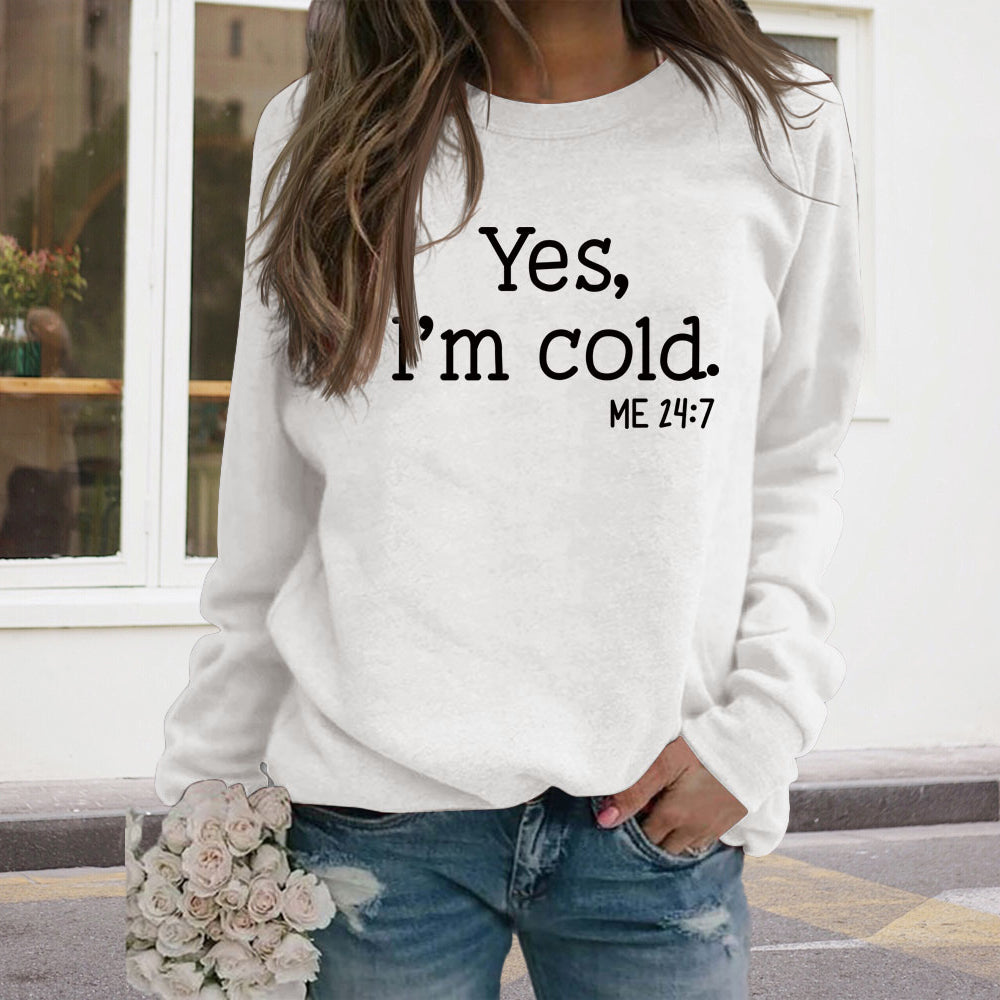 Lässiges, lockeres Damen-Sweatshirt mit Aufdruck „Yes I'm Cold“ für Herbst und Winter