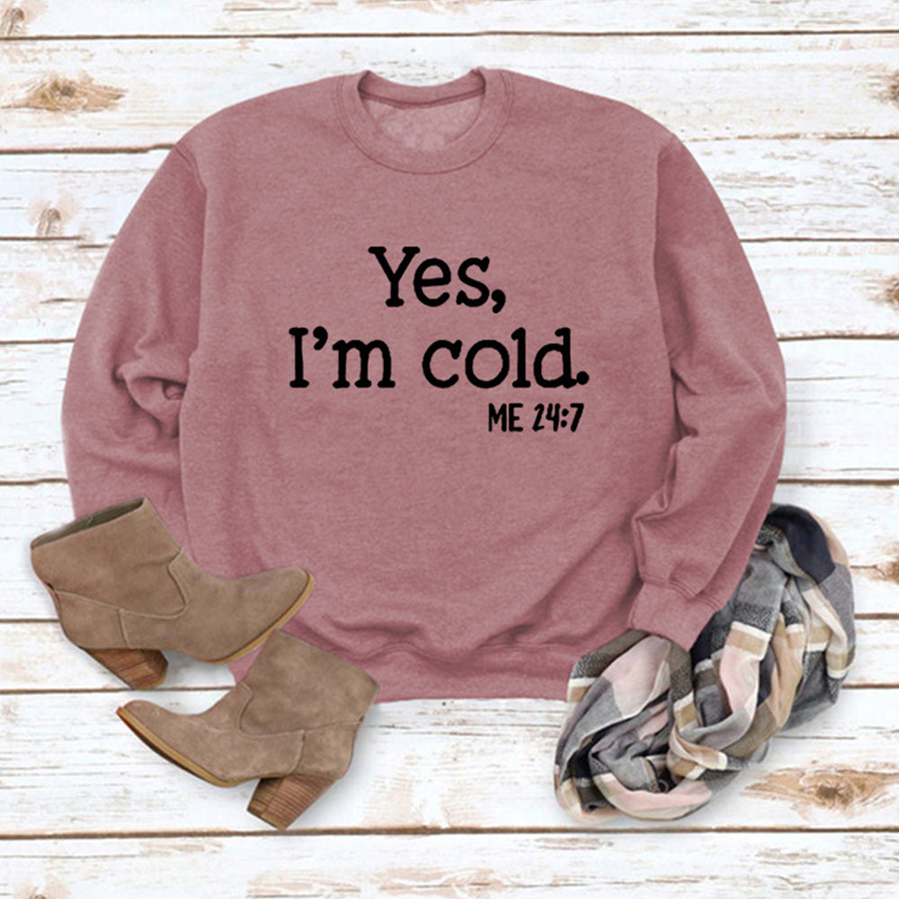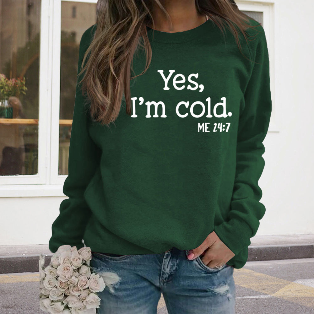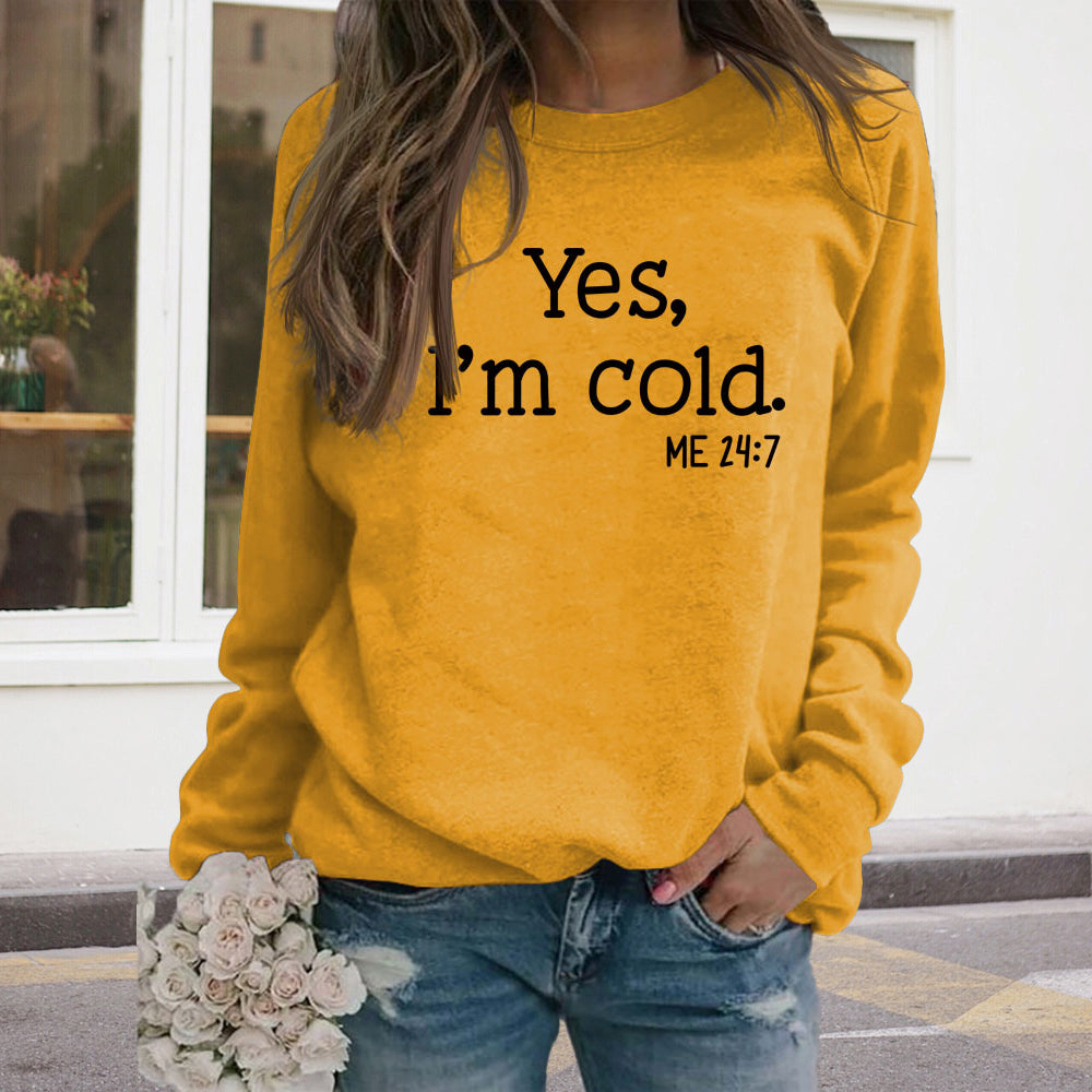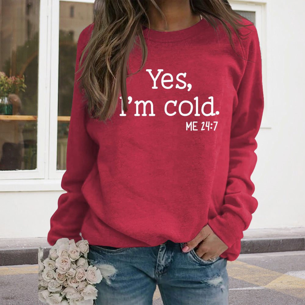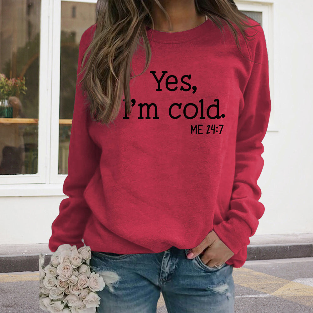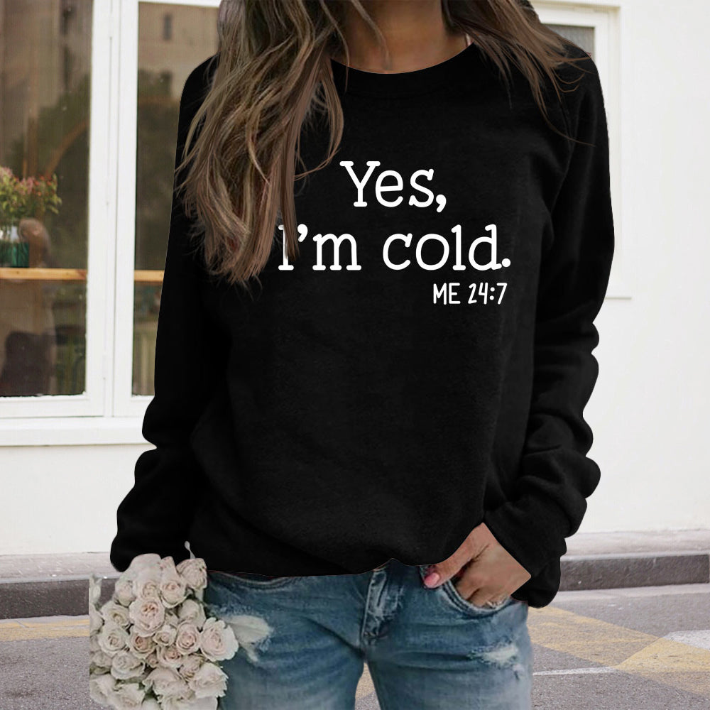 Lässiges, lockeres Damen-Sweatshirt mit Aufdruck „Yes I'm Cold“ für Herbst und Winter