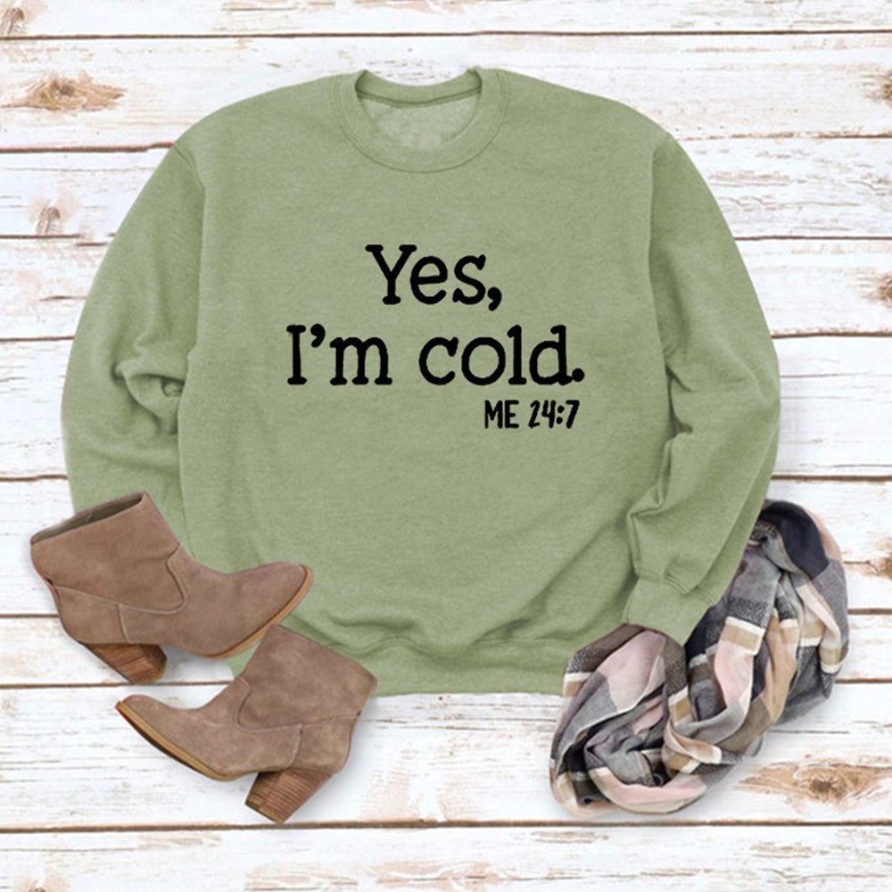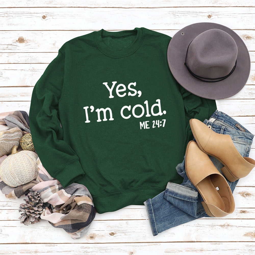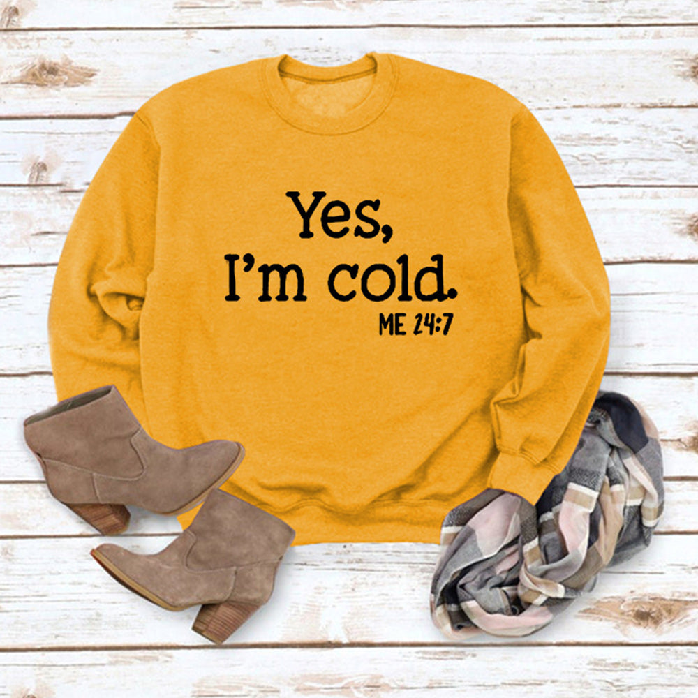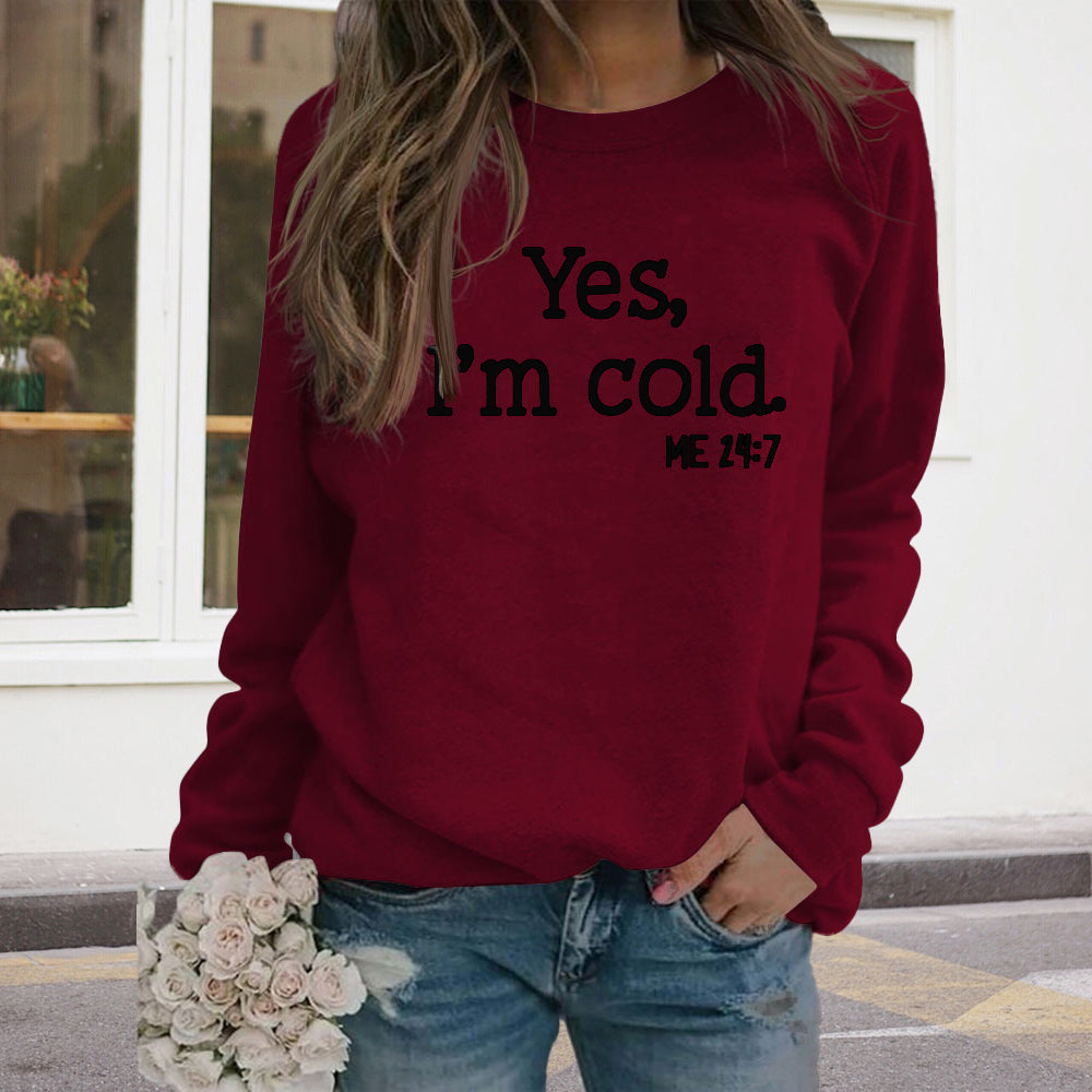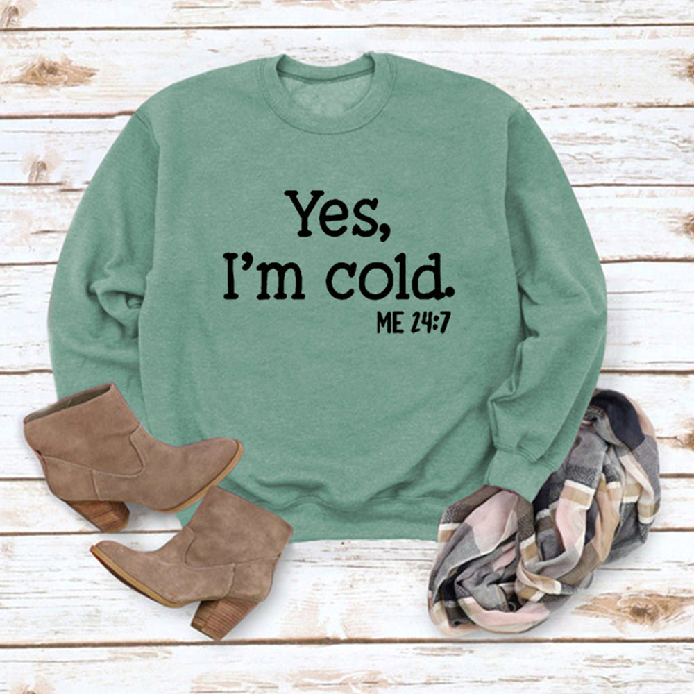 Lässiges, lockeres Damen-Sweatshirt mit Aufdruck „Yes I'm Cold“ für Herbst und Winter