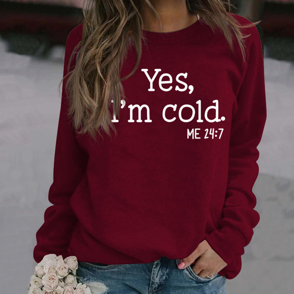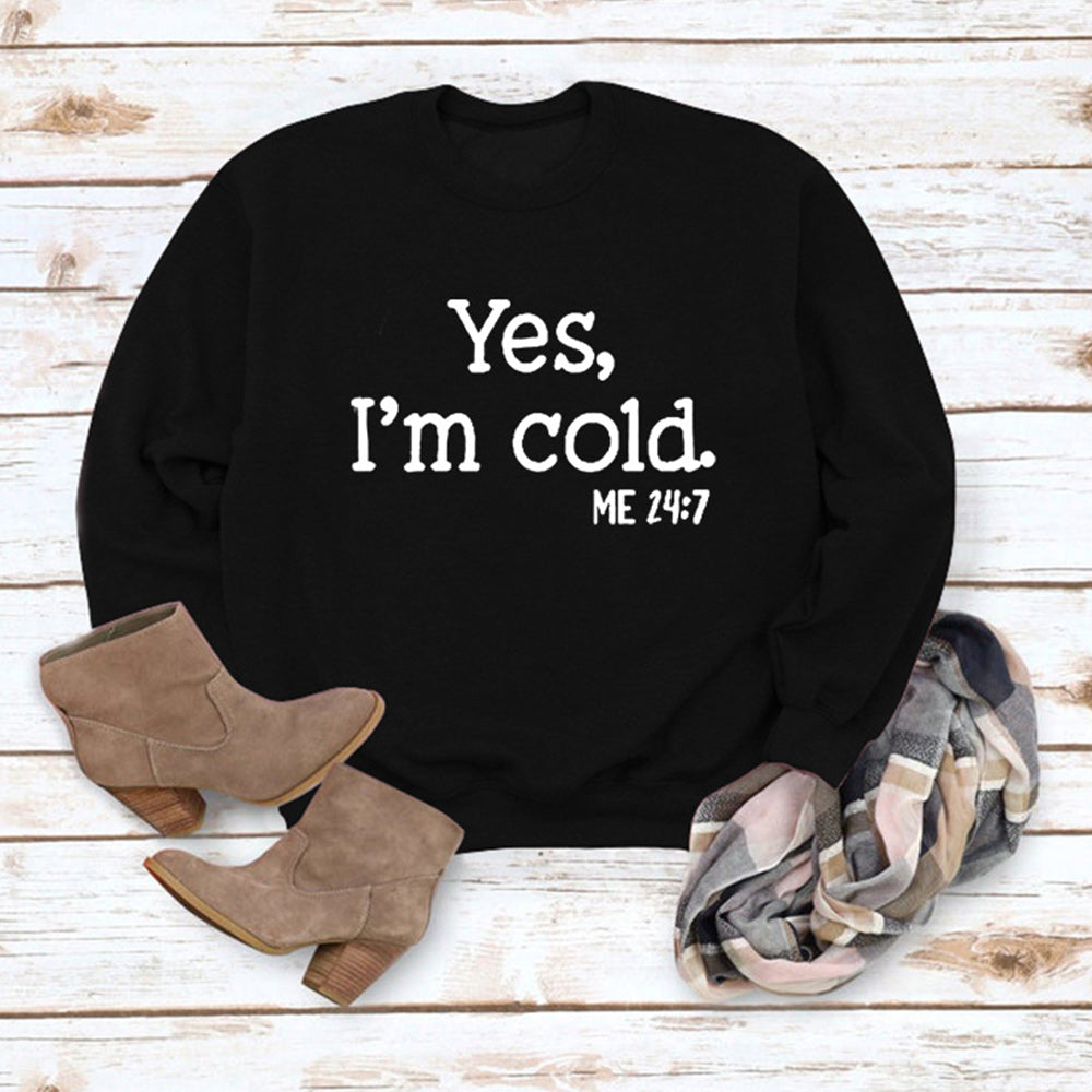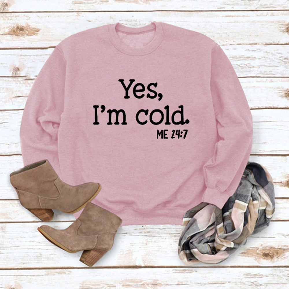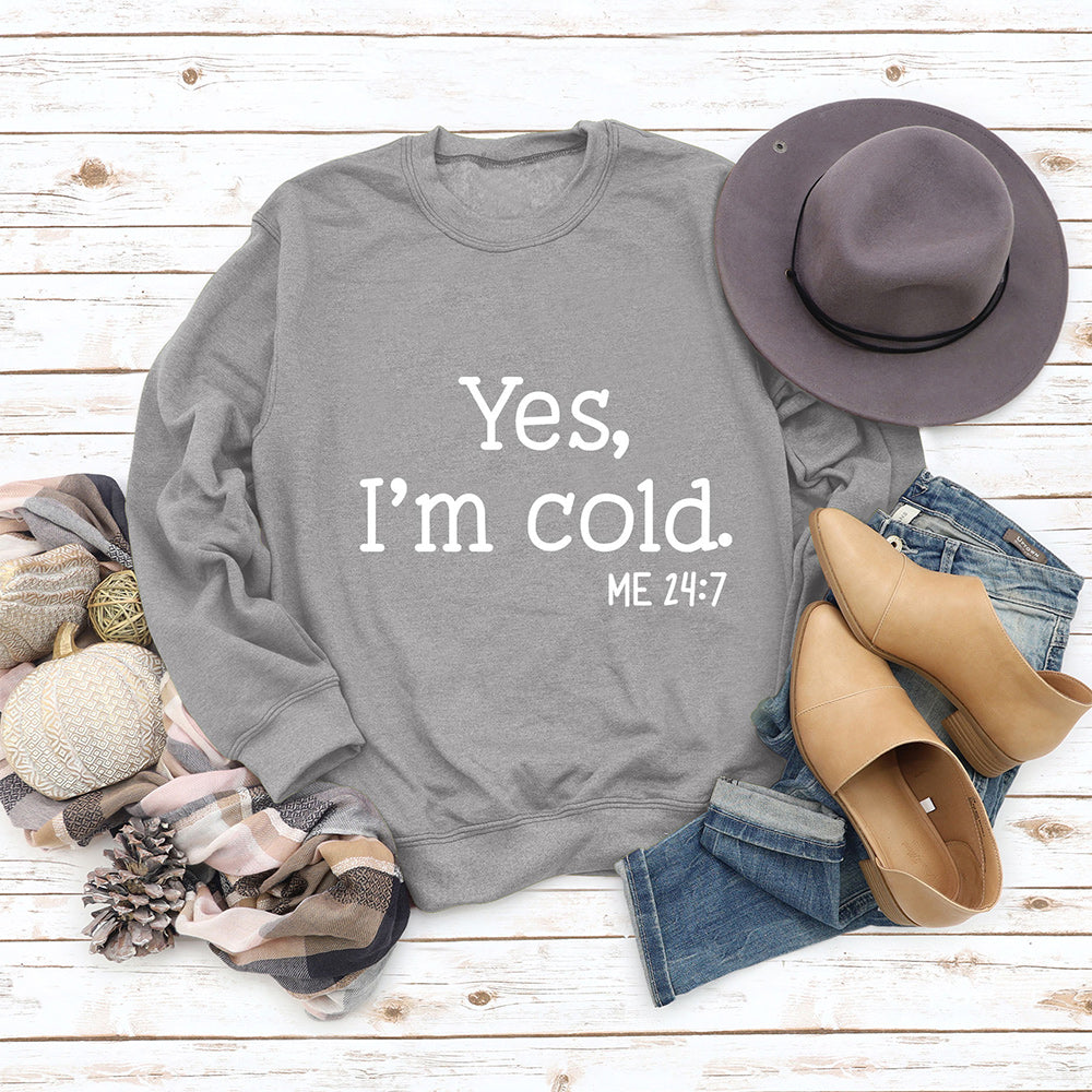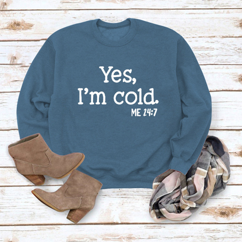 Lässiges, lockeres Damen-Sweatshirt mit Aufdruck „Yes I'm Cold“ für Herbst und Winter