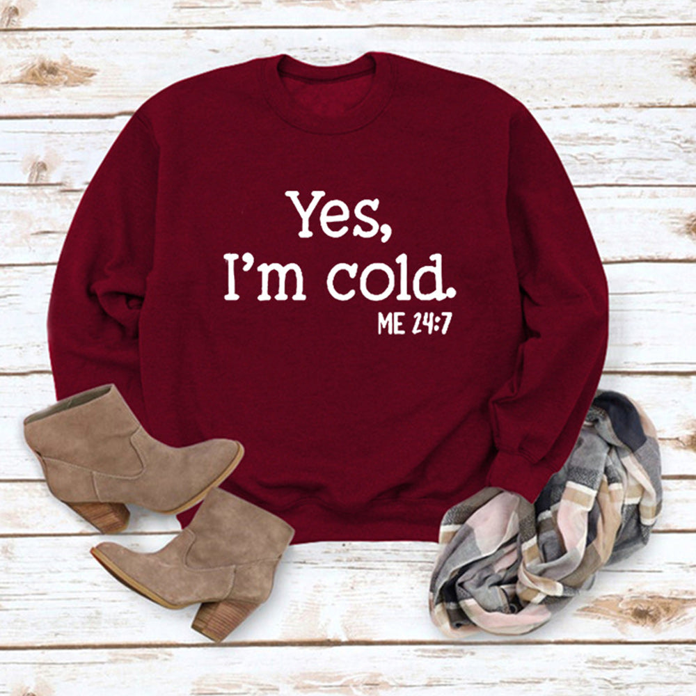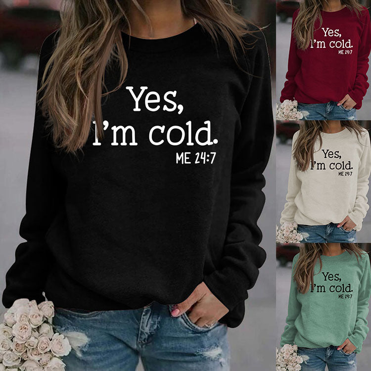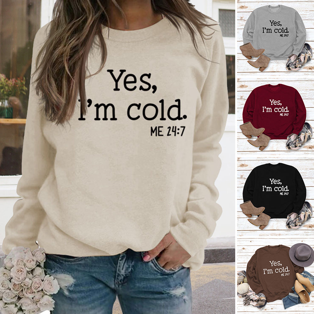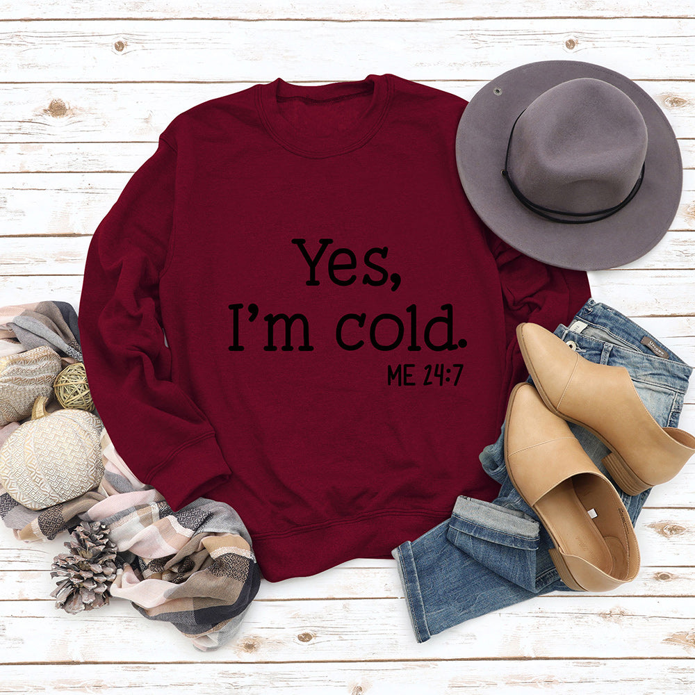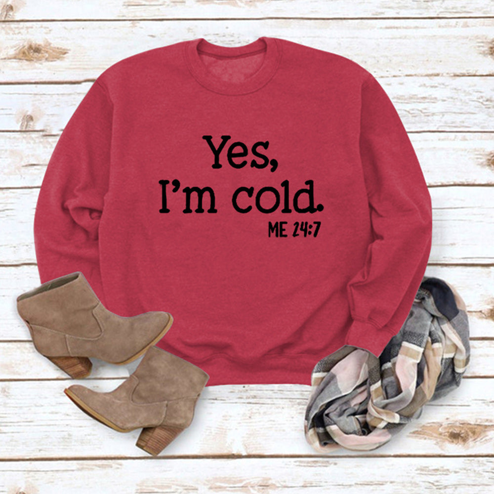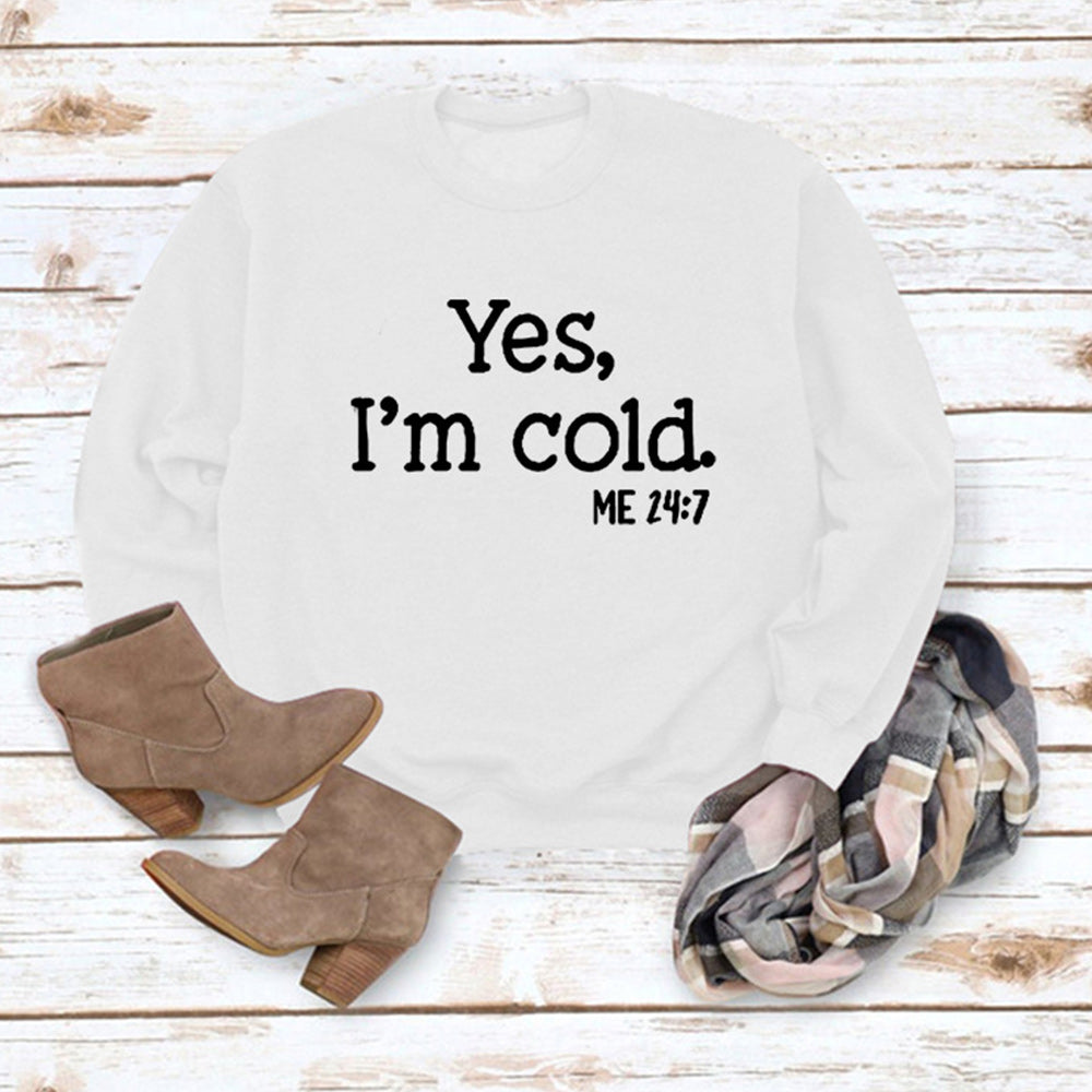 Lässiges, lockeres Damen-Sweatshirt mit Aufdruck „Yes I'm Cold“ für Herbst und Winter