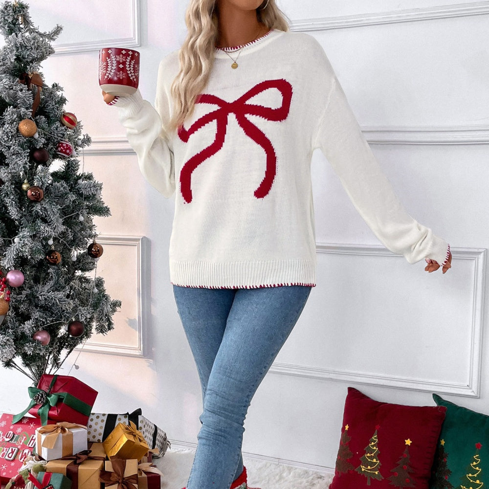 🍂🌼Anwendbare Szenarien: Das zarte Schleifendetail passt zur festlichen Stimmung und dieser Pullover lässt sich problemlos mit verschiedenen Hosen, Jeans oder Röcken kombinieren.