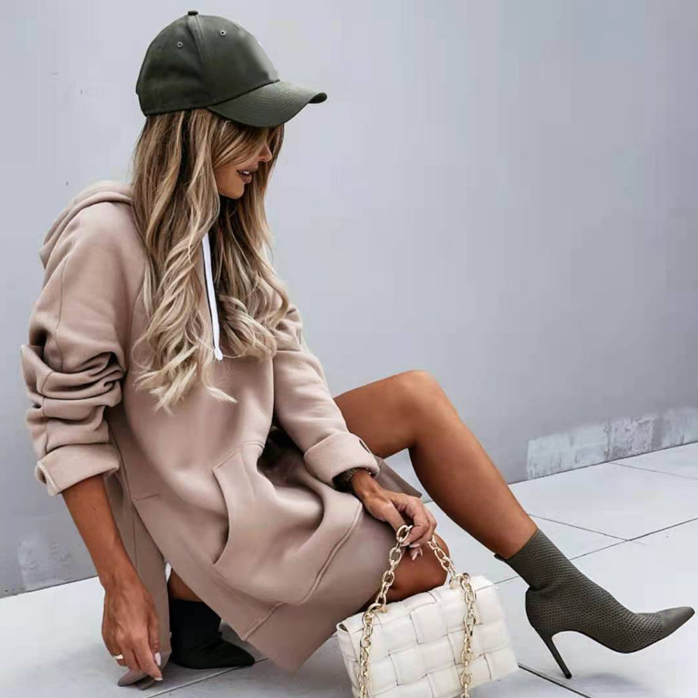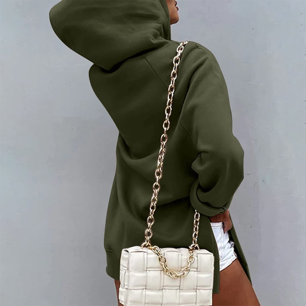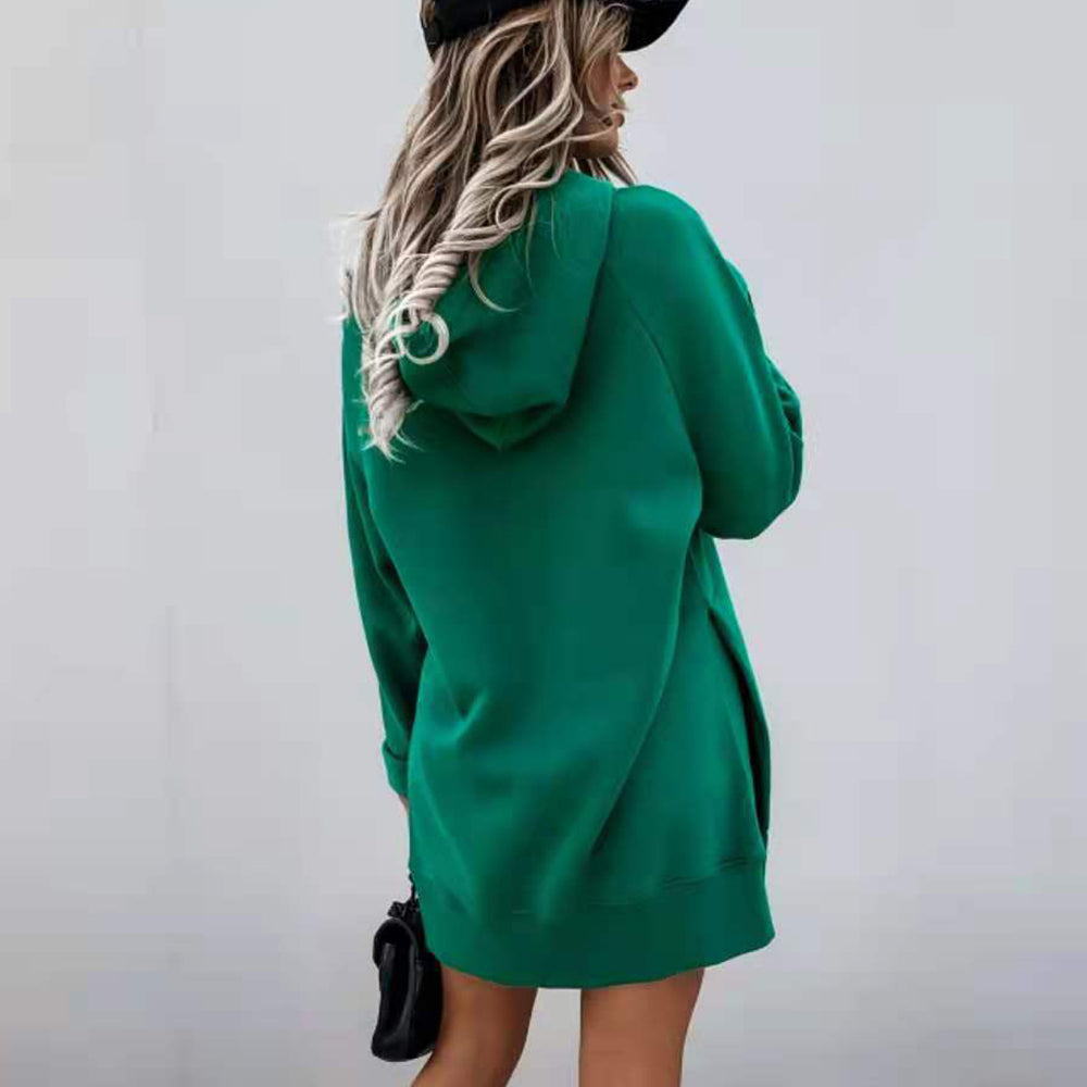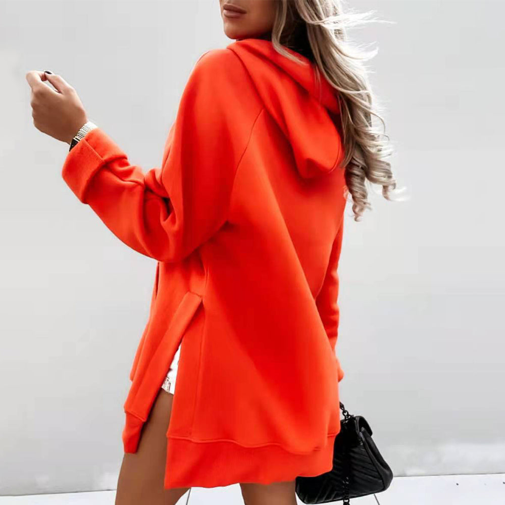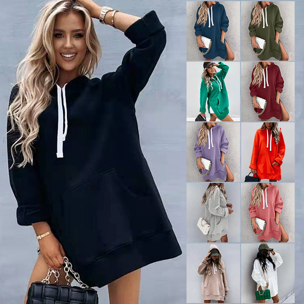 Neues Einfarbiges Mittellanges Damen-Sweatshirt Mit Kapuze