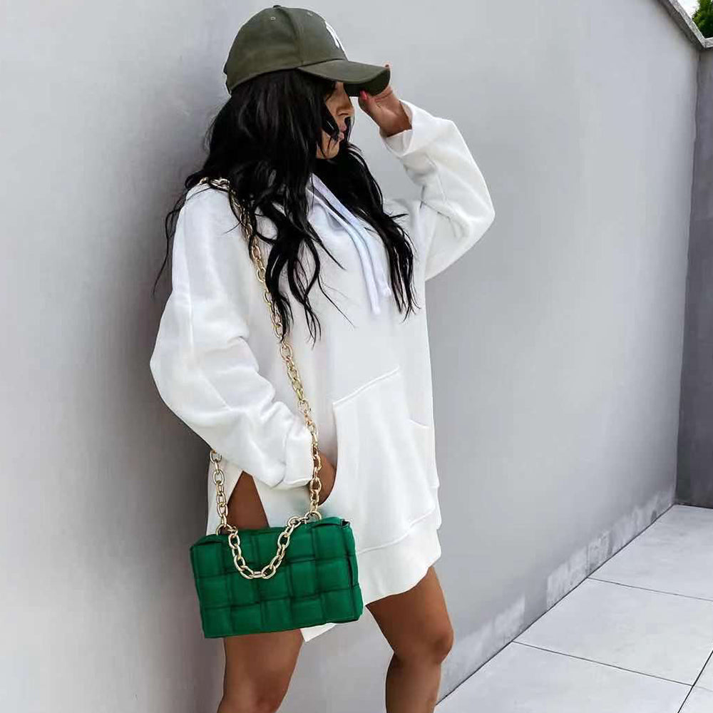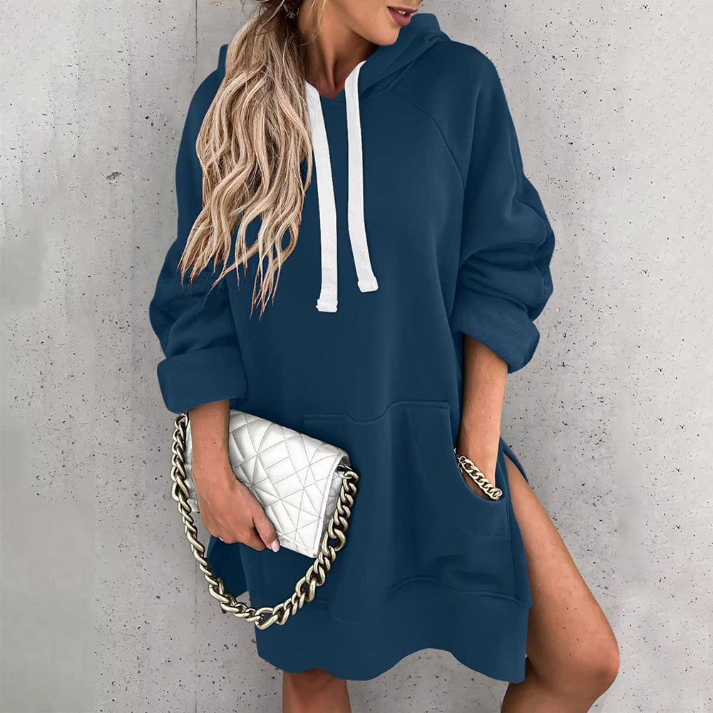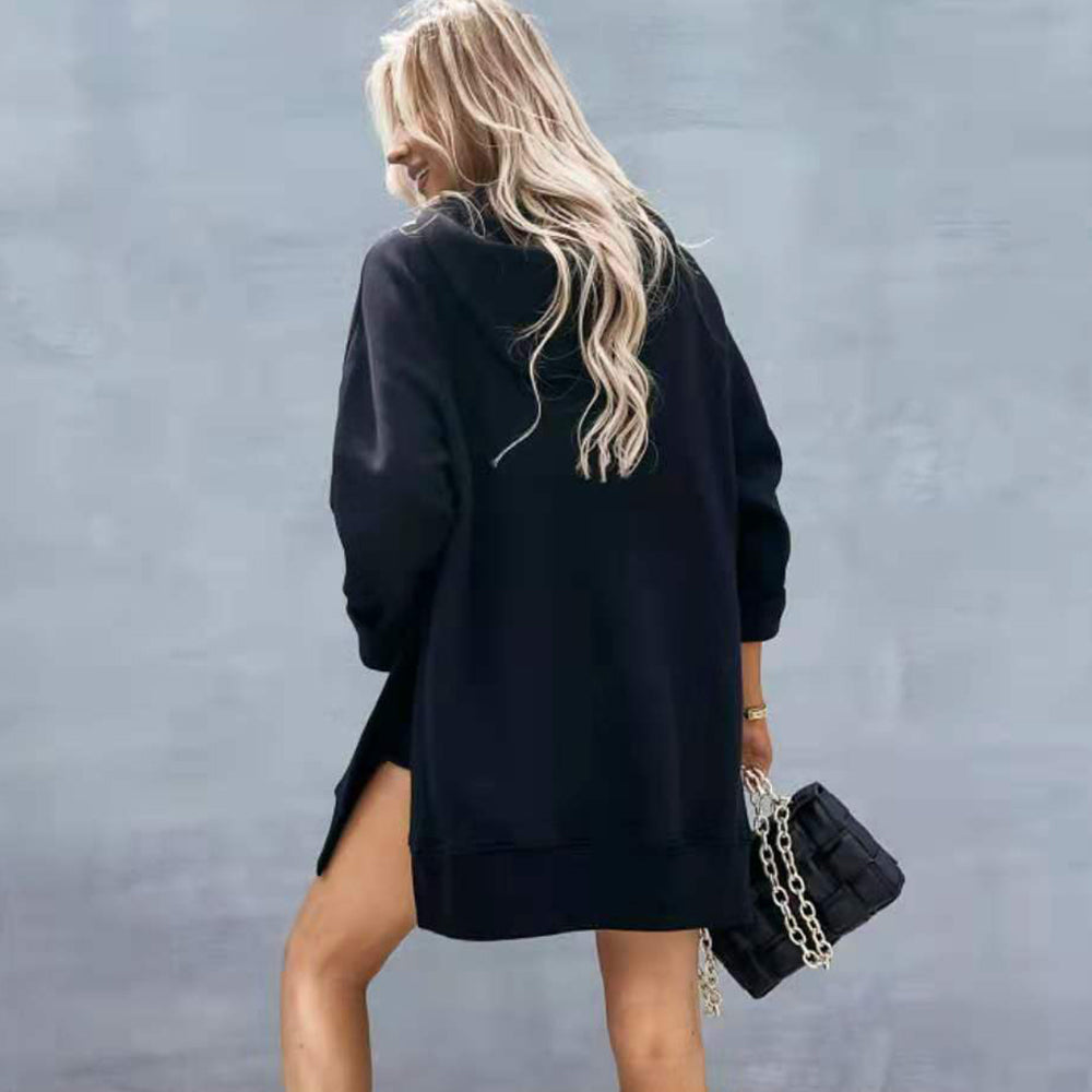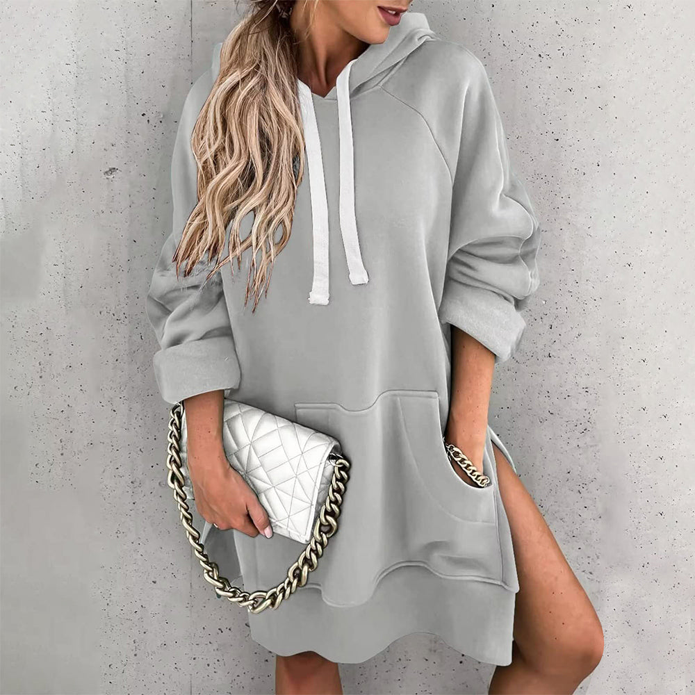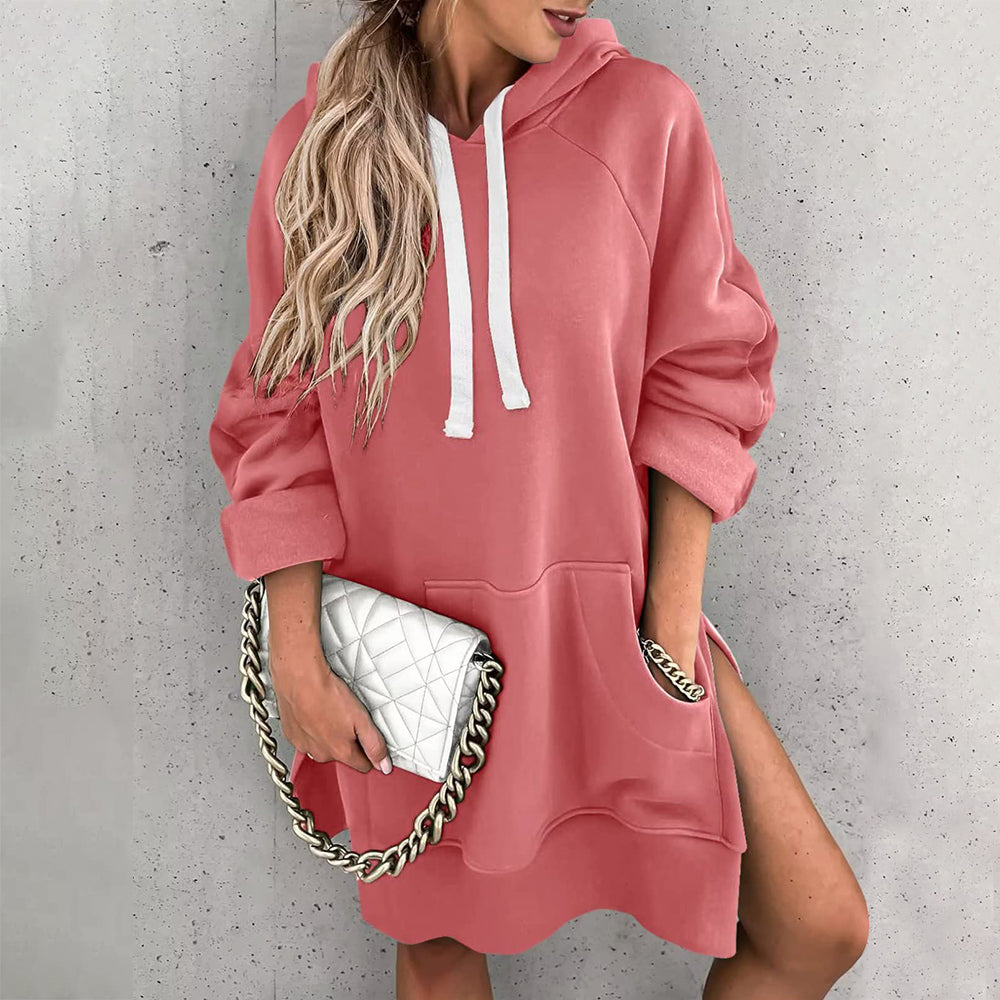 Neues Einfarbiges Mittellanges Damen-Sweatshirt Mit Kapuze