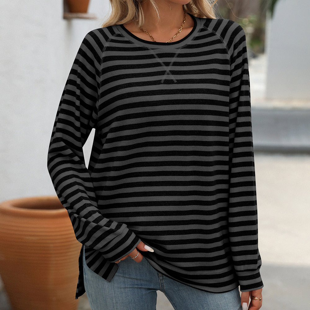 - 1 x Neues Herbst- und Winter-gestreiftes Kontrastfarben-Rundhals-Langarm-Lose-T-Shirt