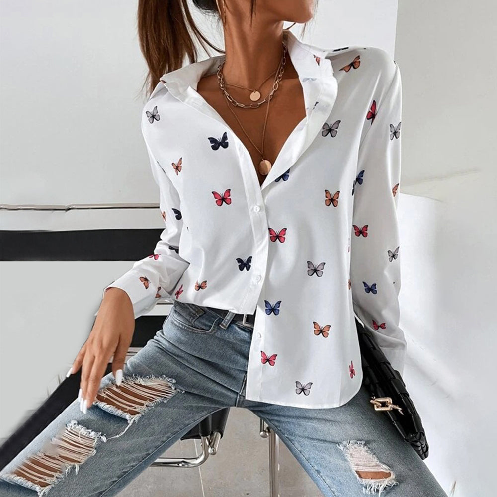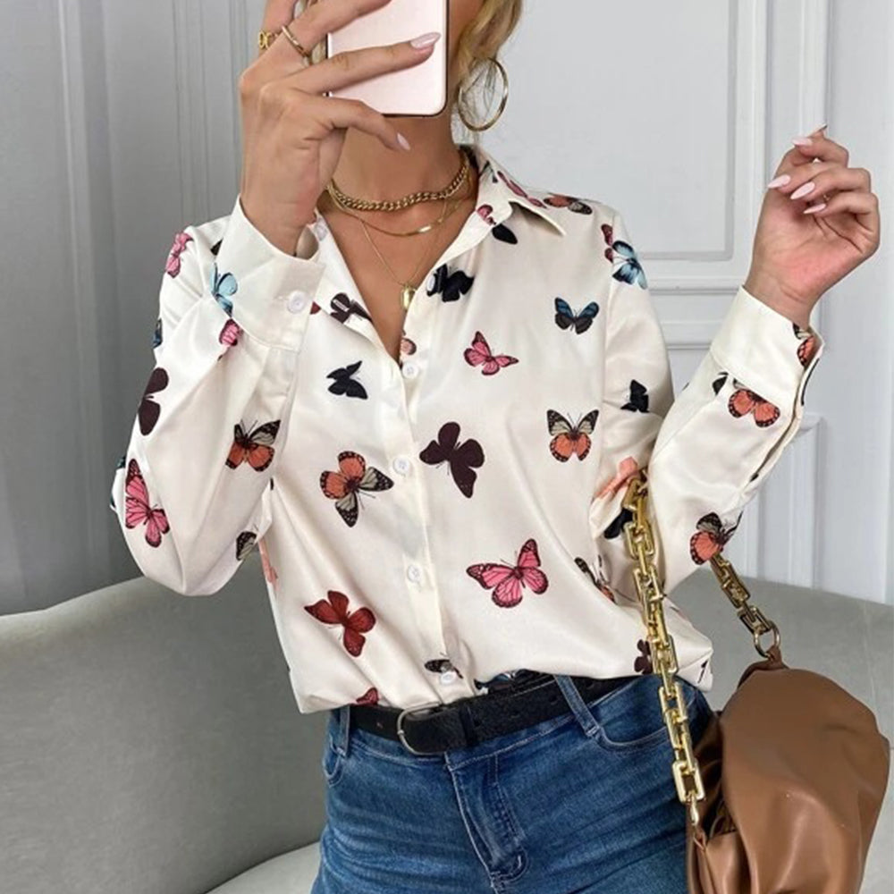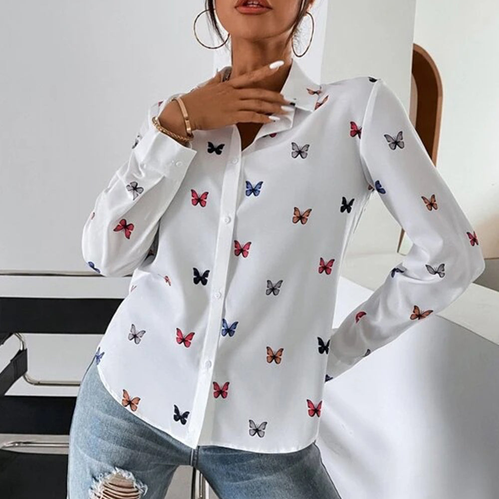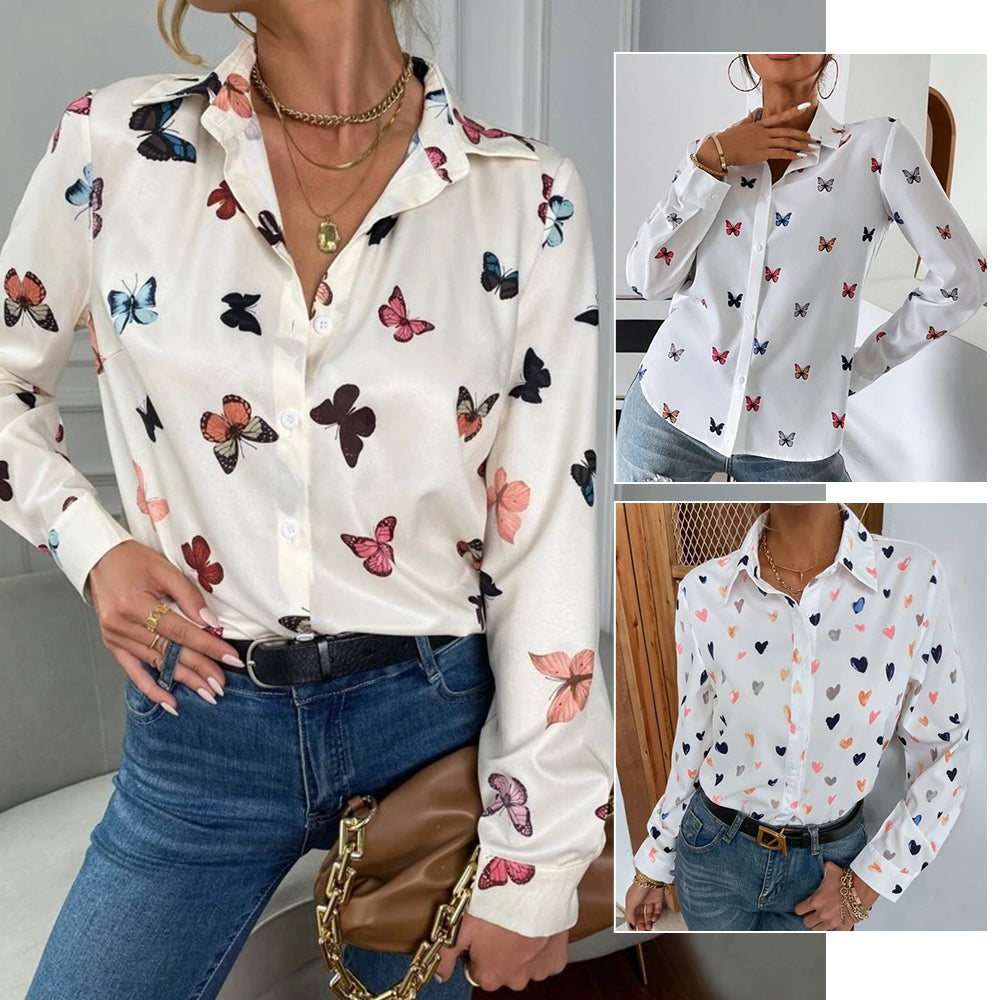 Neues, Modisches, Langärmliges Hemd Mit Schmetterlings-Herz-Aufdruck Und Revers