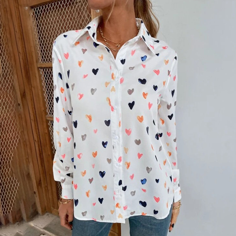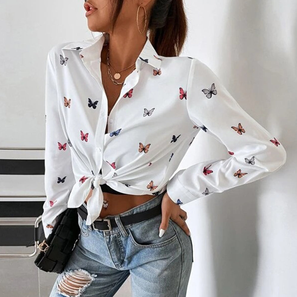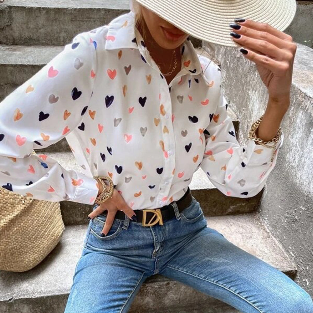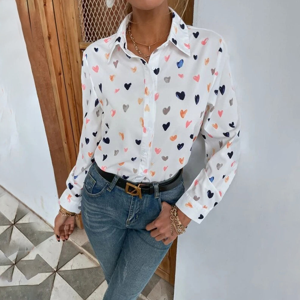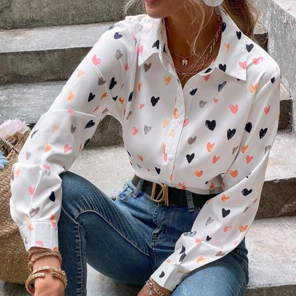 Neues, Modisches, Langärmliges Hemd Mit Schmetterlings-Herz-Aufdruck Und Revers