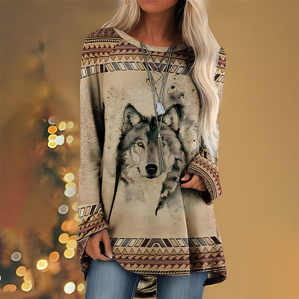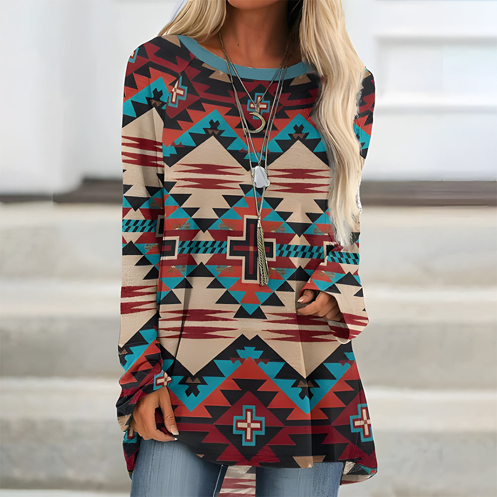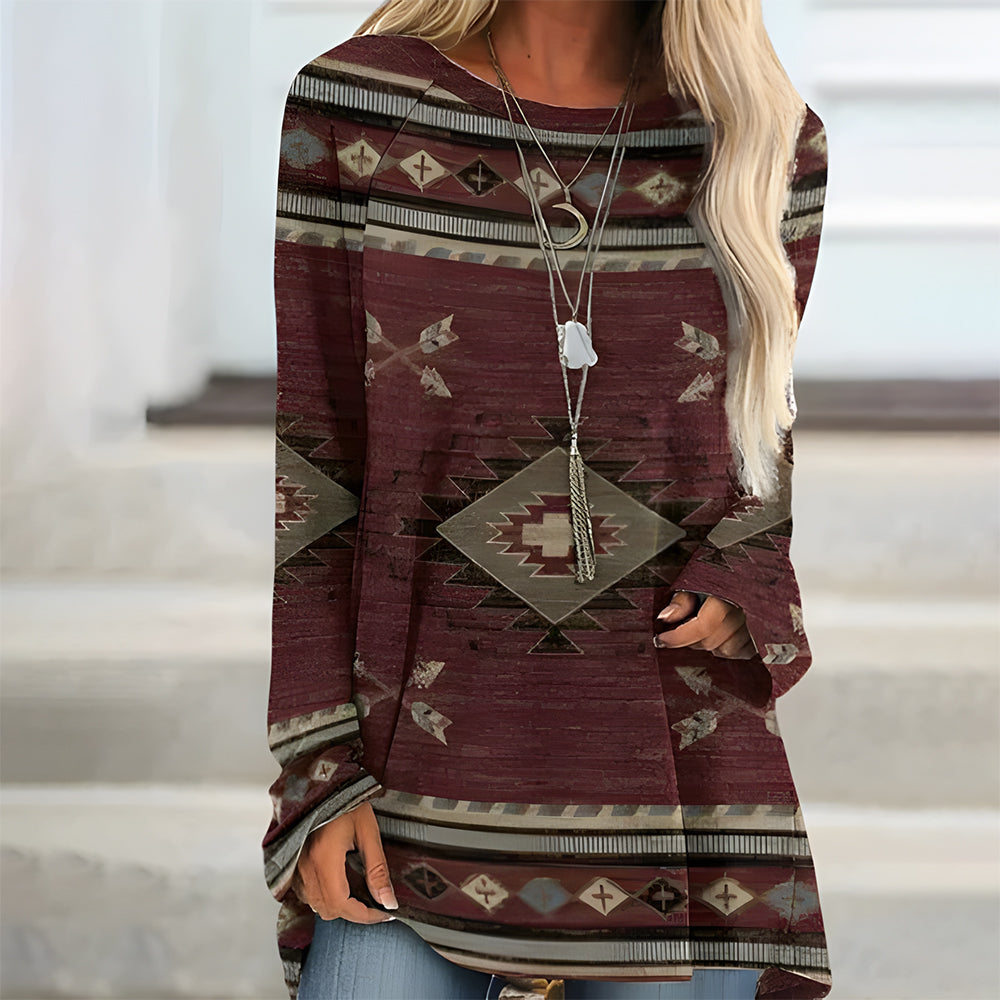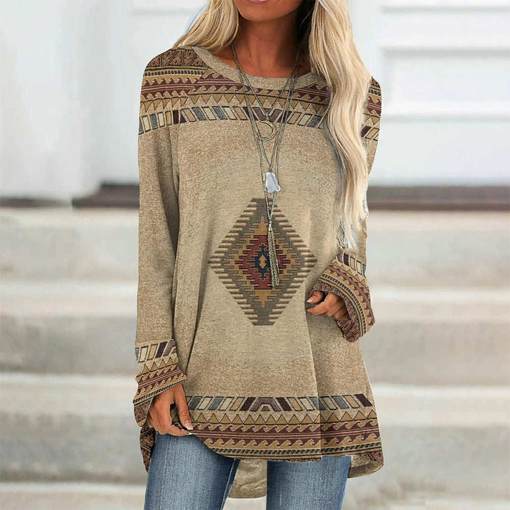 Trendiges Langes T-Shirt Im Retro-Bohemian-Stil, Bedruckt Für Damen