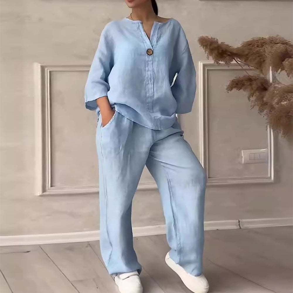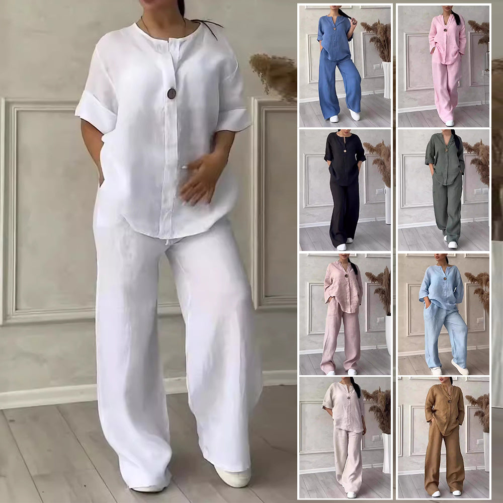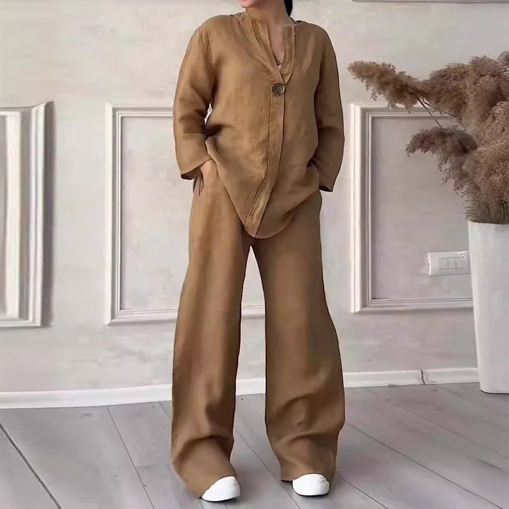 • 1 x Modische Freizeitanzüge für Damen aus Einfarbiger Baumwolle und Leinen