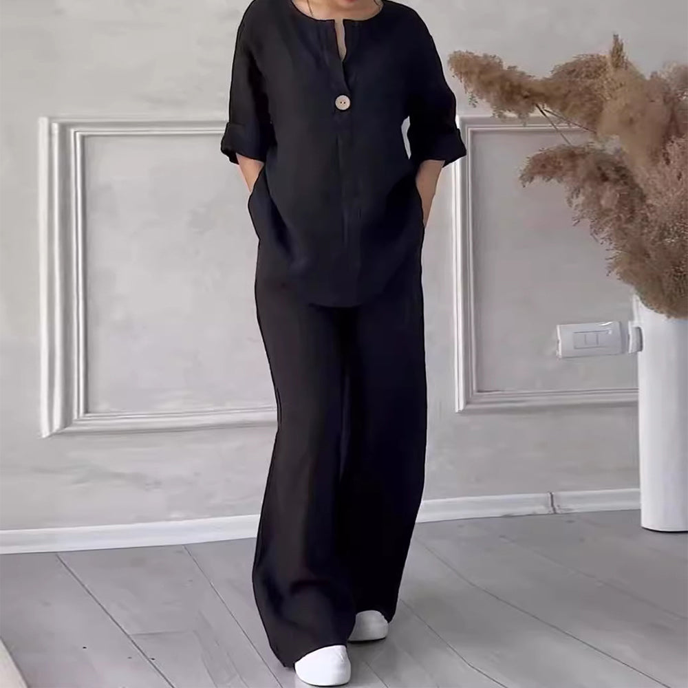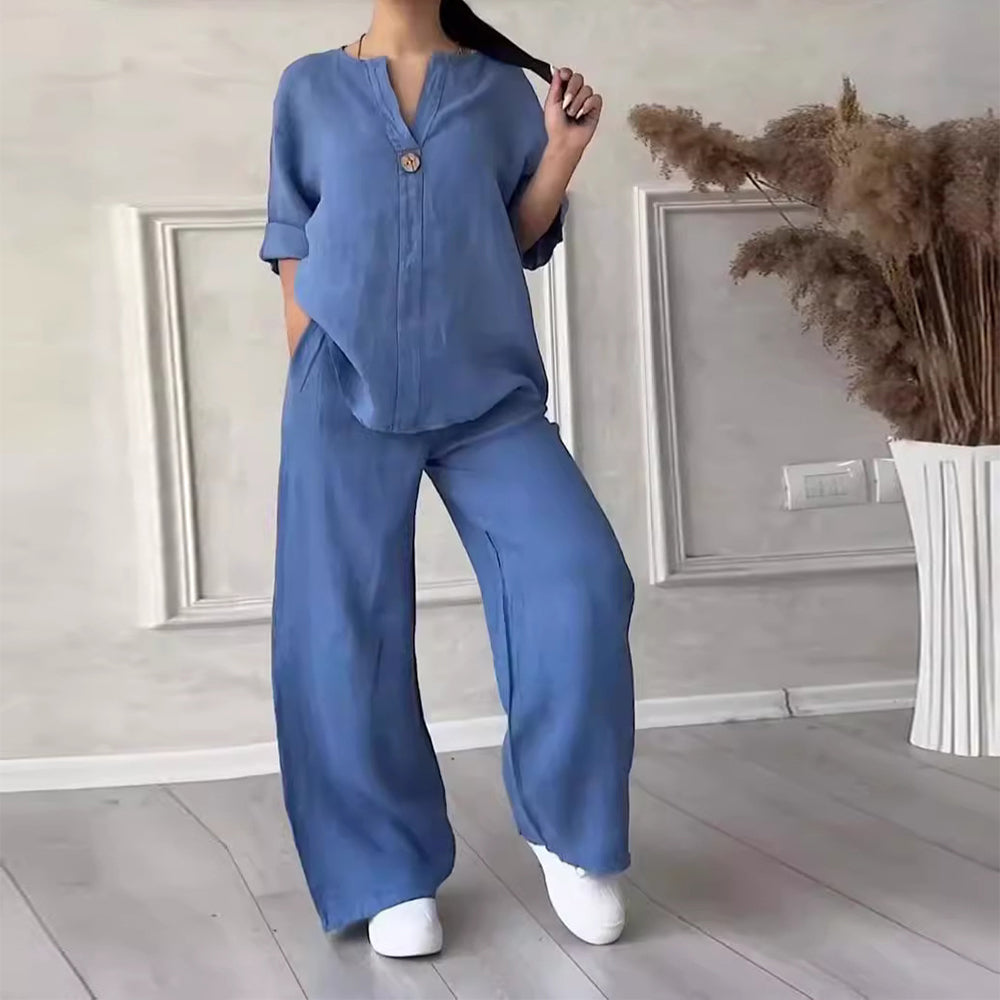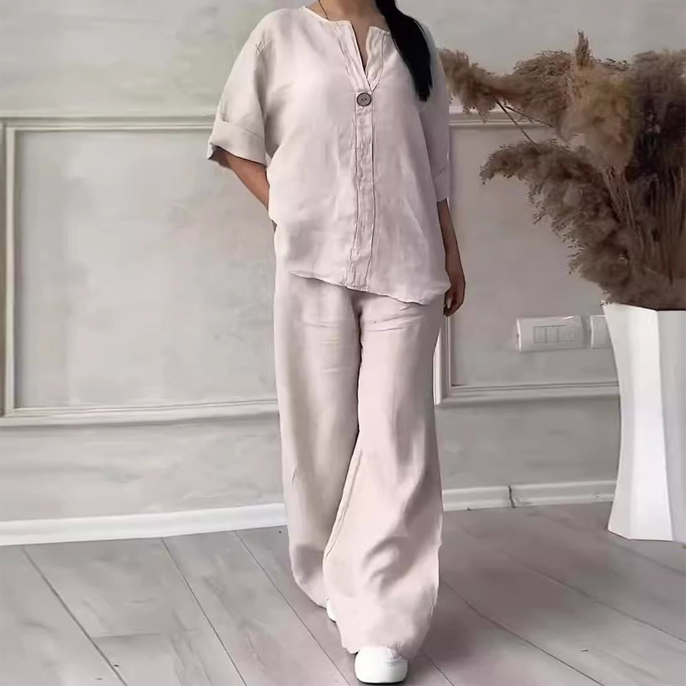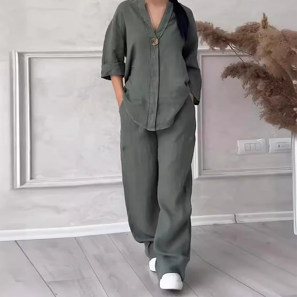 • 1 x Modische Freizeitanzüge für Damen aus Einfarbiger Baumwolle und Leinen