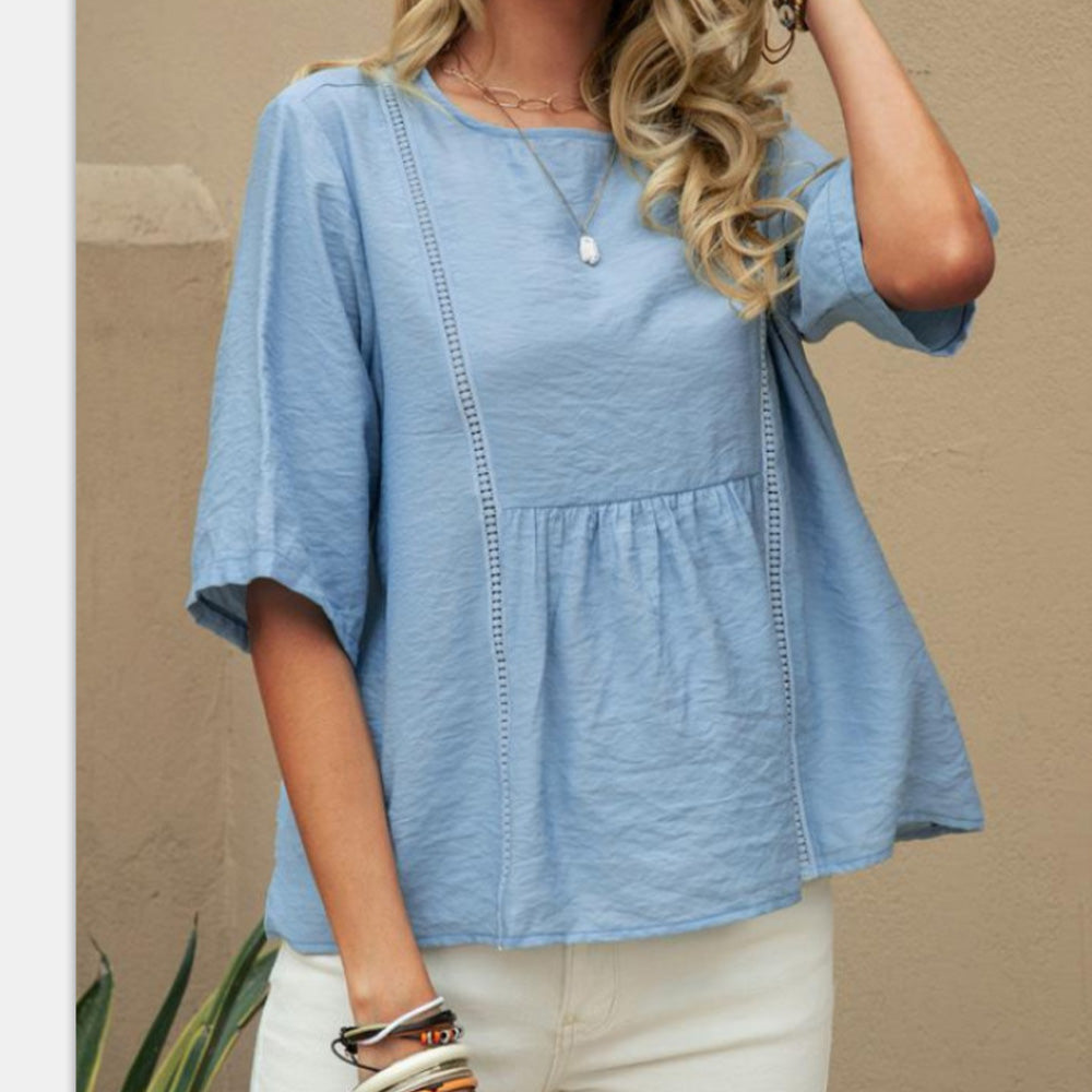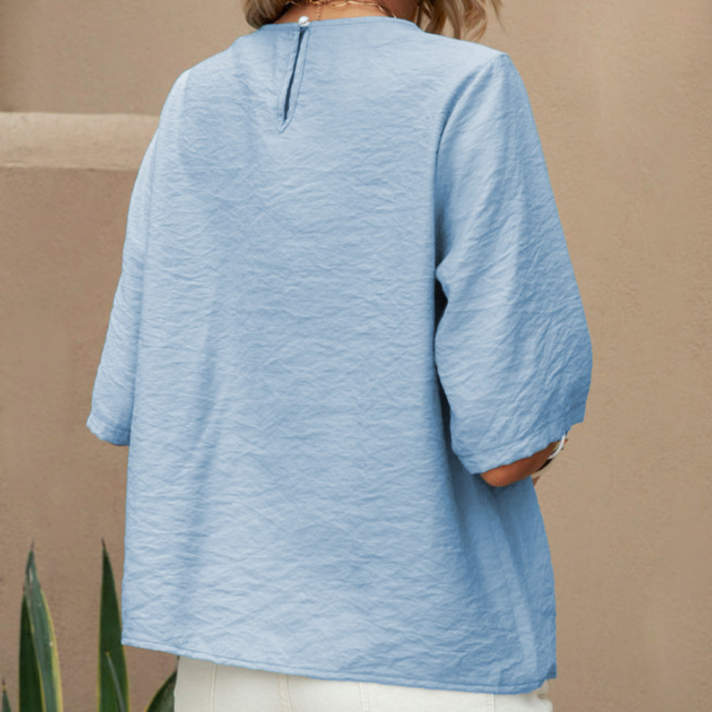 🌈Lockerer Schnitt: Die weiche, fließende Passform sorgt für einen lässigen Look, während die leicht ausgestellten Ärmel und feine Nähte dem Design eine moderne, feminine Note verleihen.
