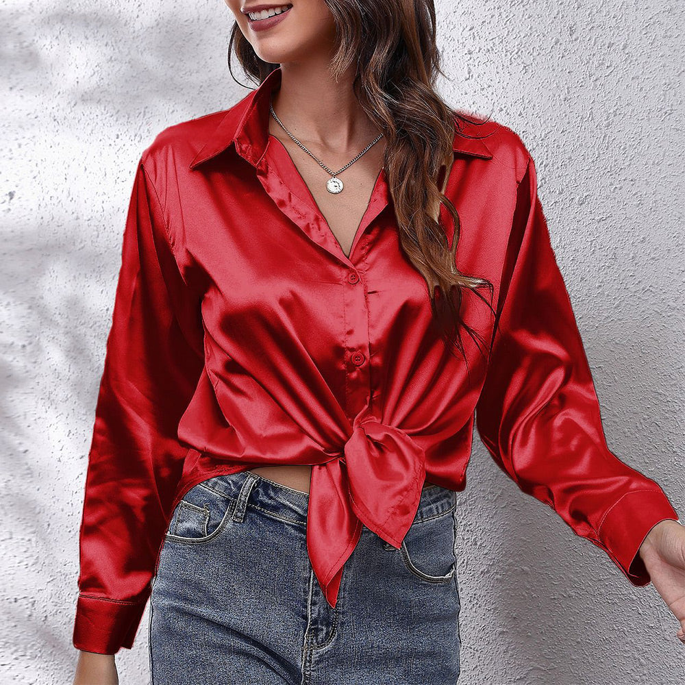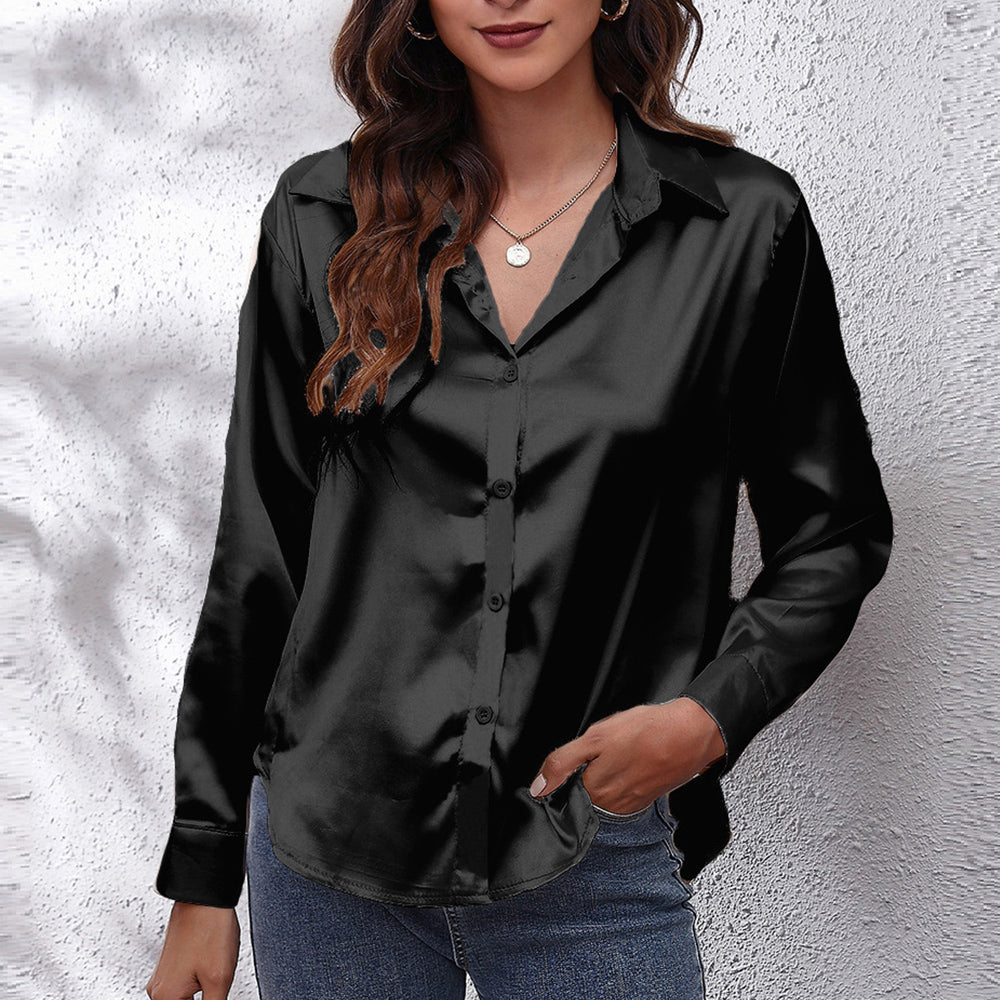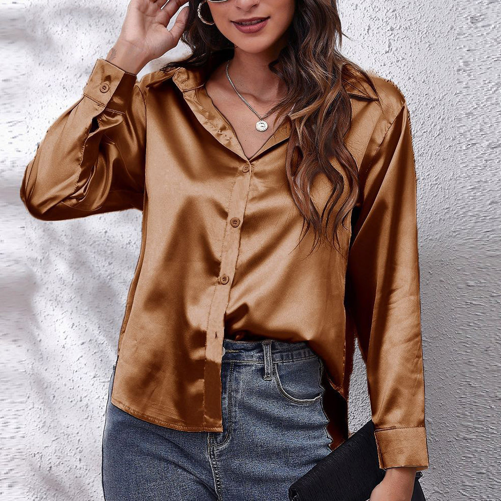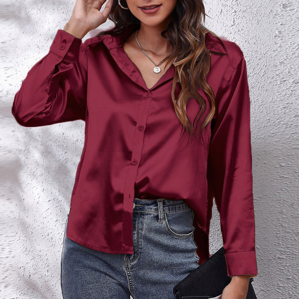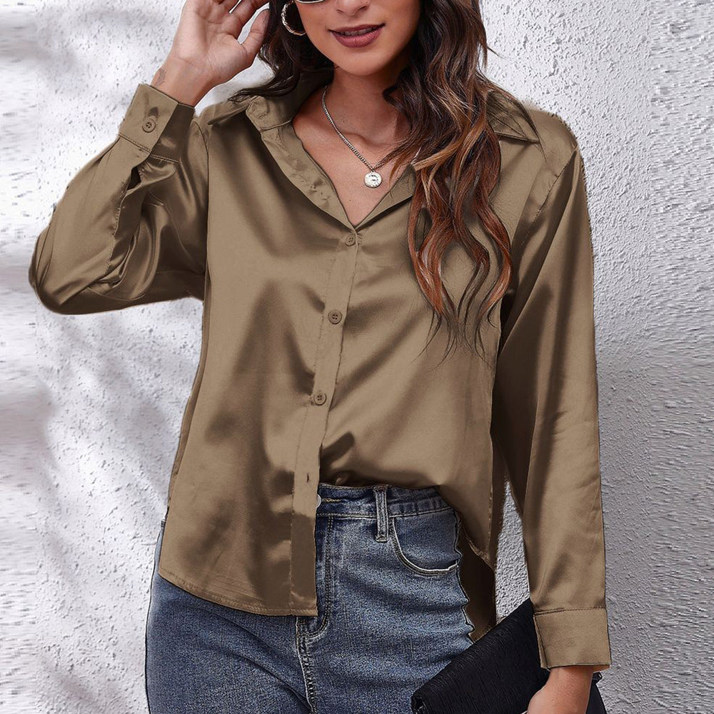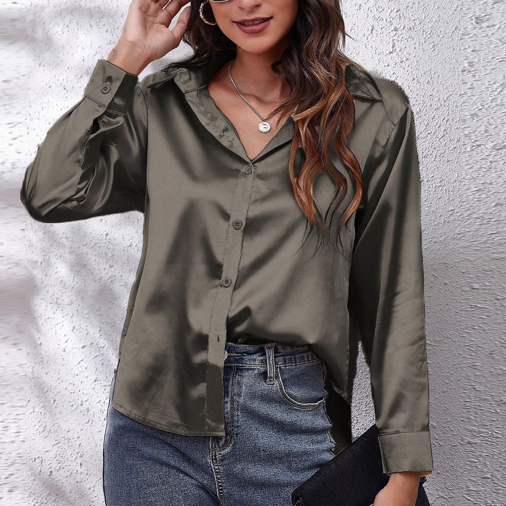 • 1 x Beliebtes einfarbiges Langarmshirt aus Satinimitatseide für Damen