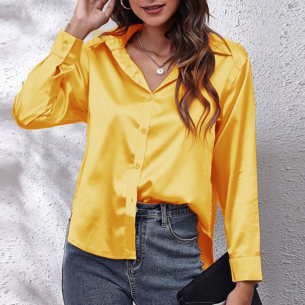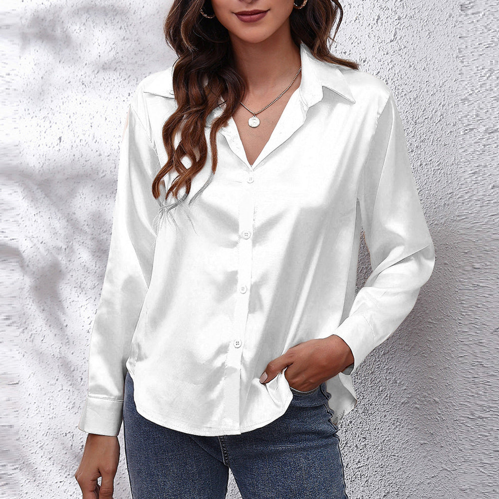 Beliebtes einfarbiges Langarmshirt aus Satinimitatseide für Damen