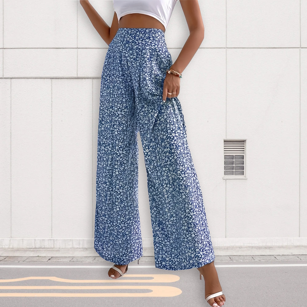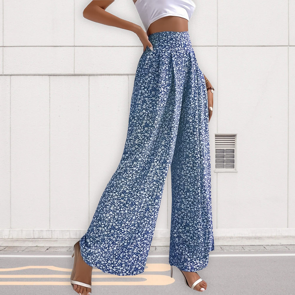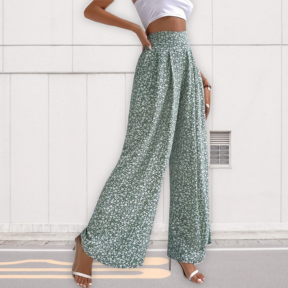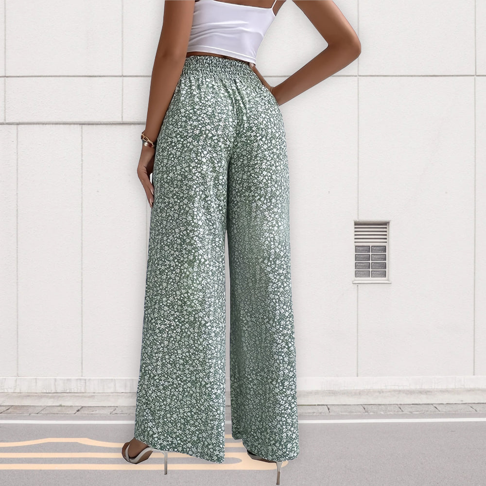 - 1 x Geblümte, lockere Freizeithose mit hoher Taille