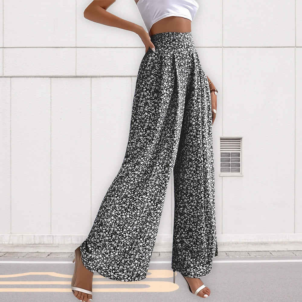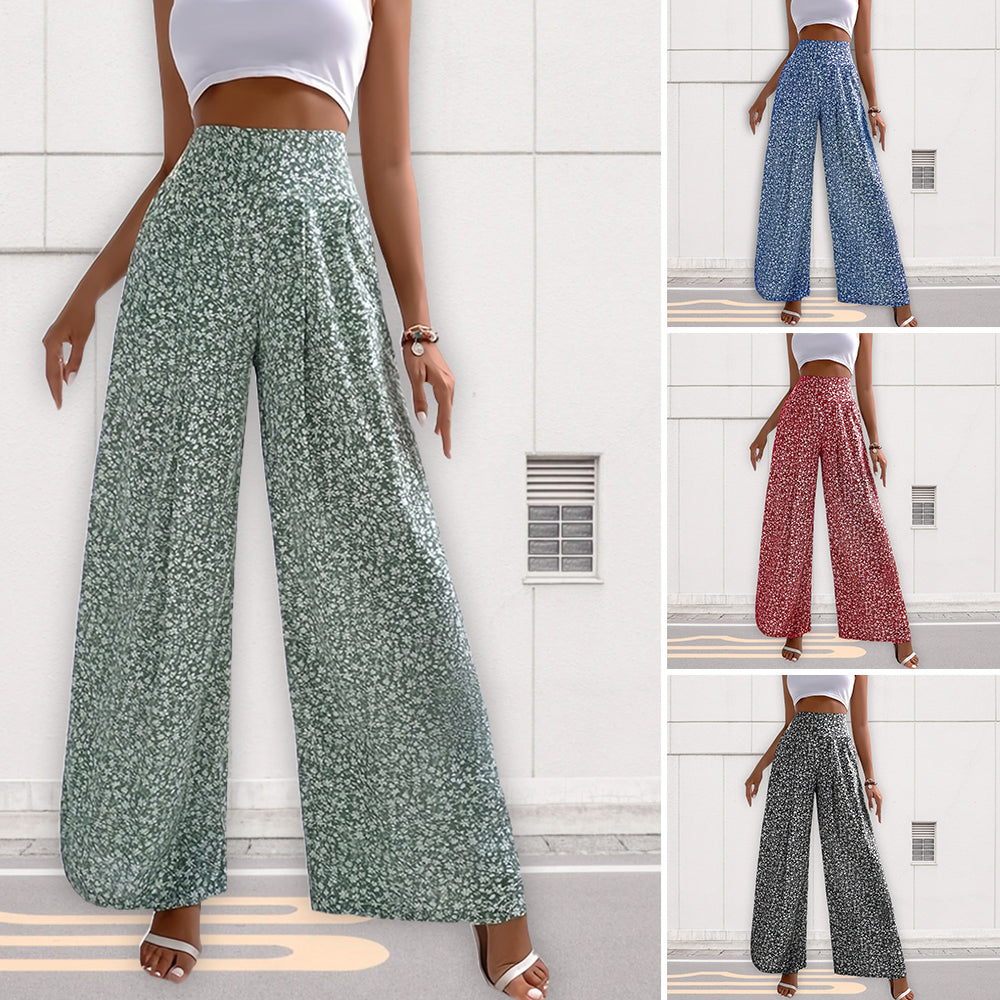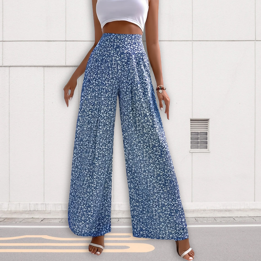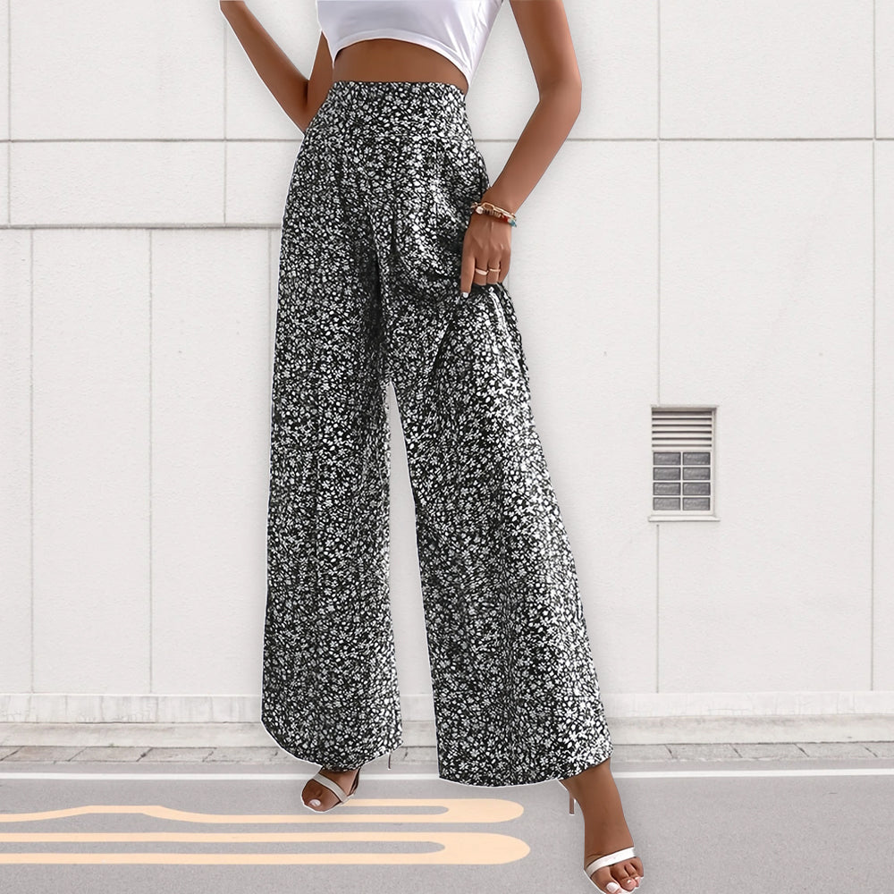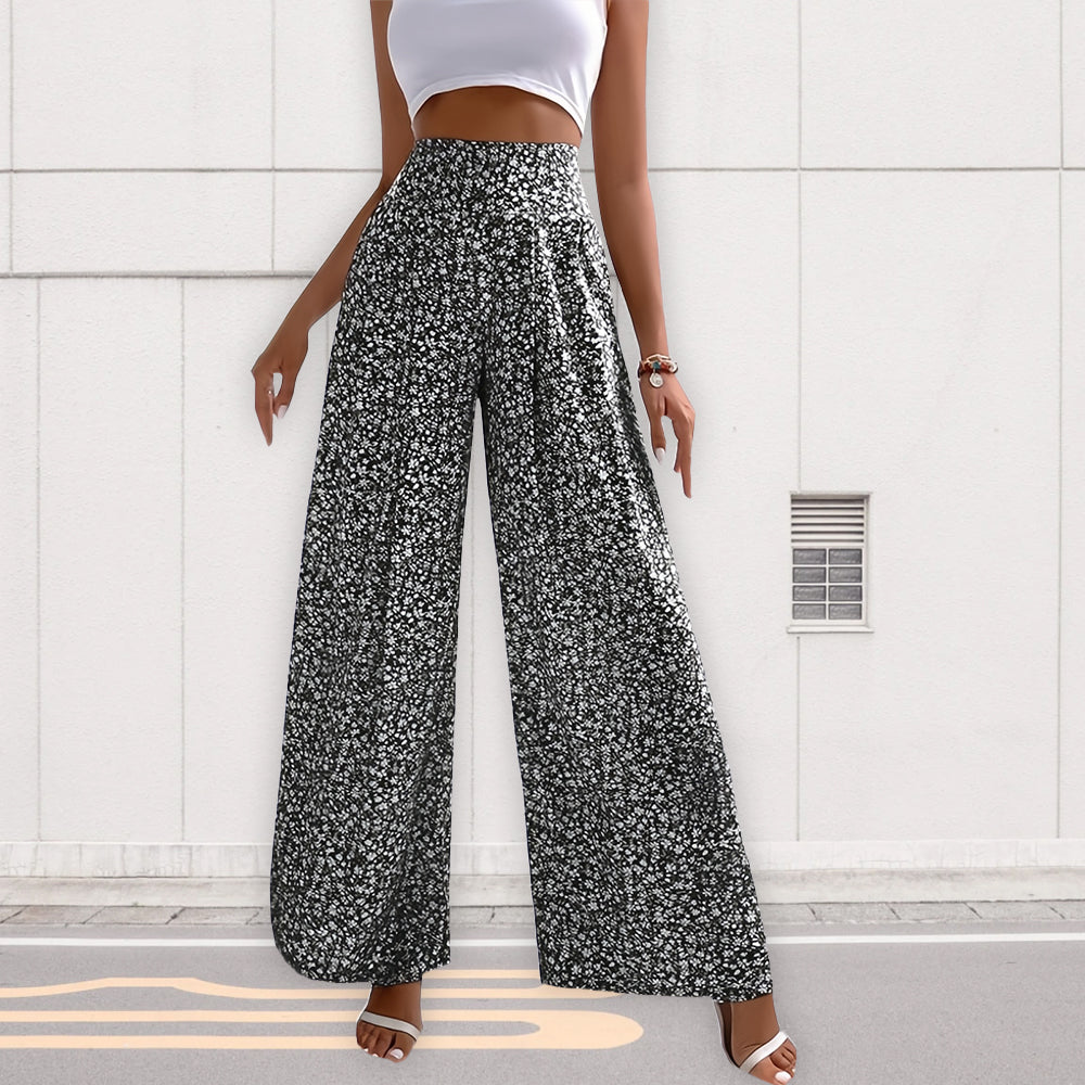 - 1 x Geblümte, lockere Freizeithose mit hoher Taille