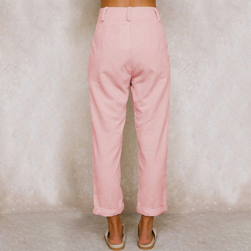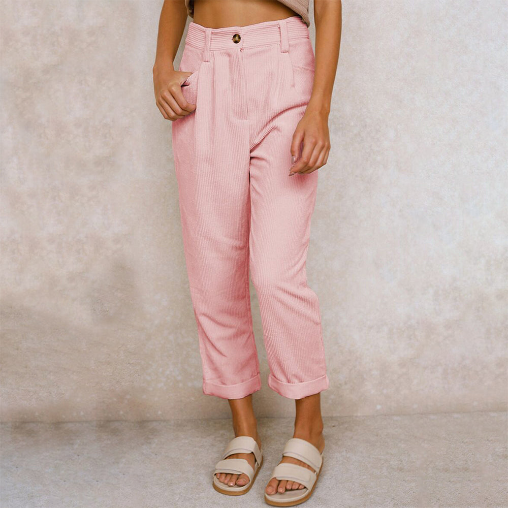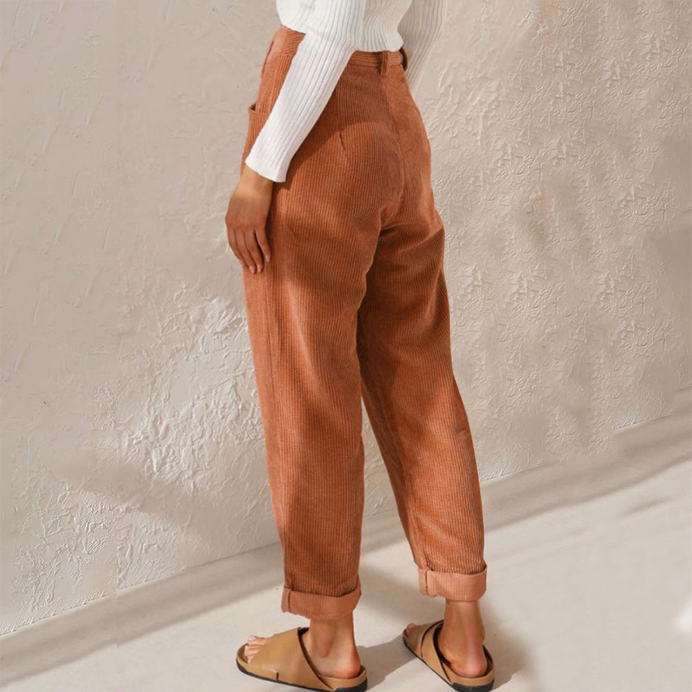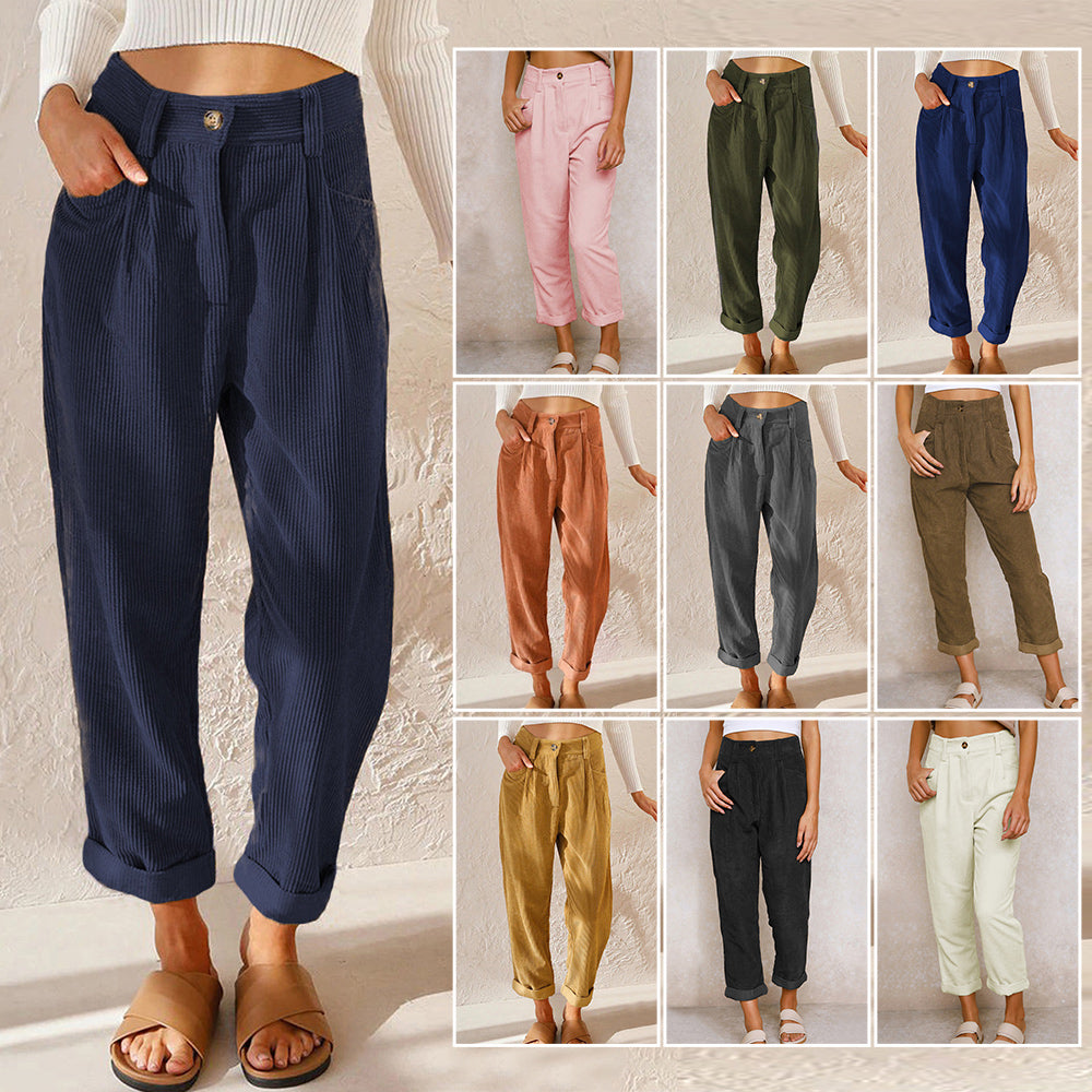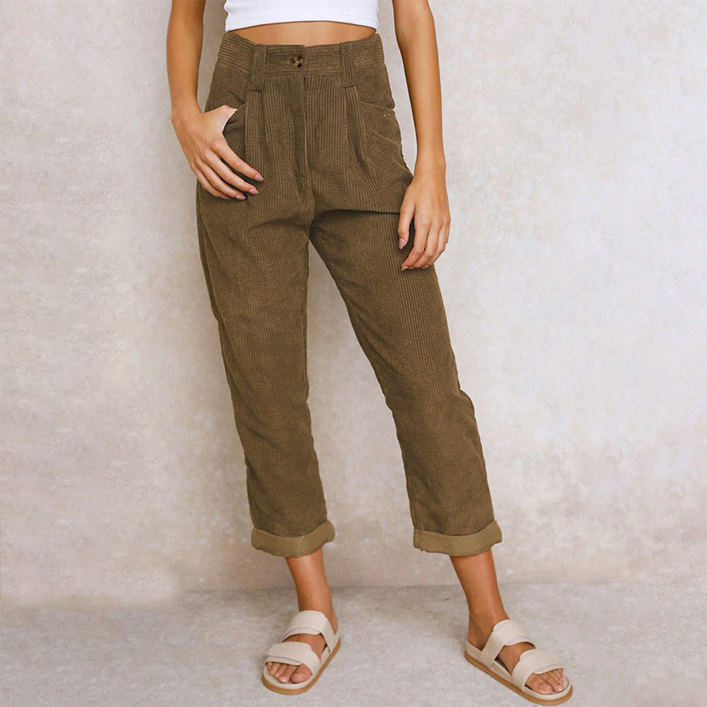 • 1 x Herbst Neue Frauen Hohe Taille Casual Hosen Einfarbig Cord Lose Gerade Hosen
