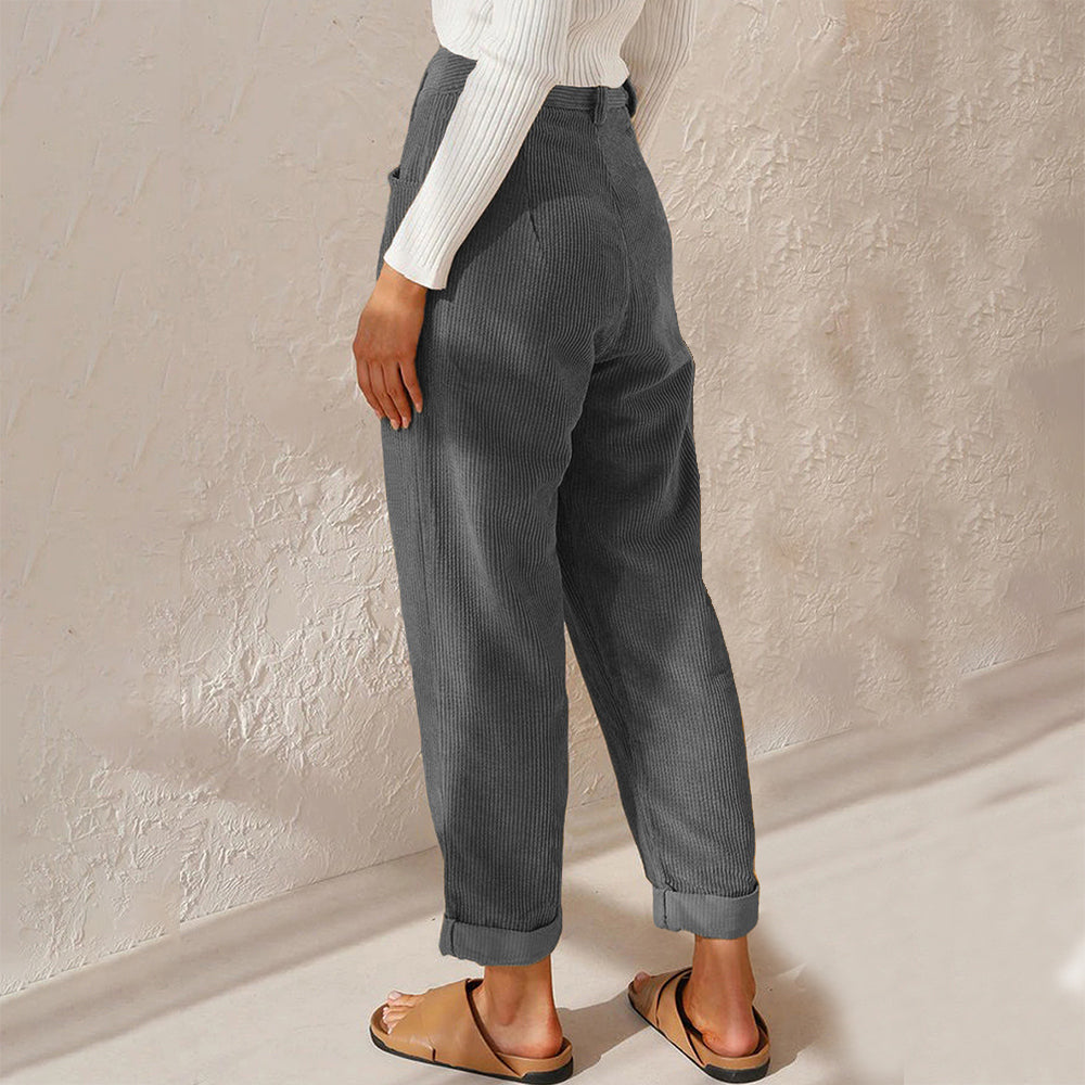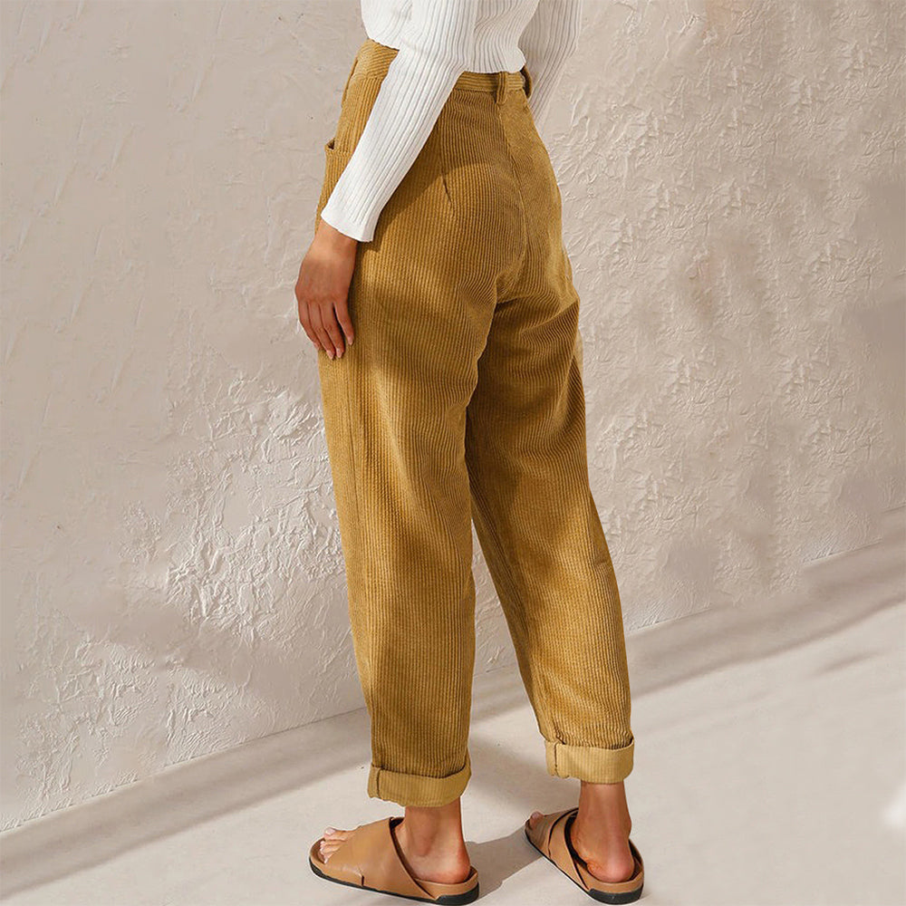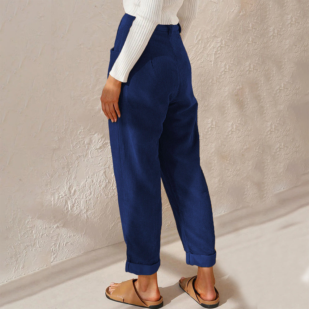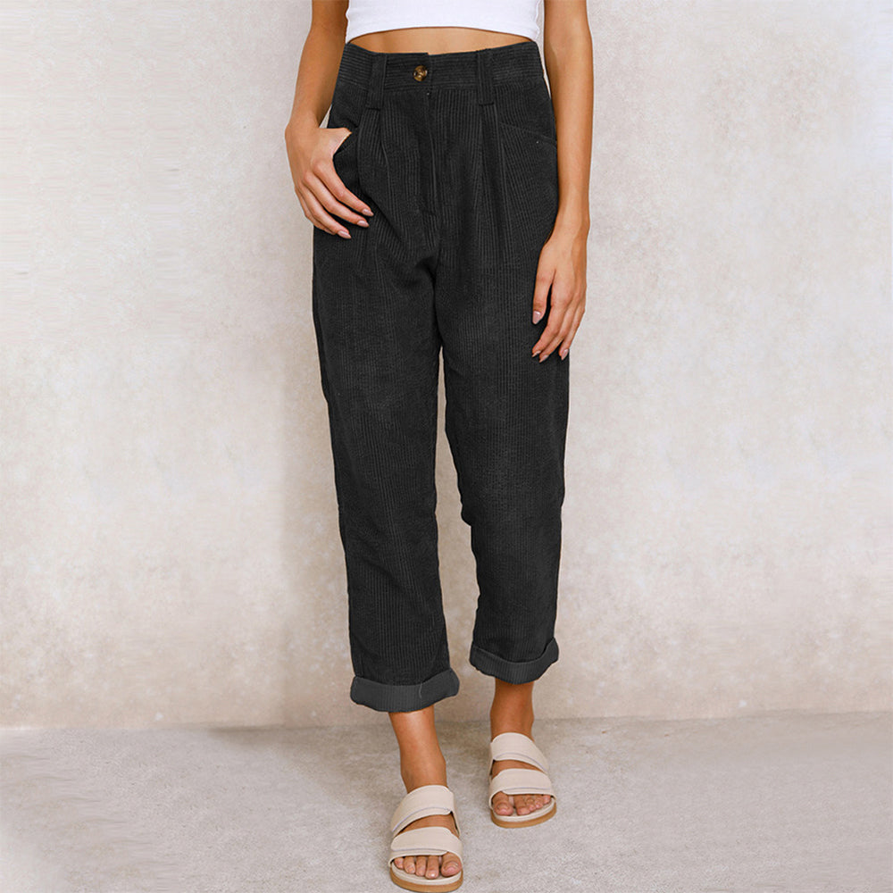 • 1 x Herbst Neue Frauen Hohe Taille Casual Hosen Einfarbig Cord Lose Gerade Hosen