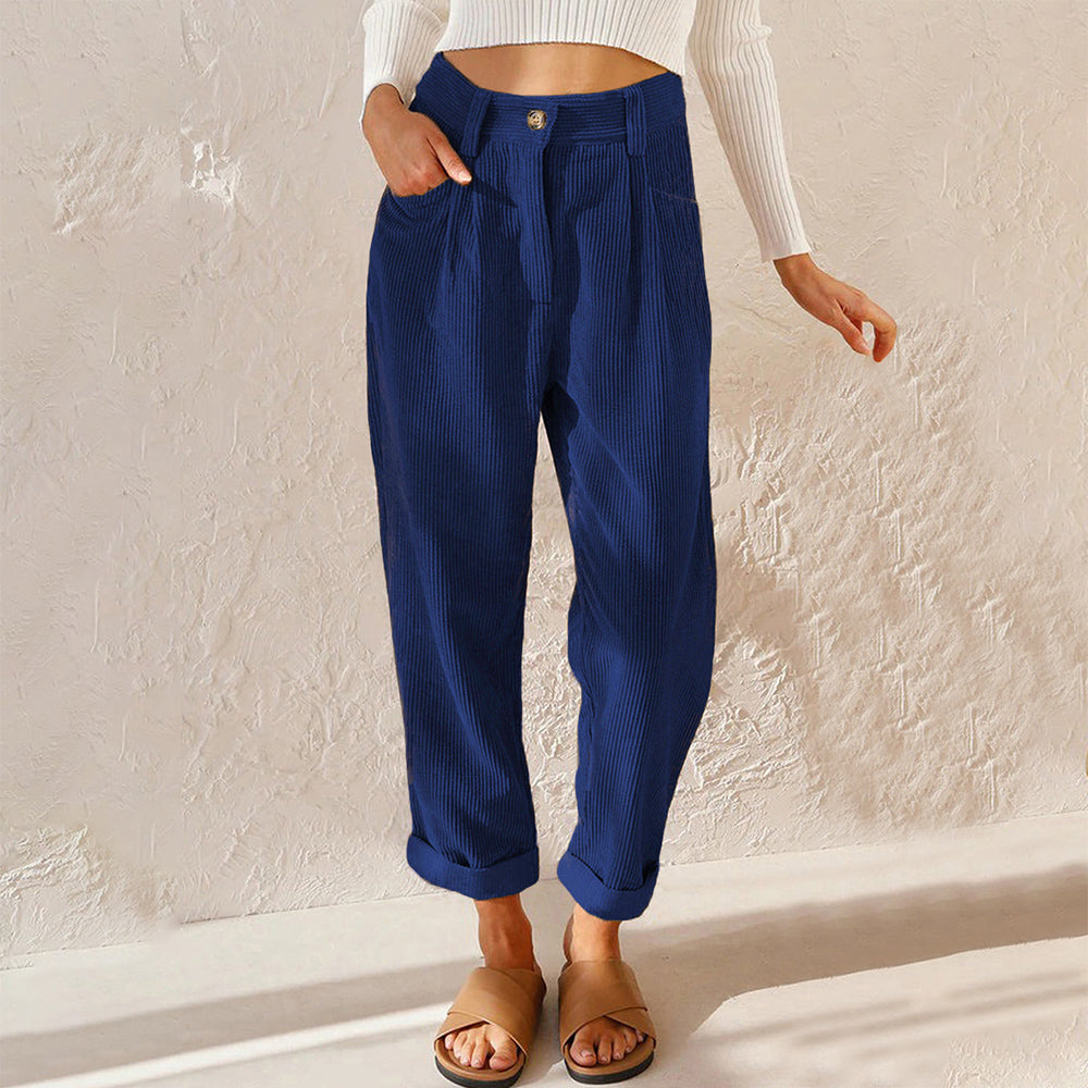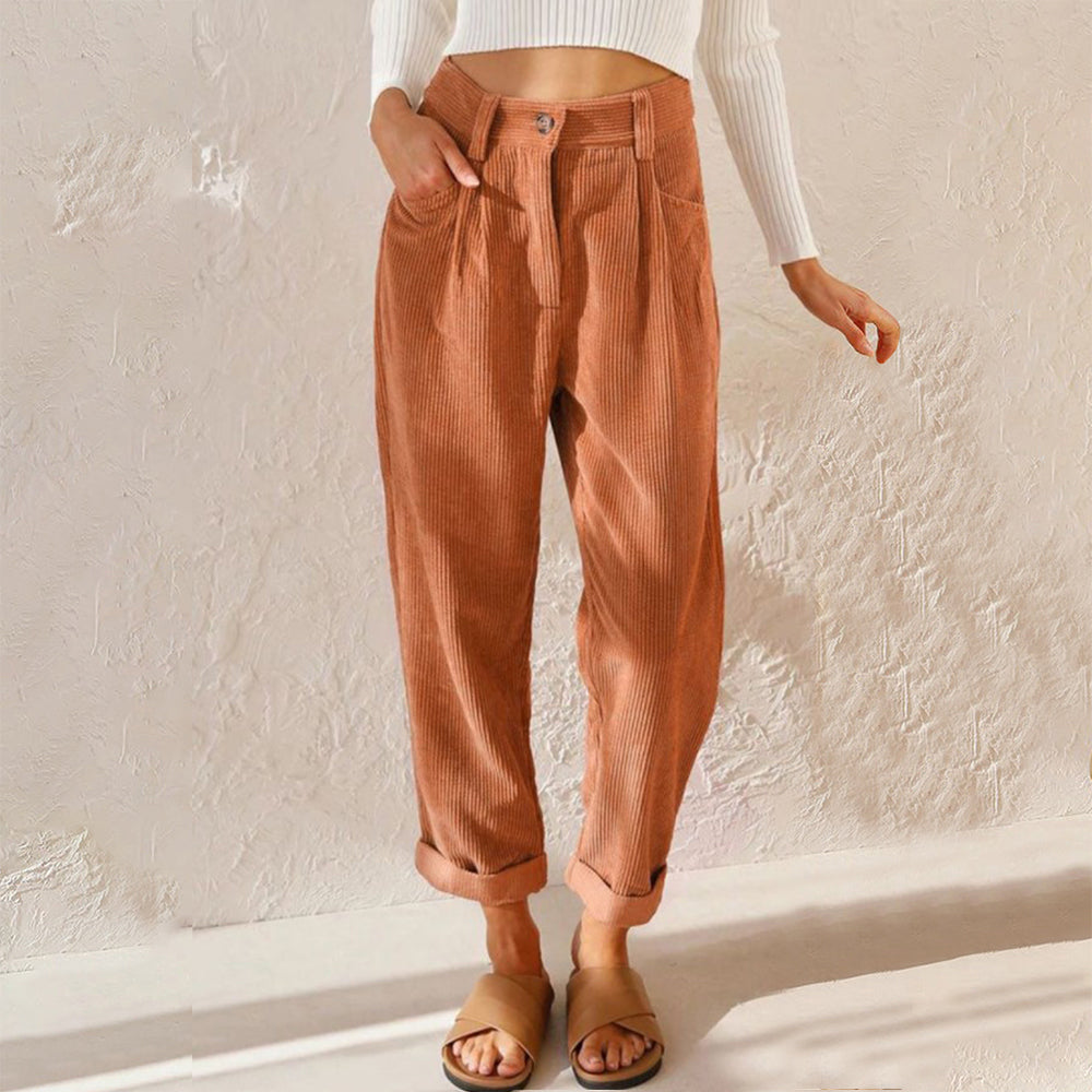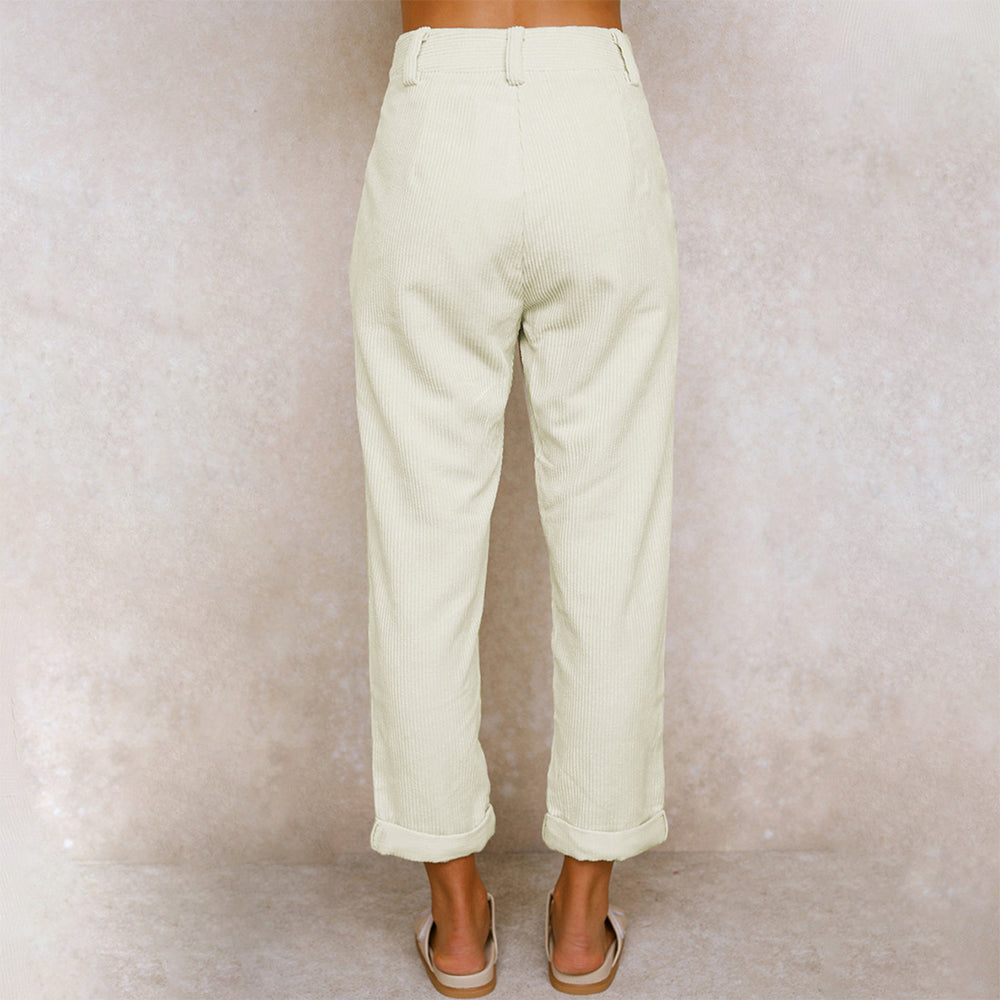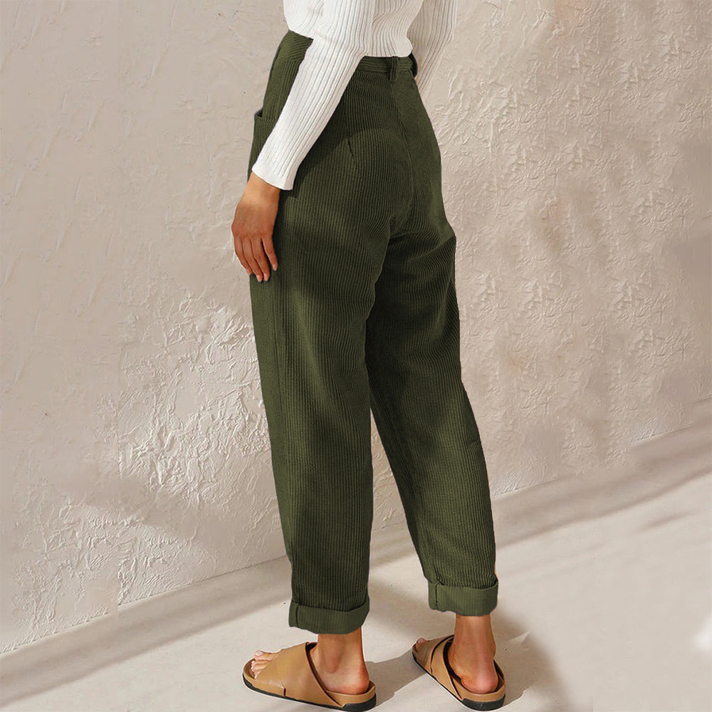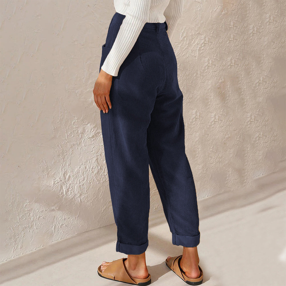 • 1 x Herbst Neue Frauen Hohe Taille Casual Hosen Einfarbig Cord Lose Gerade Hosen