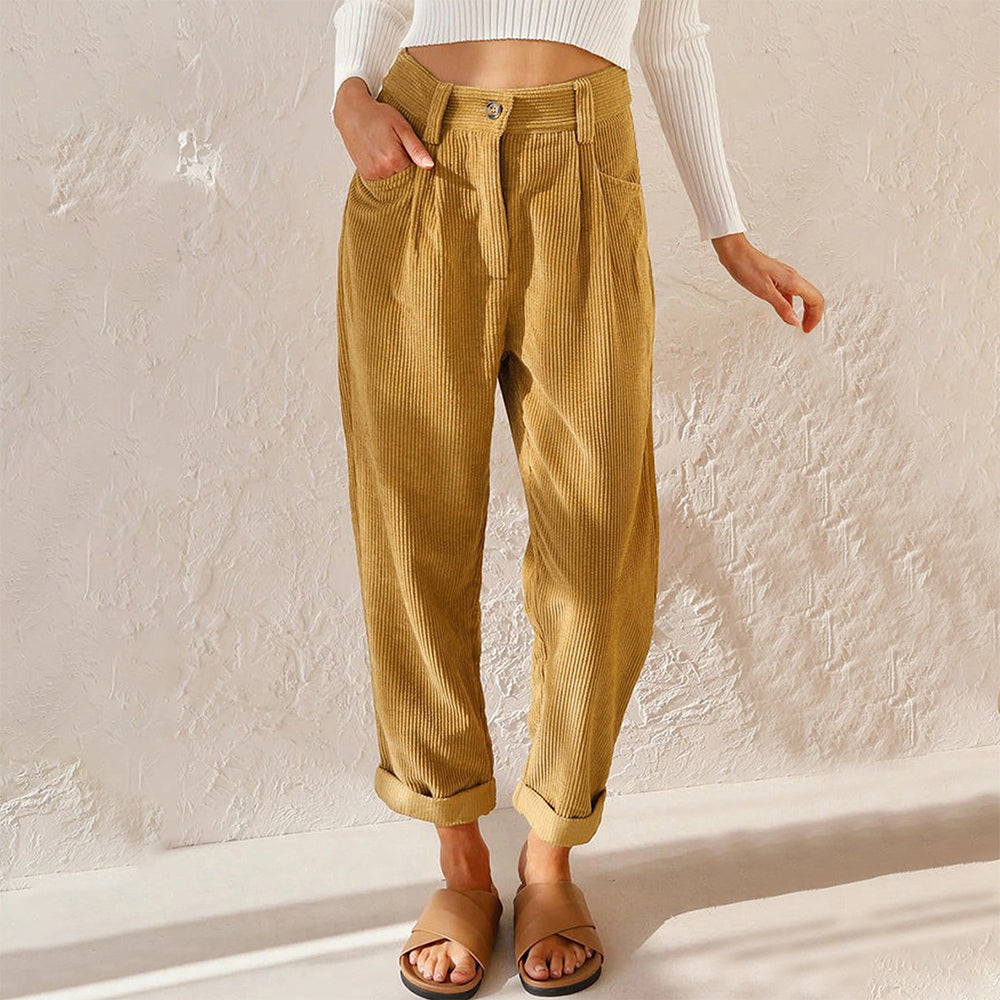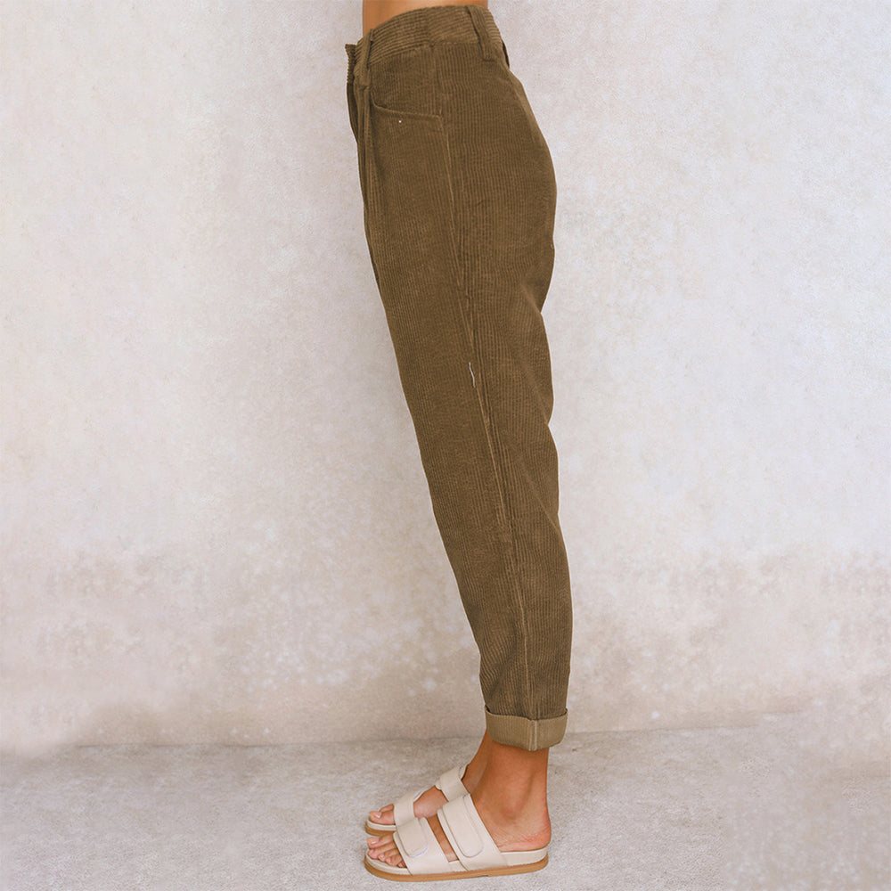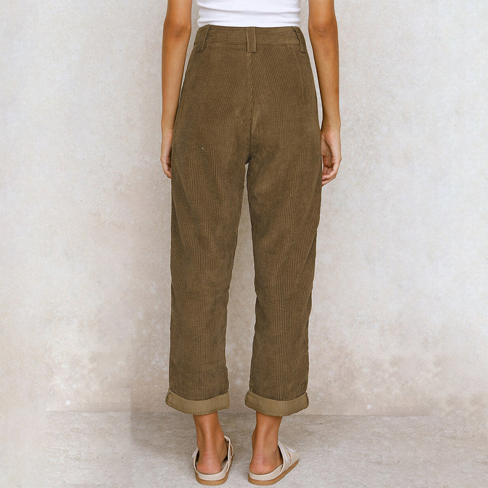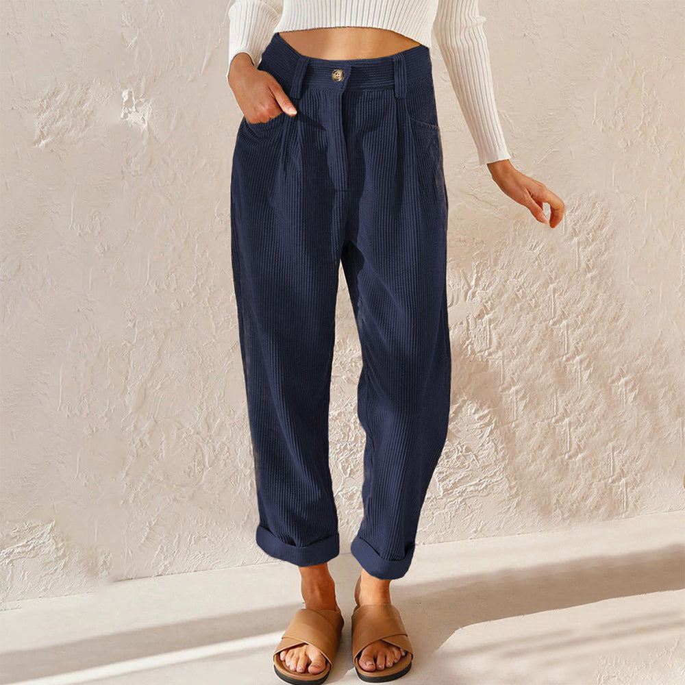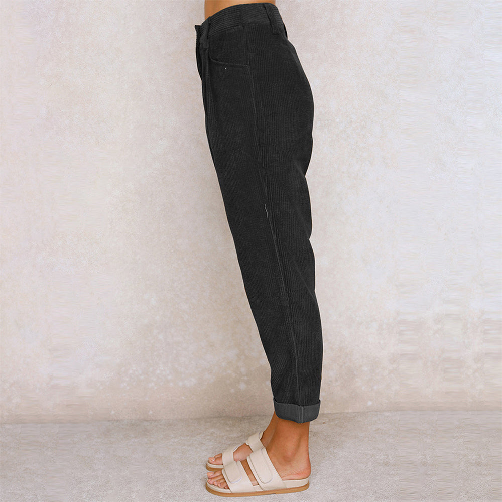 • 1 x Herbst Neue Frauen Hohe Taille Casual Hosen Einfarbig Cord Lose Gerade Hosen