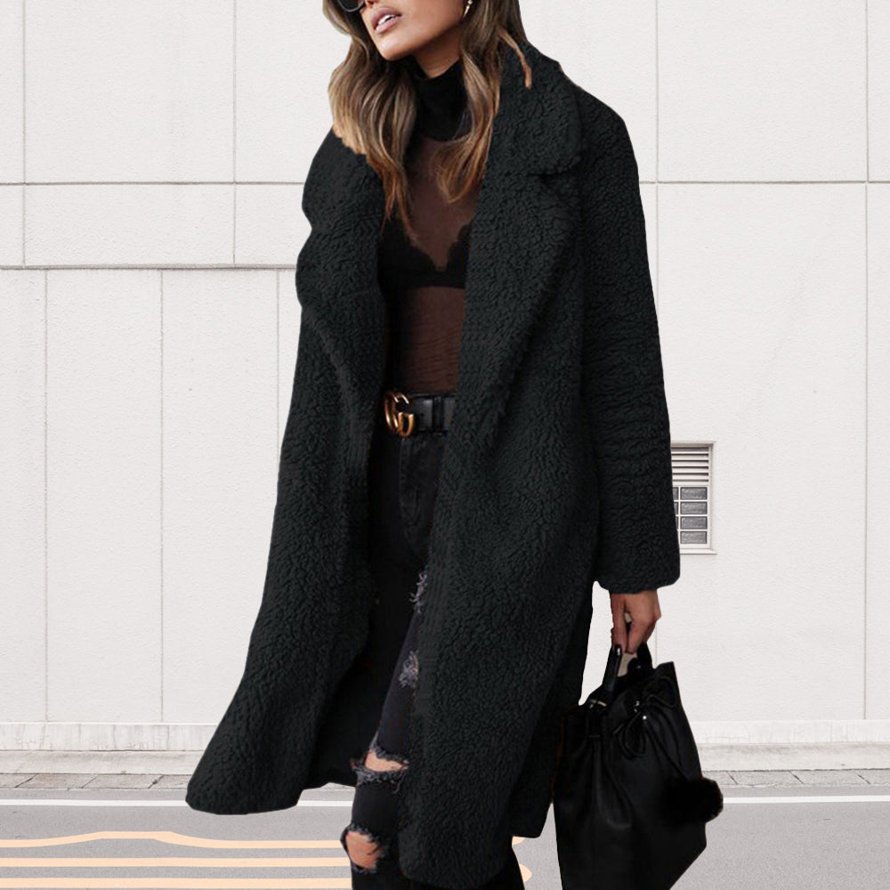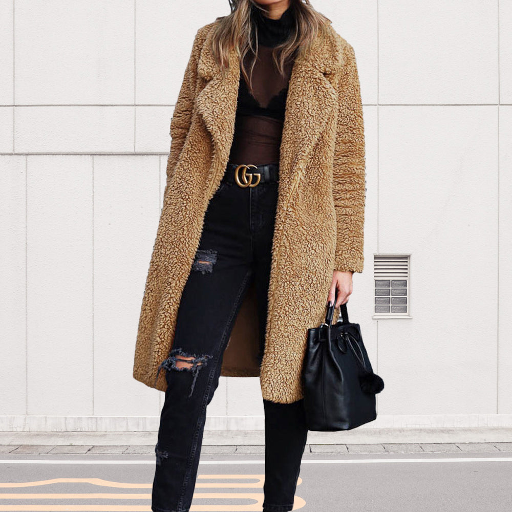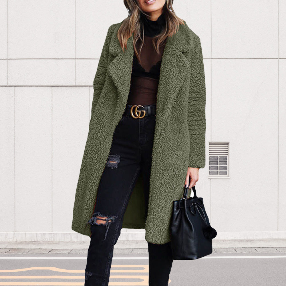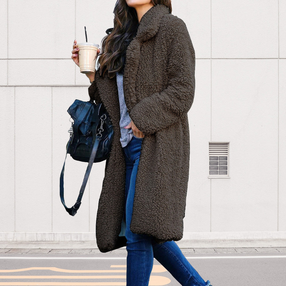 - 1 x Damen-Langarmmantel Aus Doppelseitigem Samt Mit Revers Und Langen ärmeln