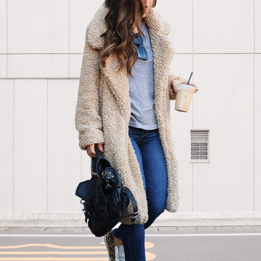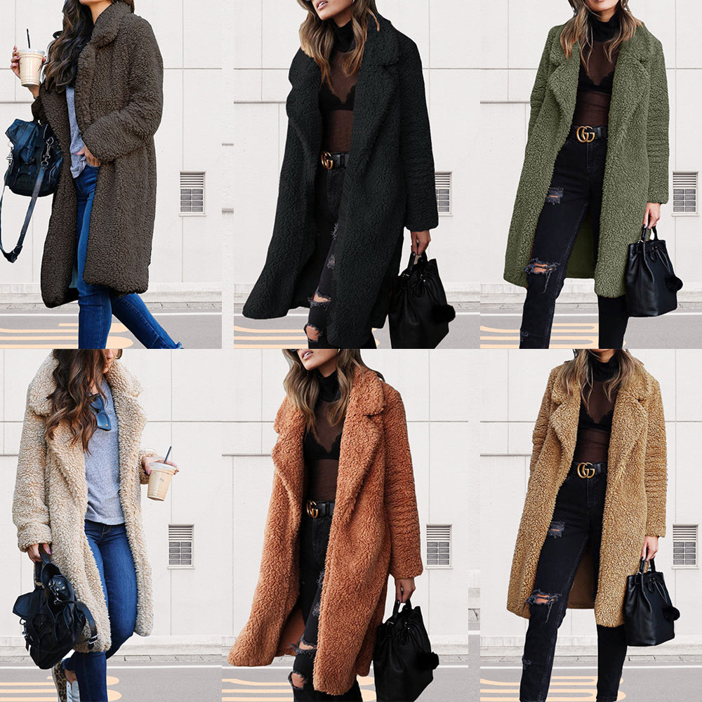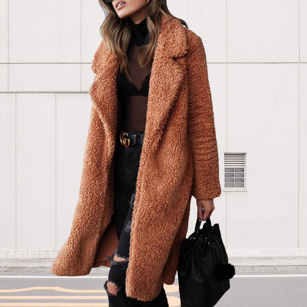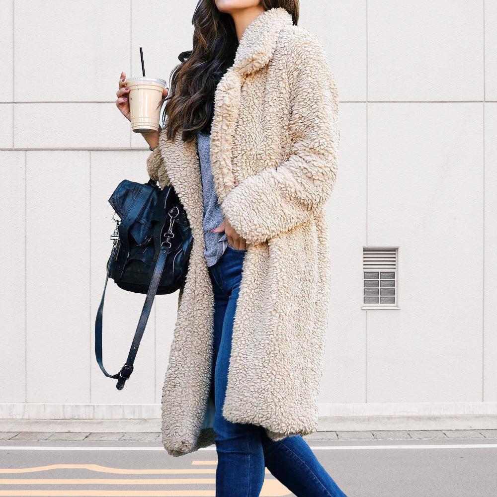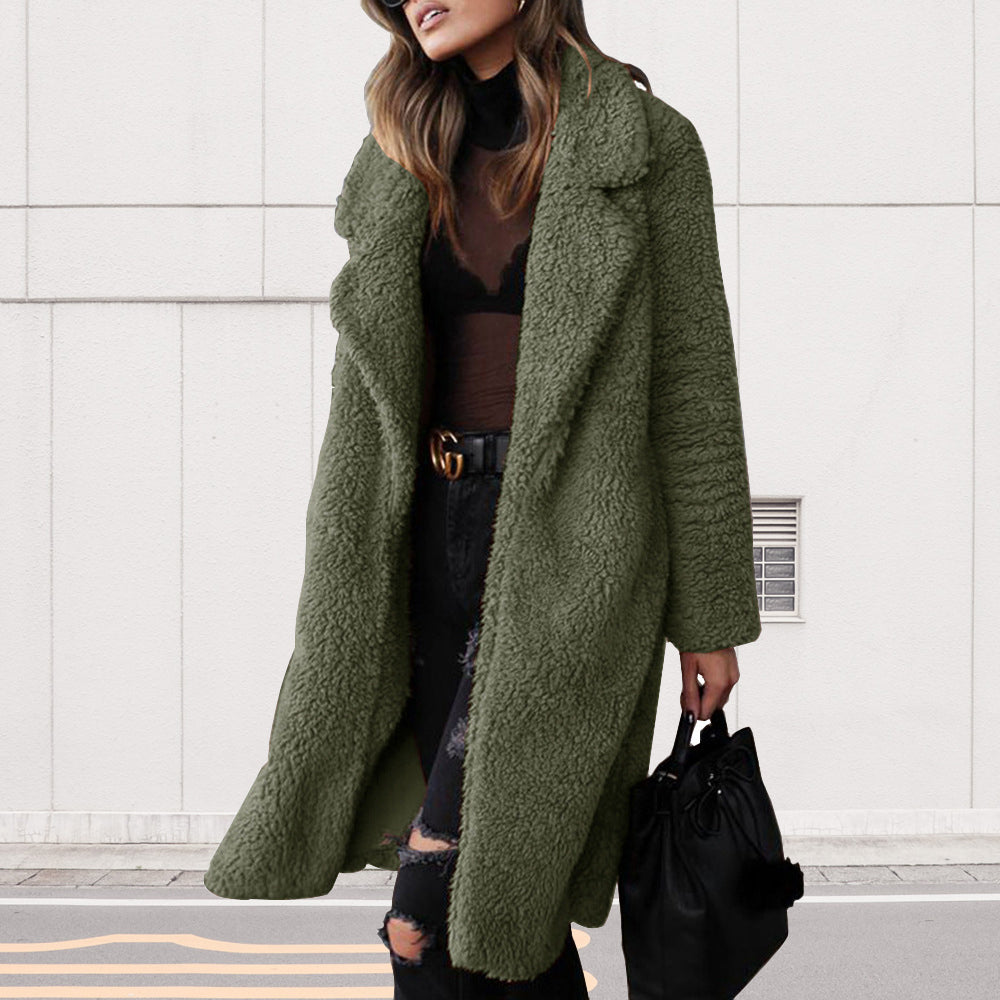 - 1 x Damen-Langarmmantel Aus Doppelseitigem Samt Mit Revers Und Langen ärmeln