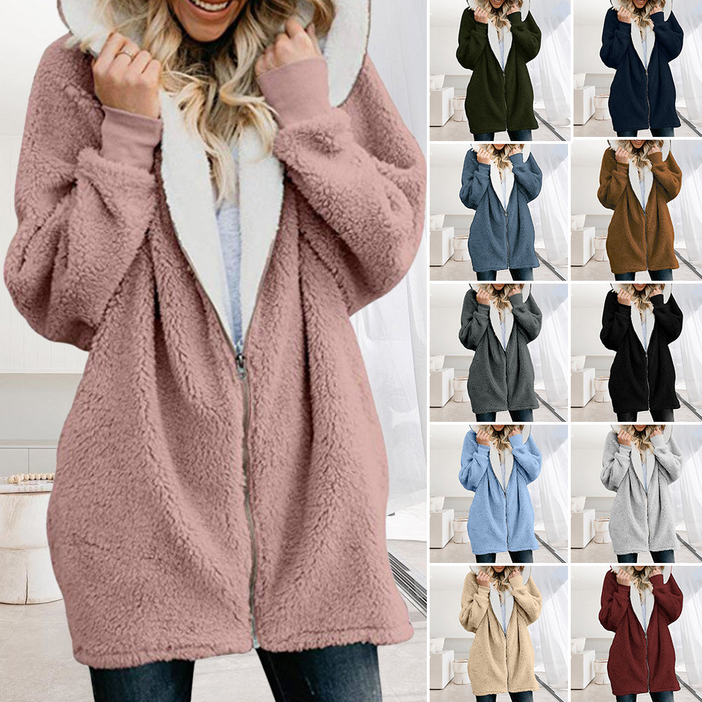 Herbst Und Winter Neue Mit Kapuze Reißverschluss Strickjacke Plüsch Dicken Mantel