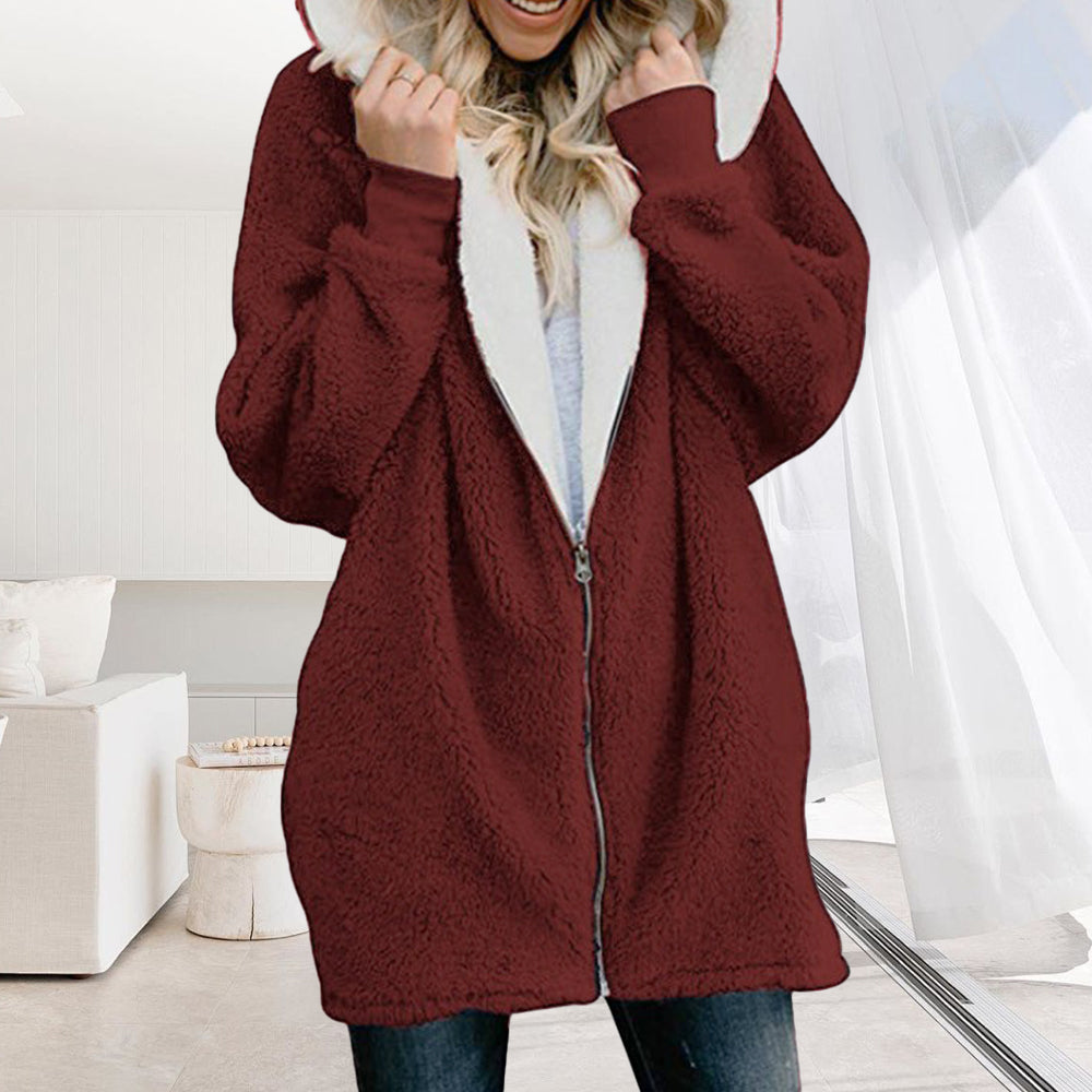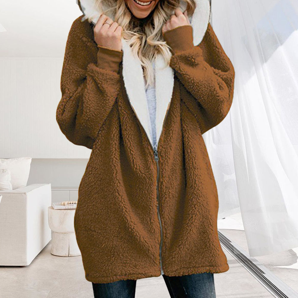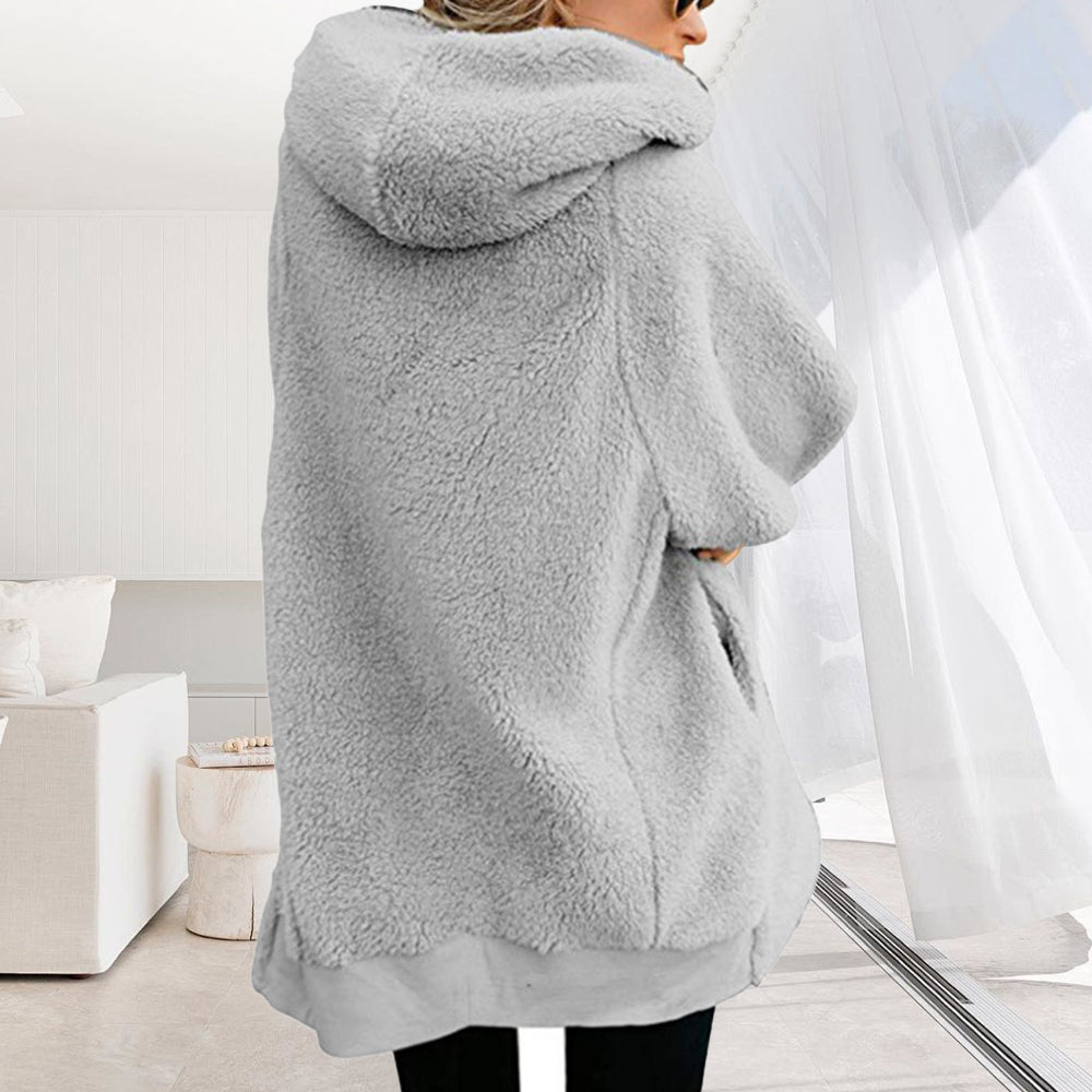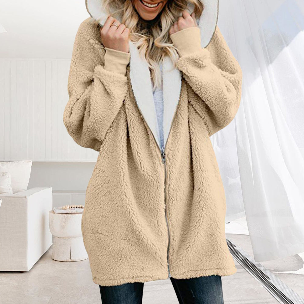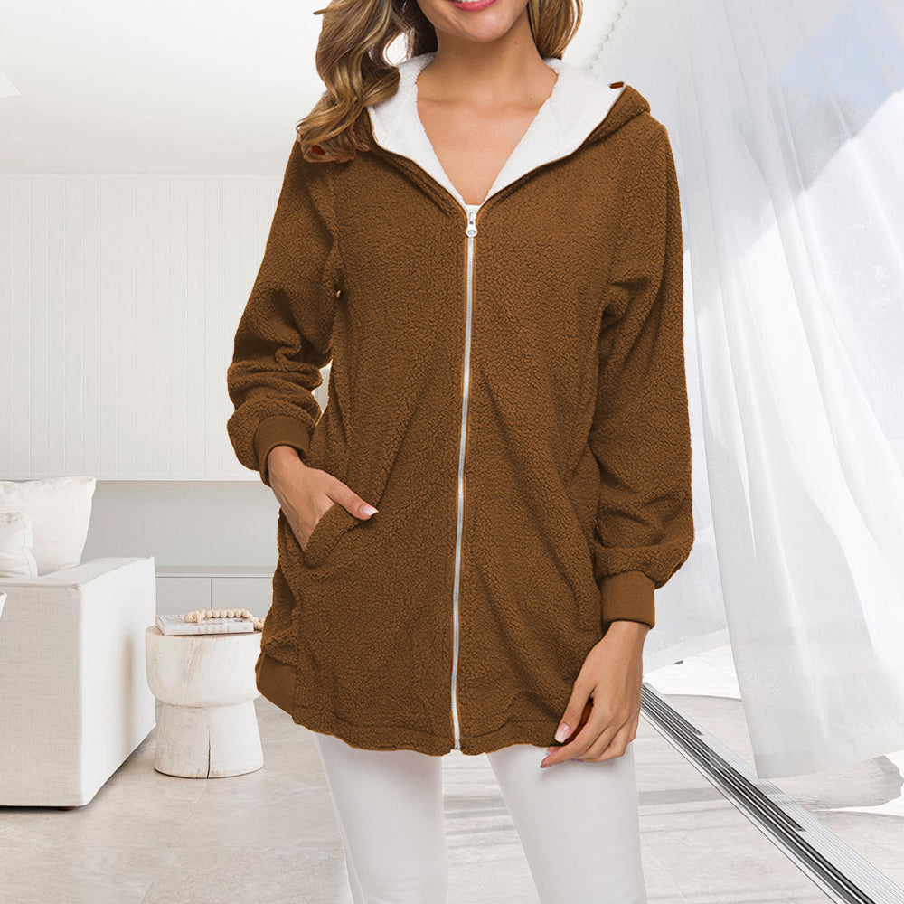 • 1 x Herbst Und Winter Neue Mit Kapuze Reißverschluss Strickjacke Plüsch Dicken Mantel