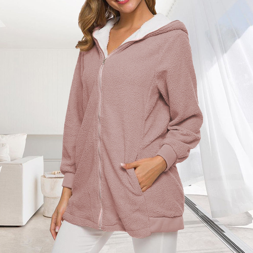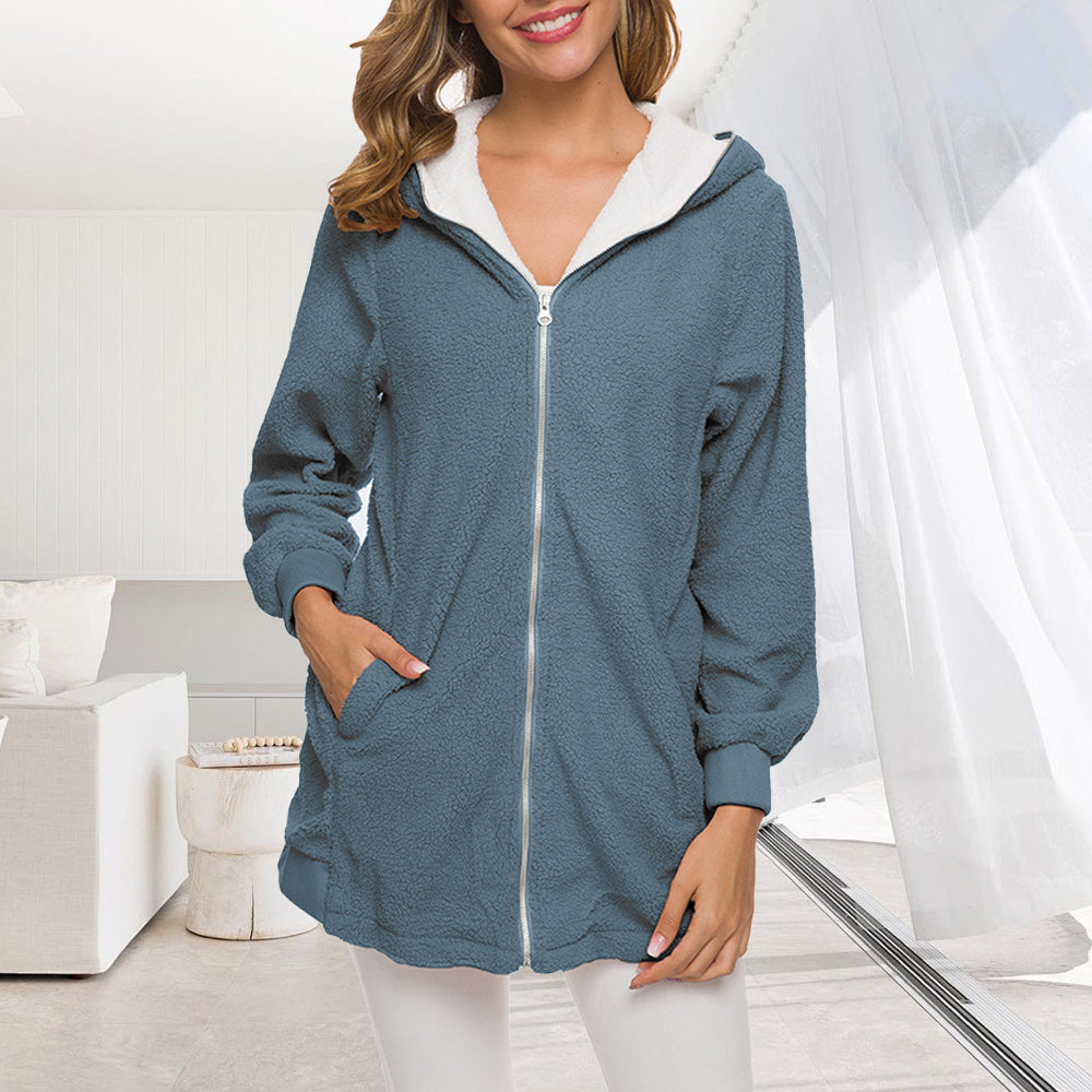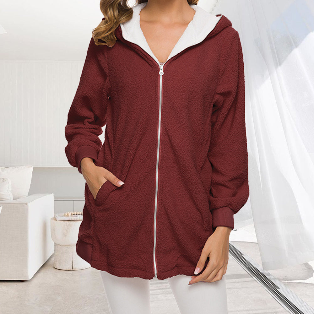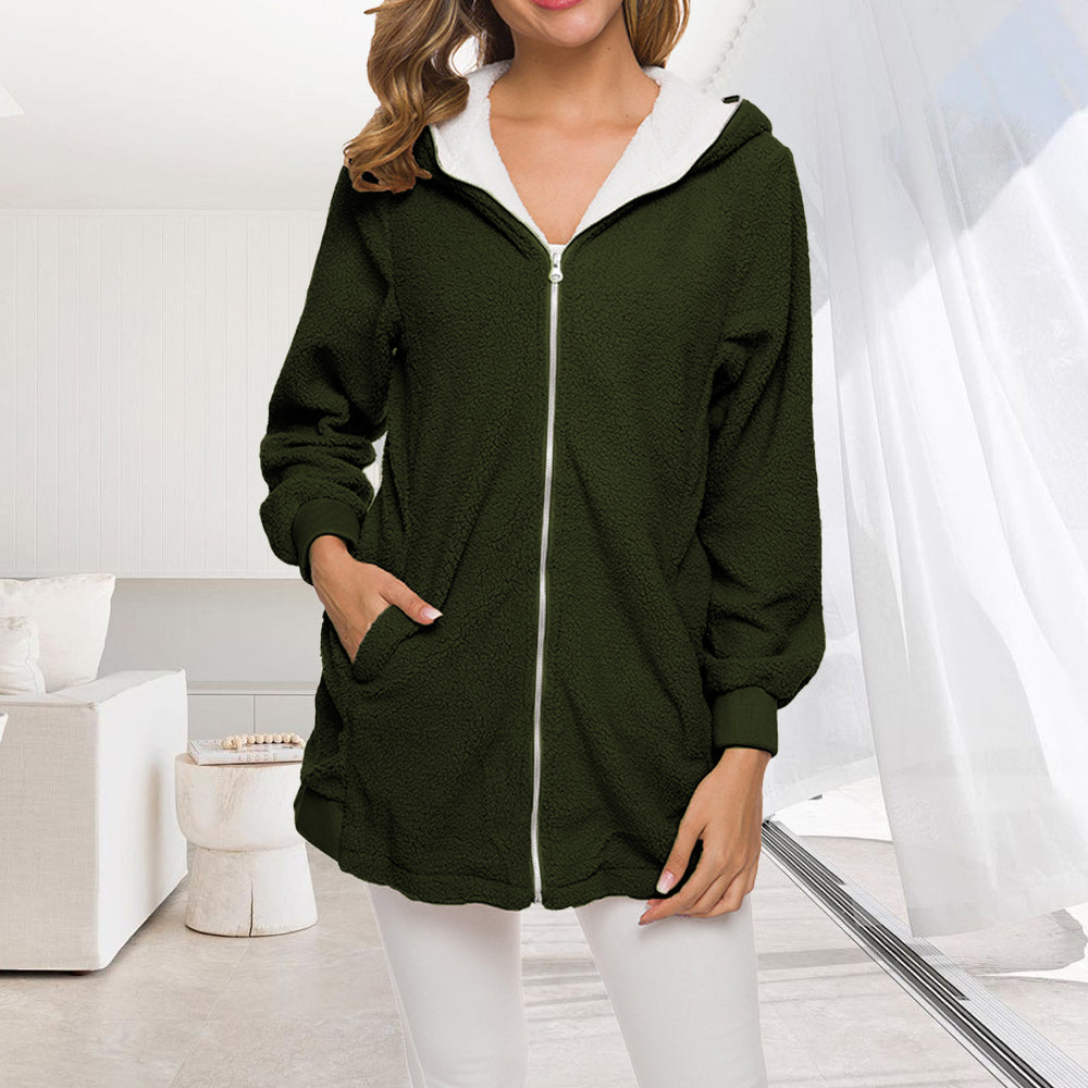 • 1 x Herbst Und Winter Neue Mit Kapuze Reißverschluss Strickjacke Plüsch Dicken Mantel