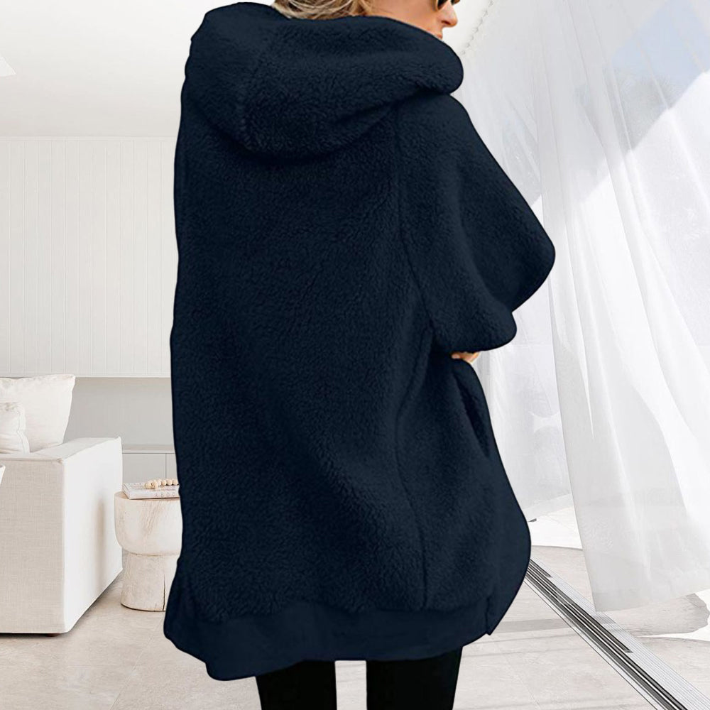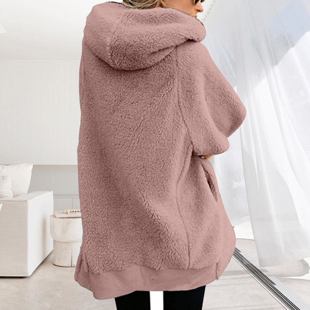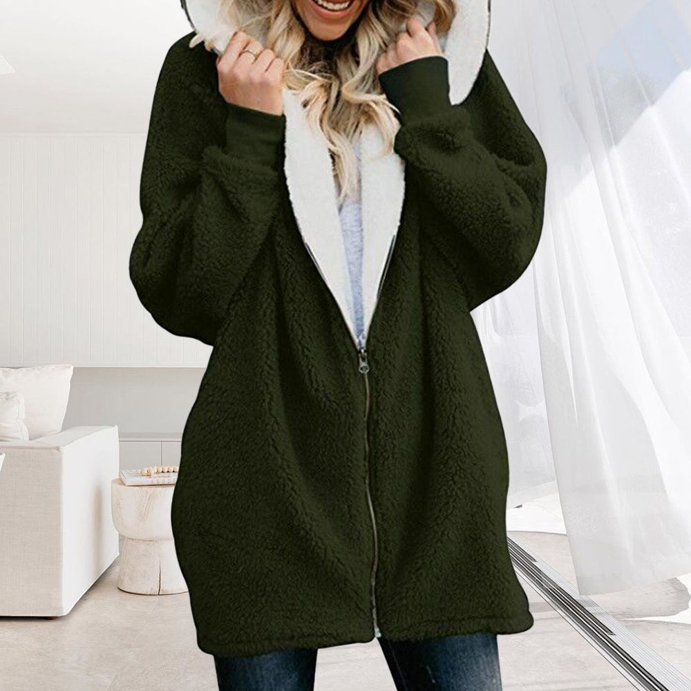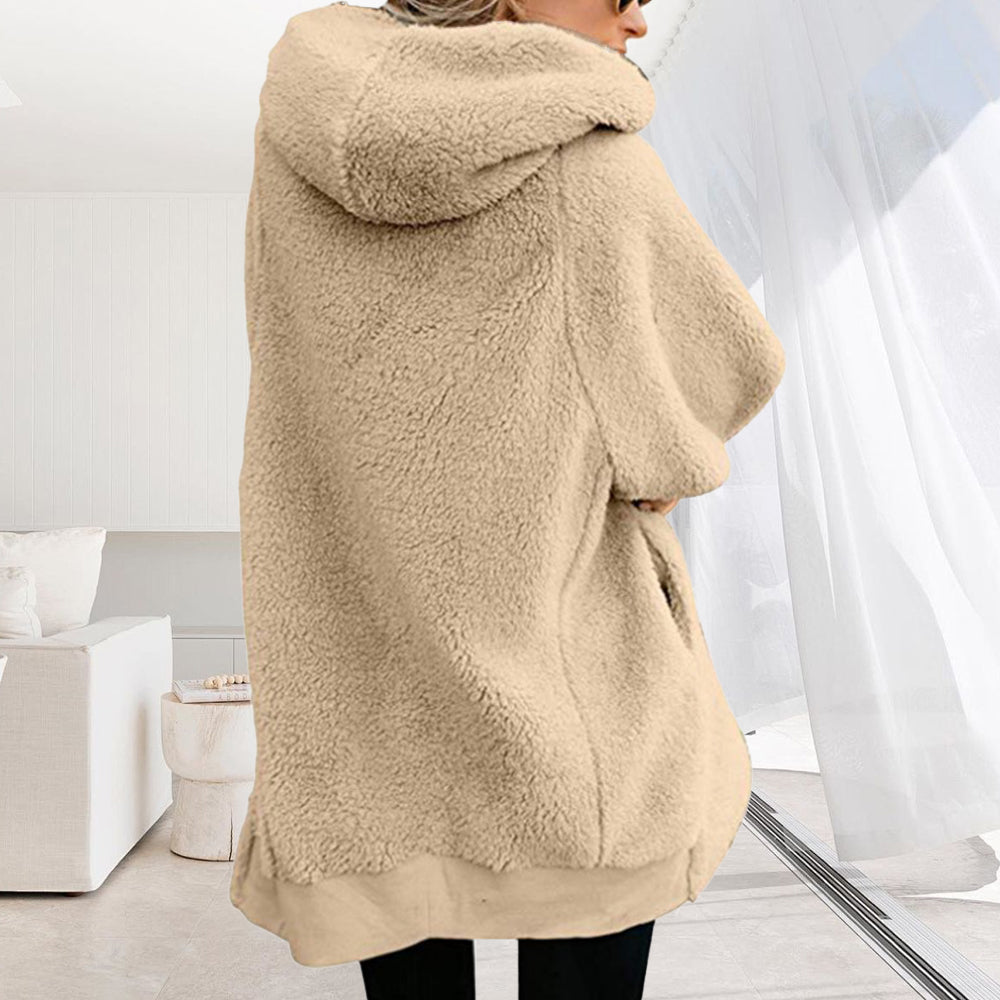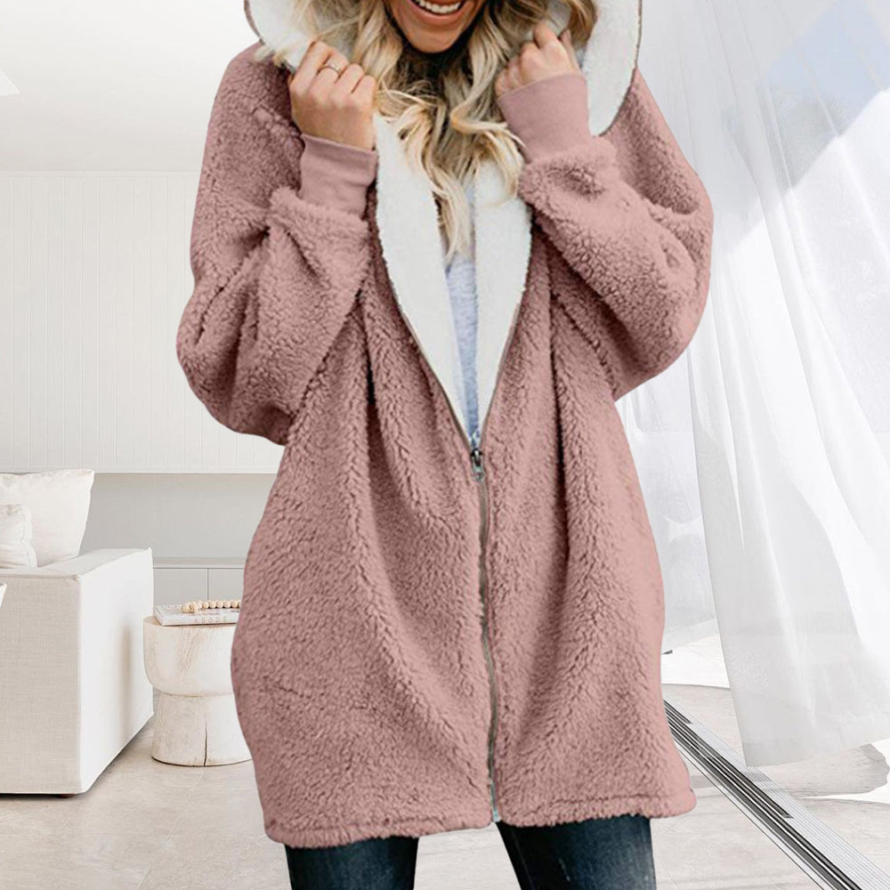 • 1 x Herbst Und Winter Neue Mit Kapuze Reißverschluss Strickjacke Plüsch Dicken Mantel