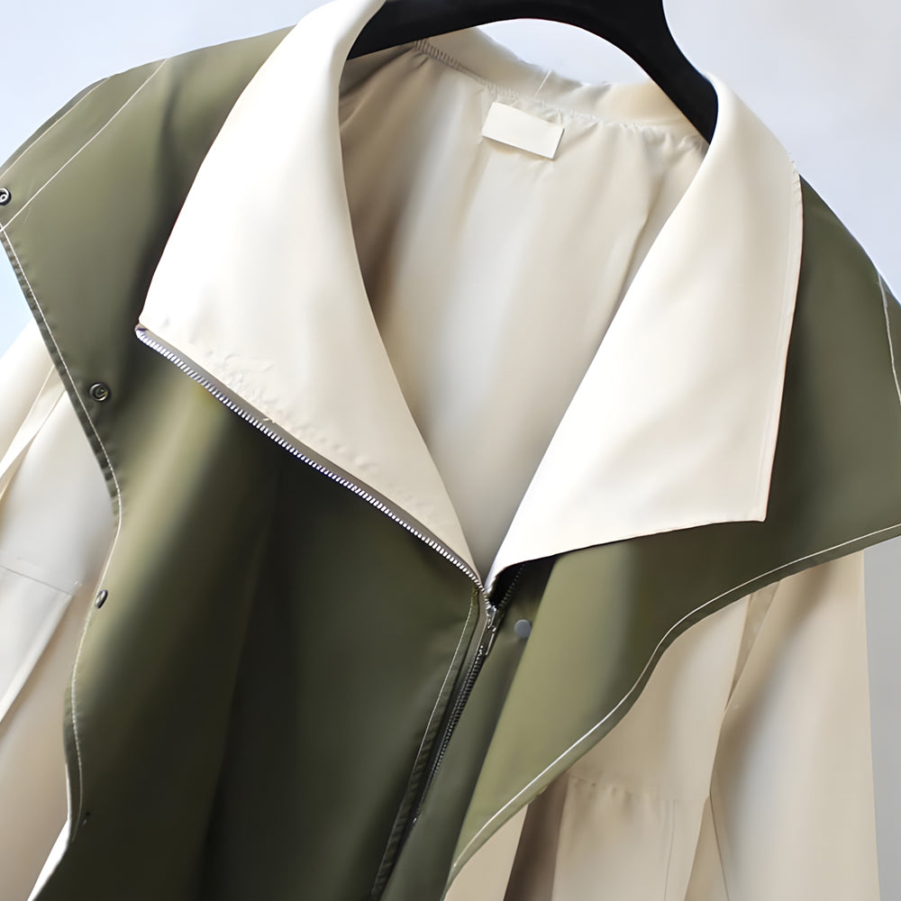 🍂🌼Gesamtkonzept: This trench coat combines classic and modern elements, retaining the classic silhouette of the trench coat while incorporating modern popular design elements such as hoods and zippers, making it more in line with the aesthetic and life needs of modern women.