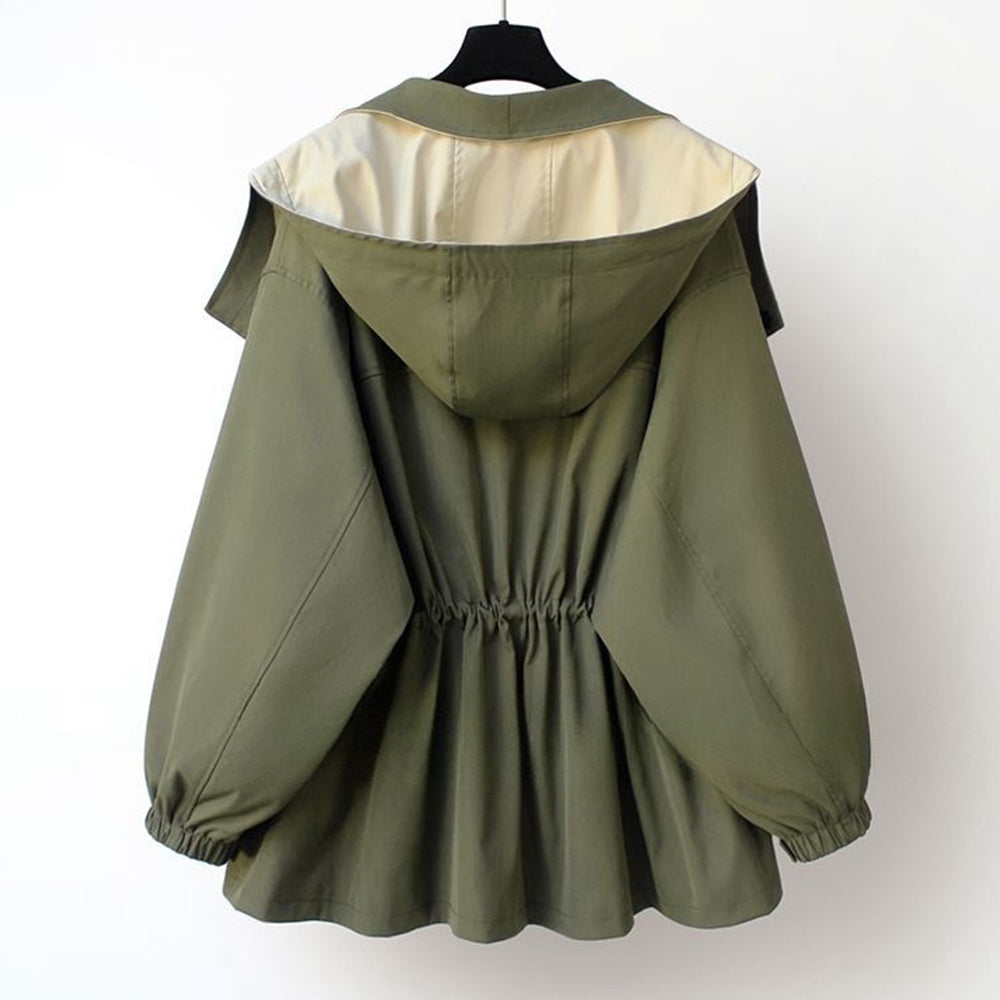 🍂🌼Design: Diese Windjacke hat ein hoch tailliertes Design, das dem Körper schmeichelt, die Beine verlängert und eine elegante Figur betont. Das Design mit Kapuze ist nicht nur ein modisches Element, sondern sorgt auch für zusätzliche Wärme und Schutz, wenn sich das Wetter plötzlich ändert.