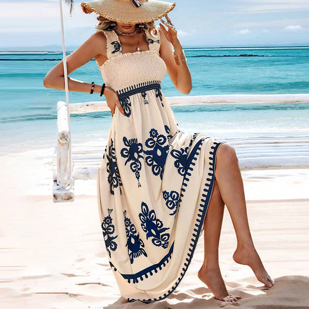 • 1 x Bedrucktes Brust-Wickelkleid für Damen im Beach Resort-Stil
