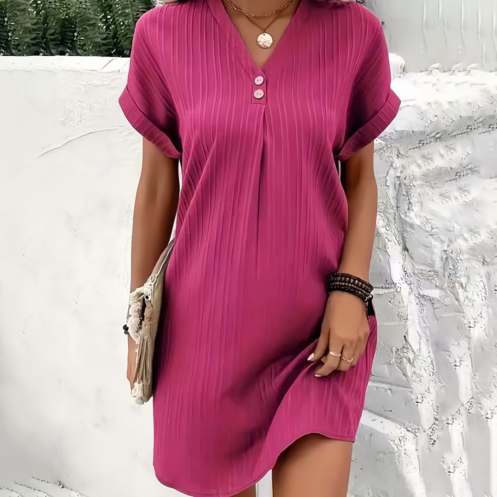 Elegantes Damenkleid mit einfarbigen Knöpfen und V-Ausschnitt