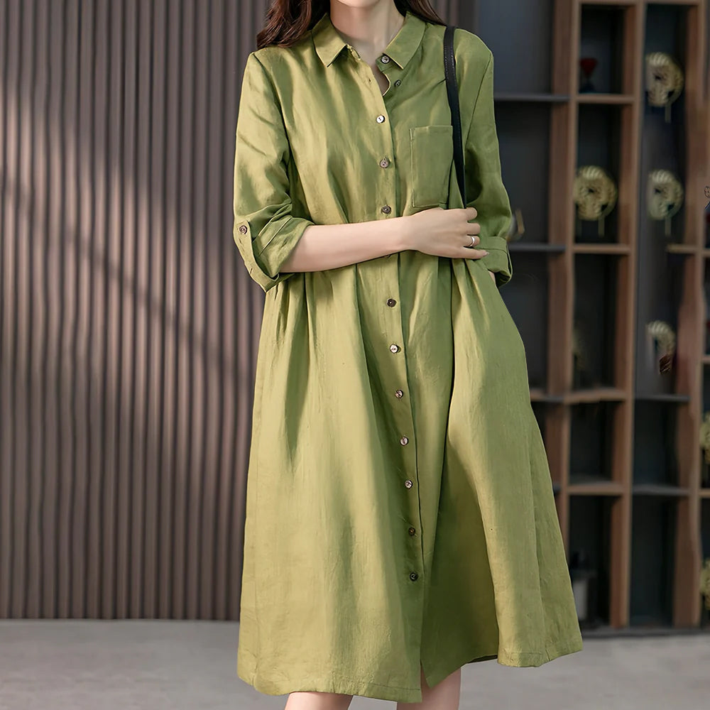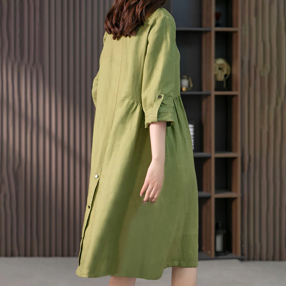 Neues, elegantes, einfarbiges Schlankheitskleid aus Leinen
