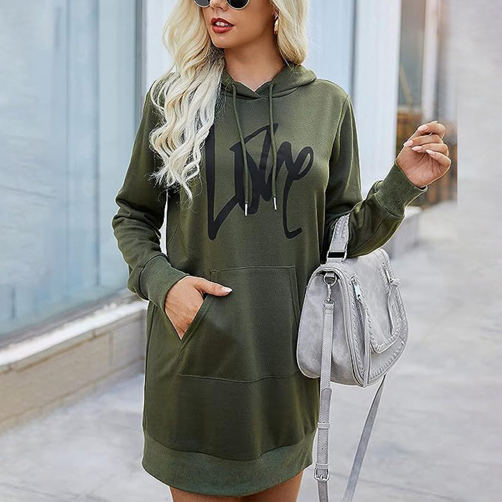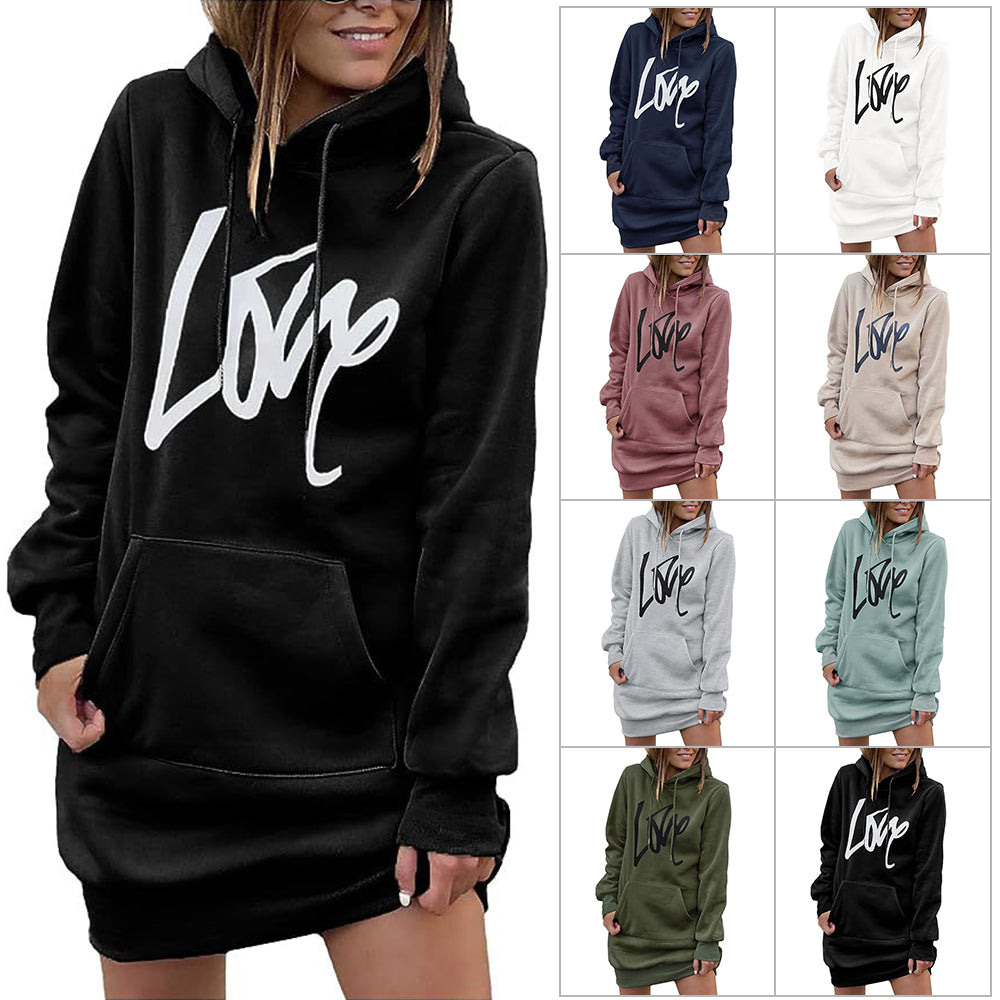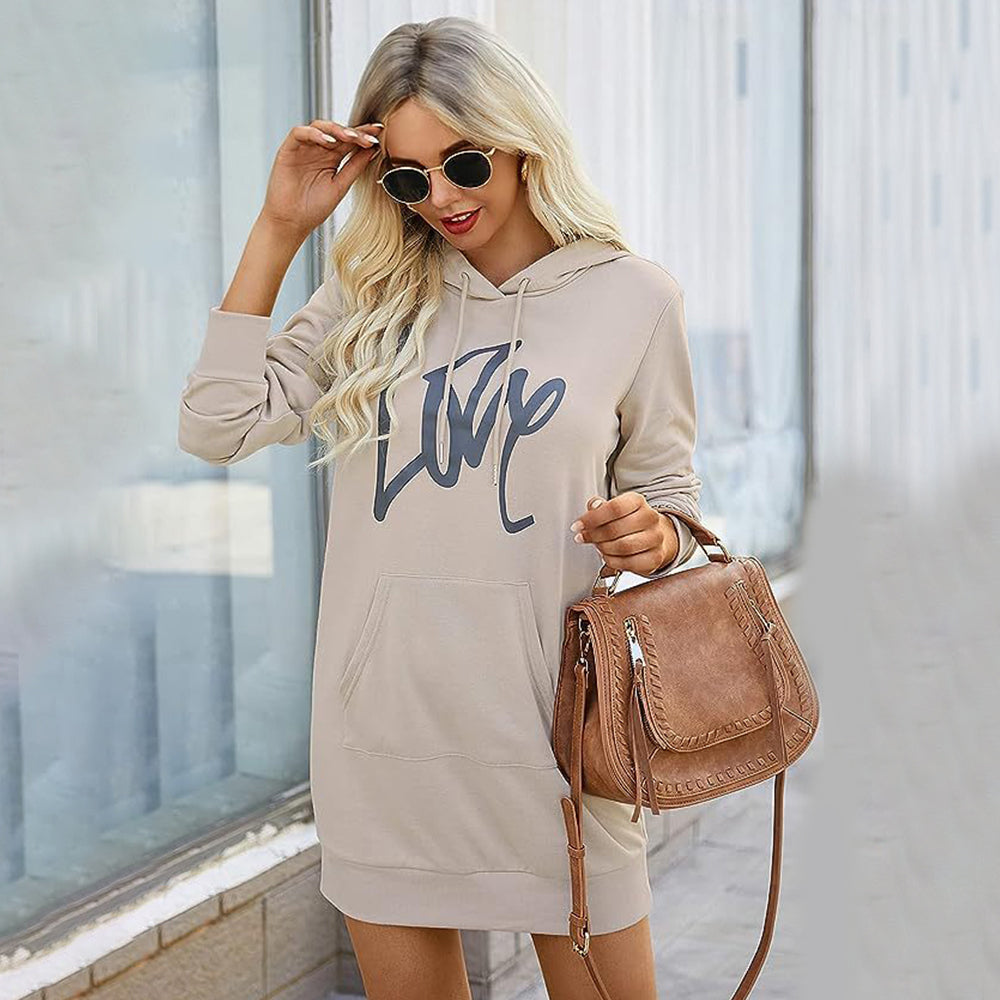 Neues, Heiß Verkauftes, Mittellanges Sweatshirt-Kleid Mit Kapuze
