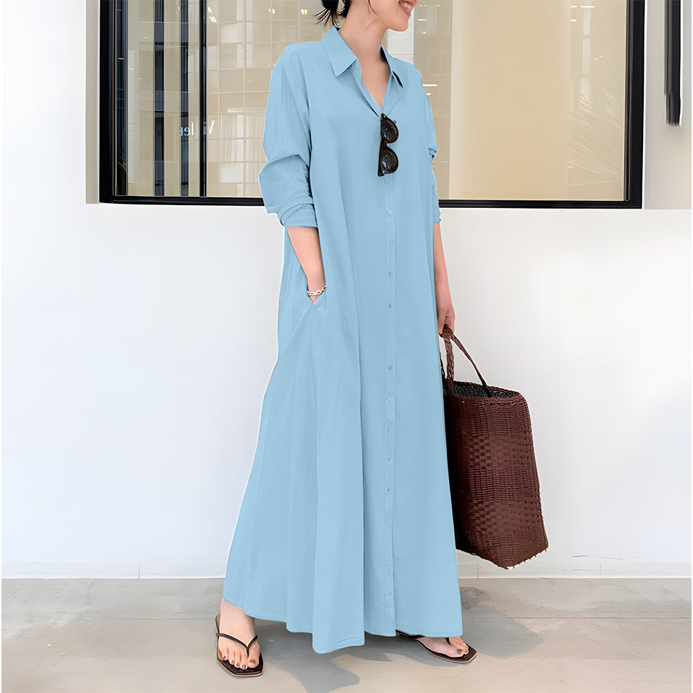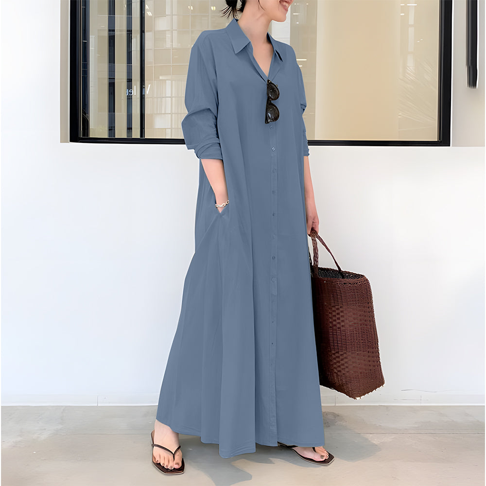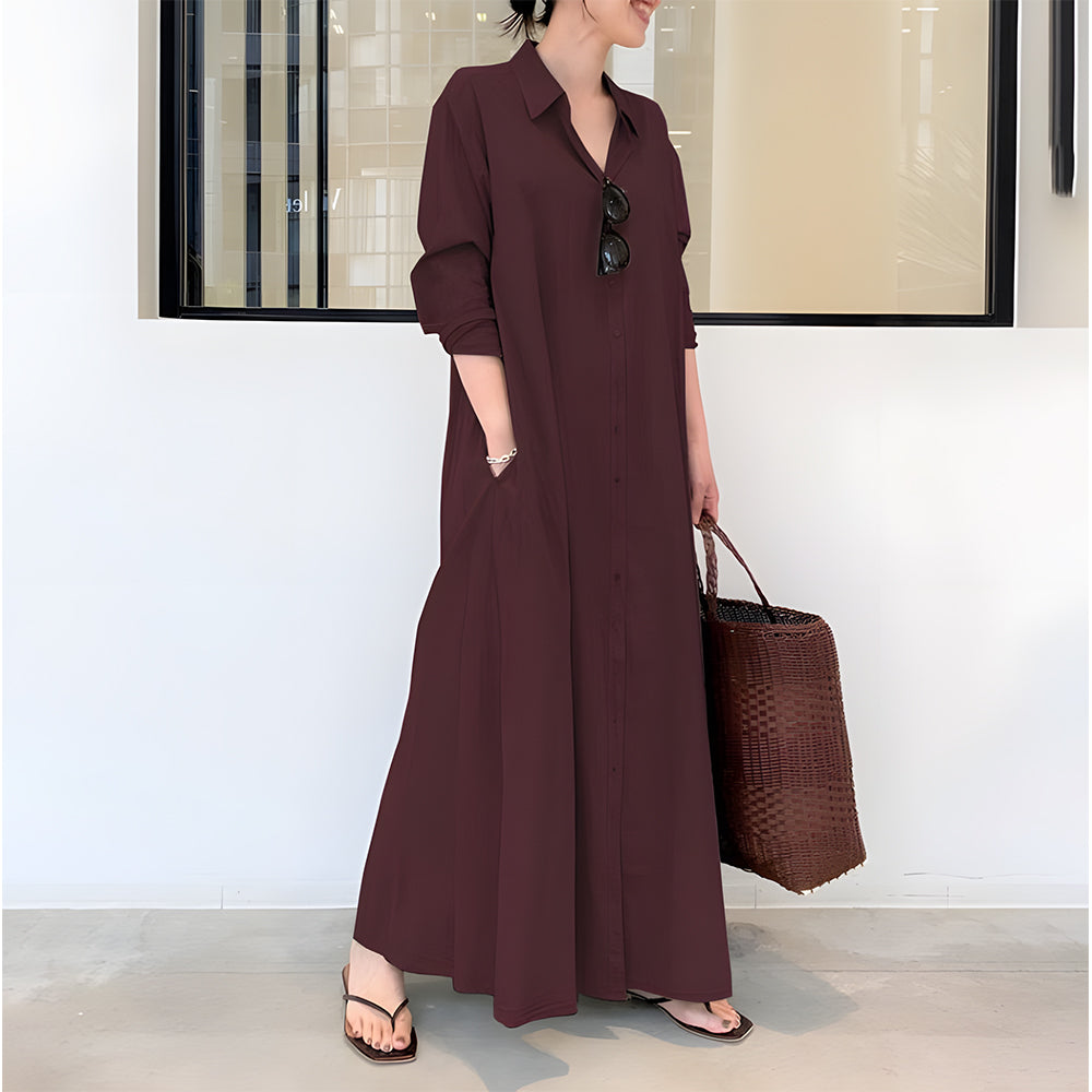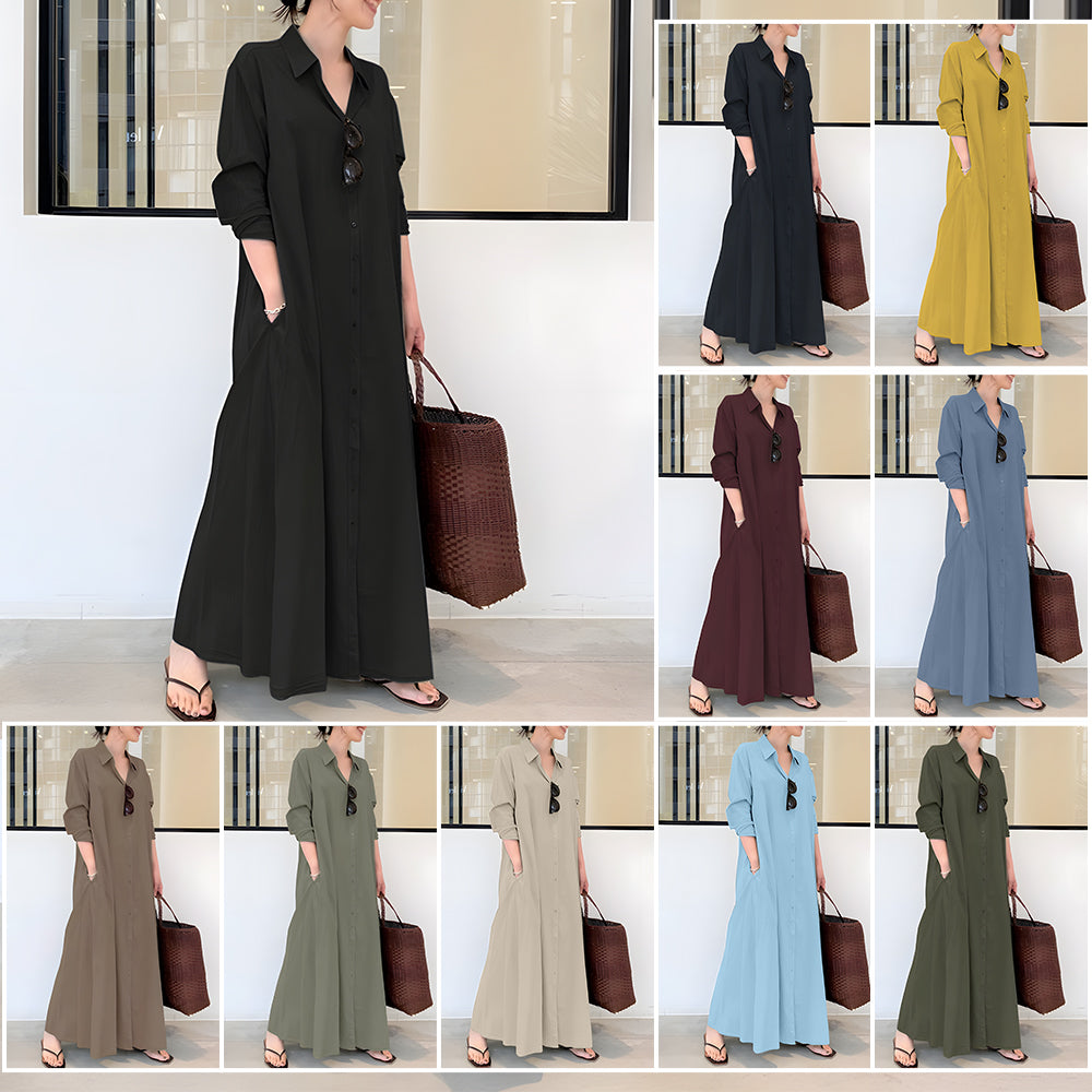 Neues langärmliges Hemdblusenkleid mit Tasche