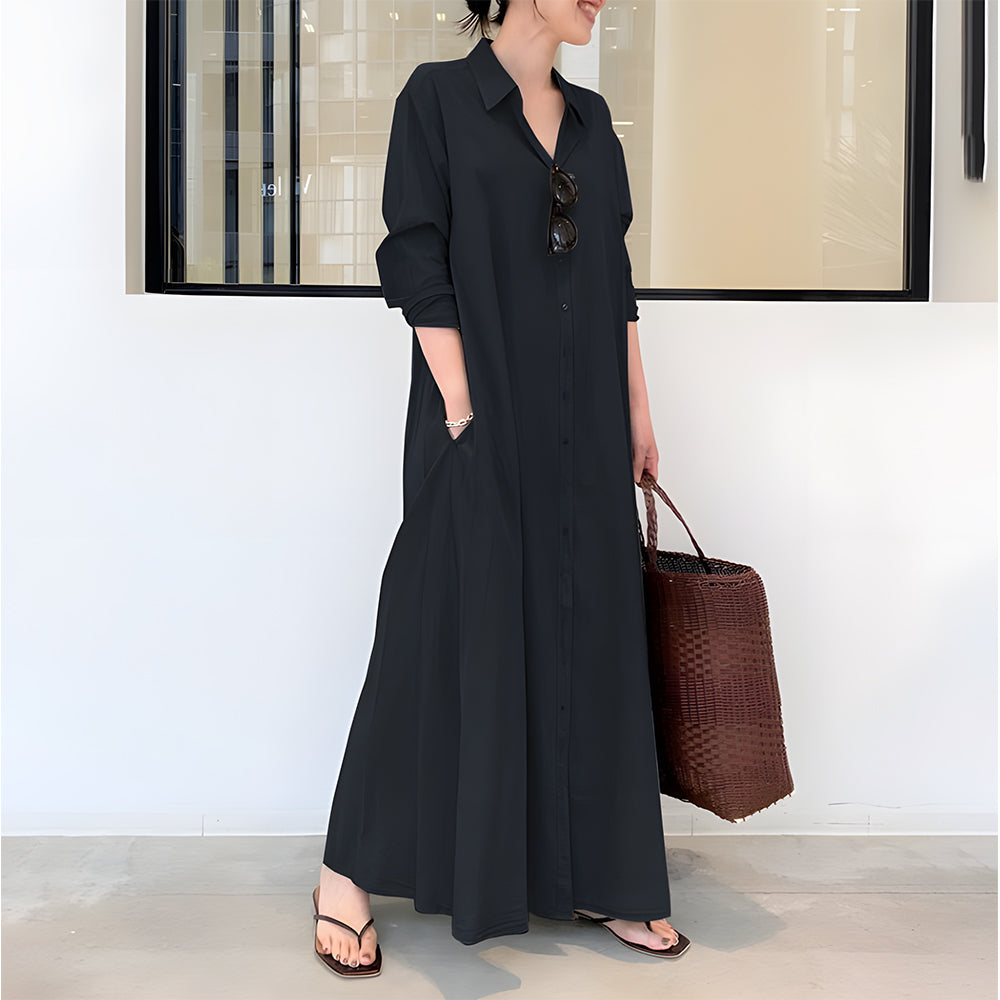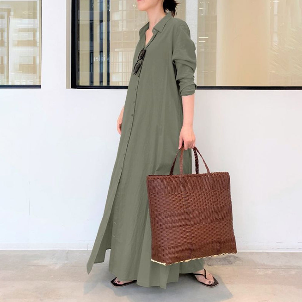 👔Design: Ein klassisches Hemdblusenkleid mit Reverskragen und Knöpfen auf der Vorderseite für Funktionalität und Komfort. Die Ärmel schmeicheln dem Arm. Seitliche Schlitze am Saum machen es beweglich und elegant.