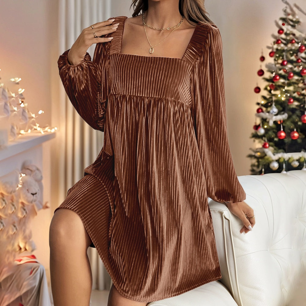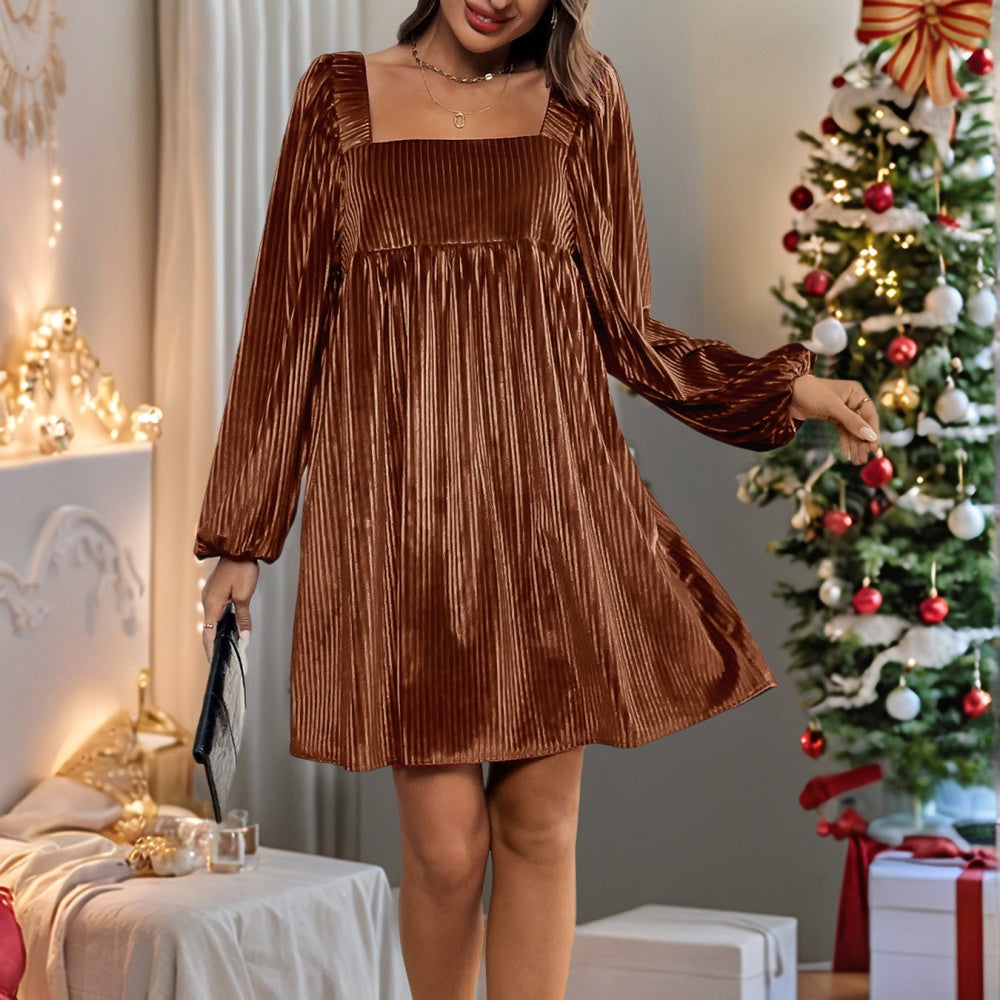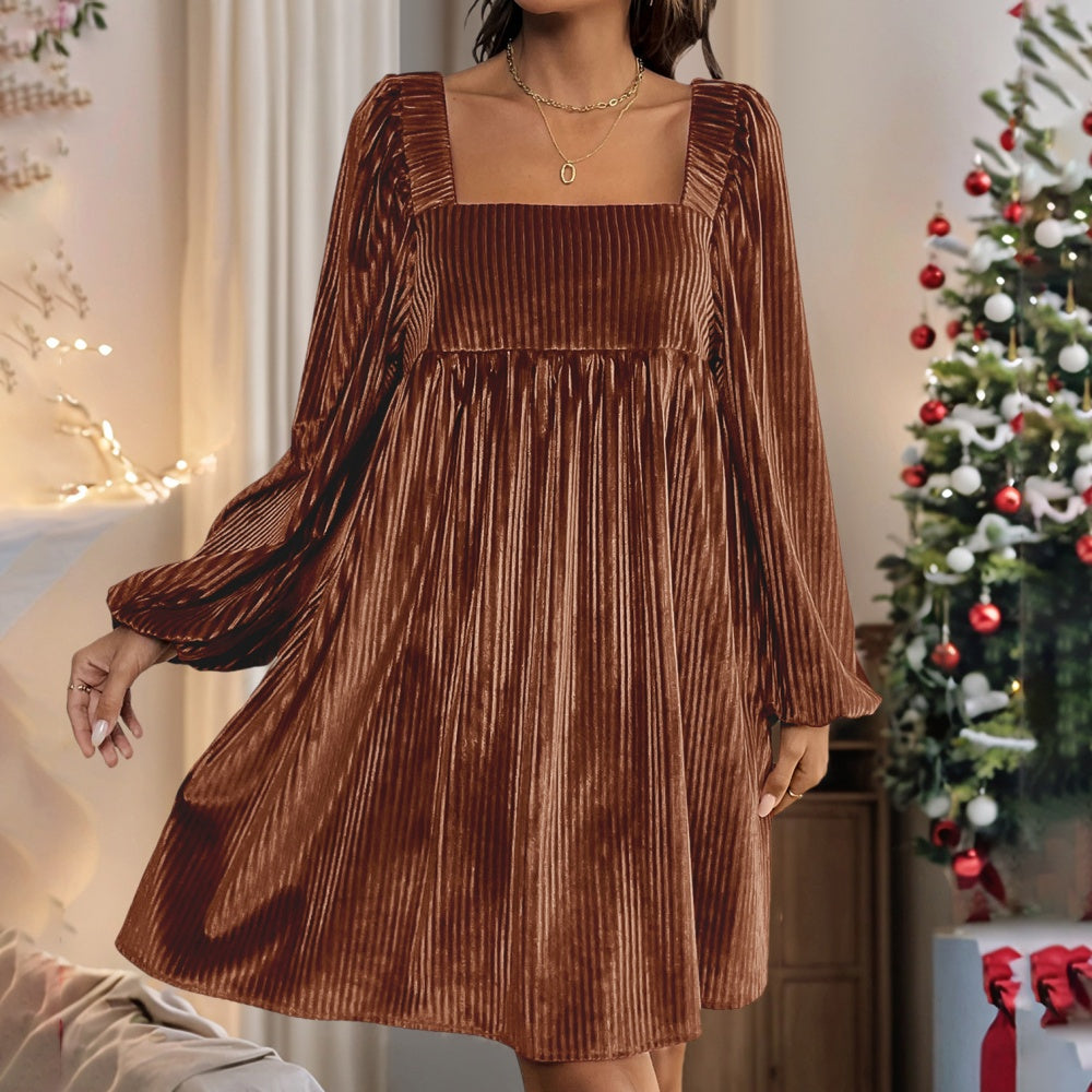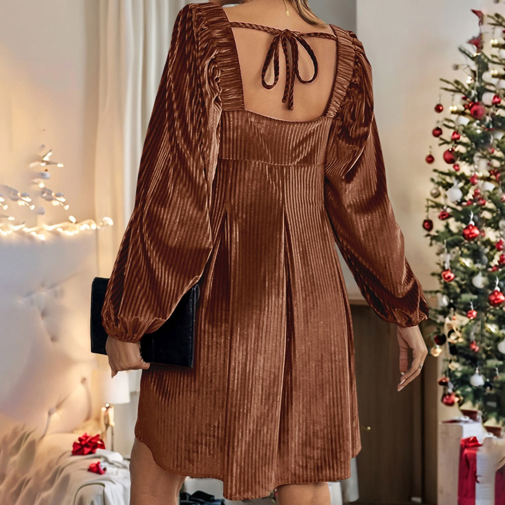 Rückenfreies Herbst- Und Winterkleid Aus Samt Mit Quadratischem Ausschnitt
