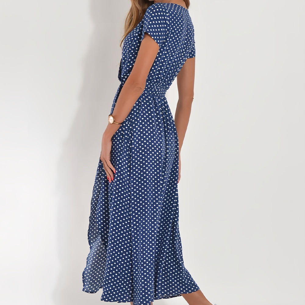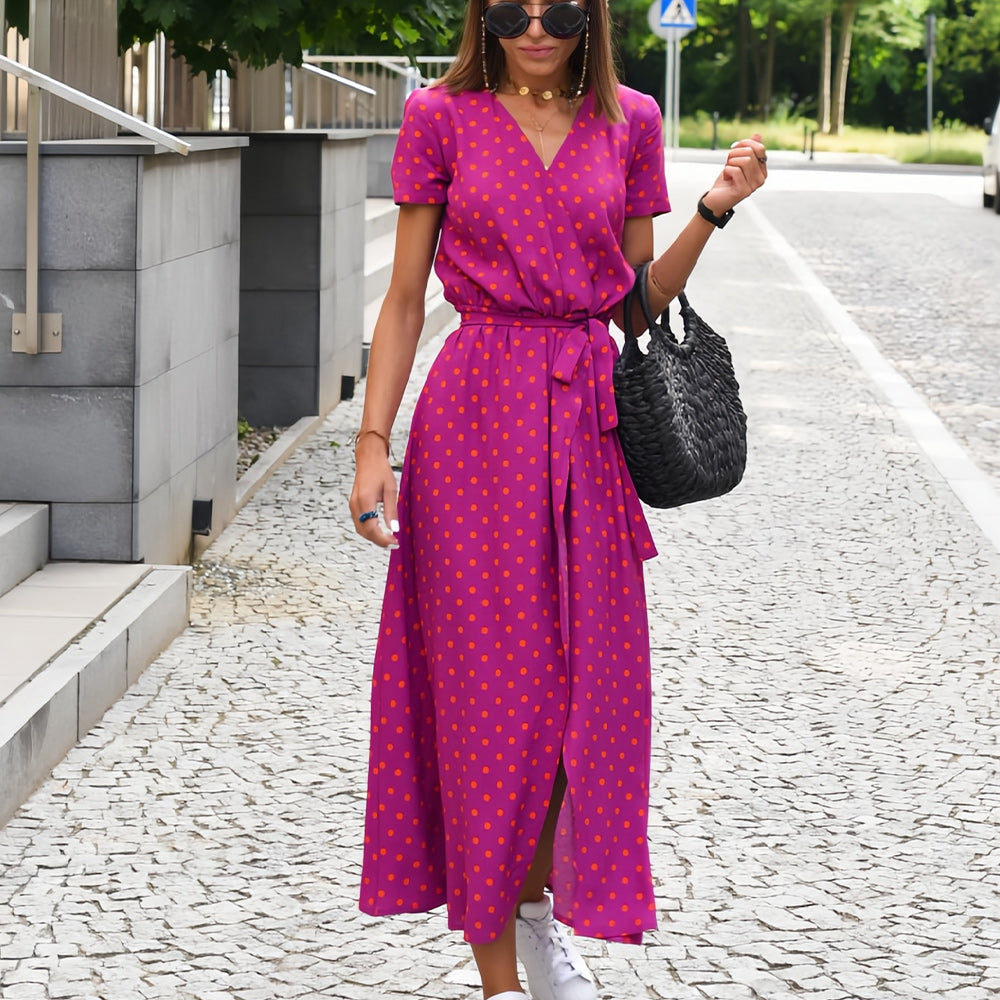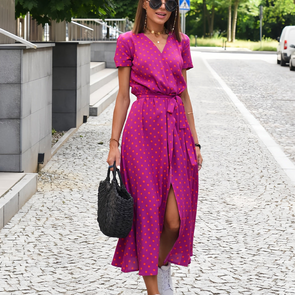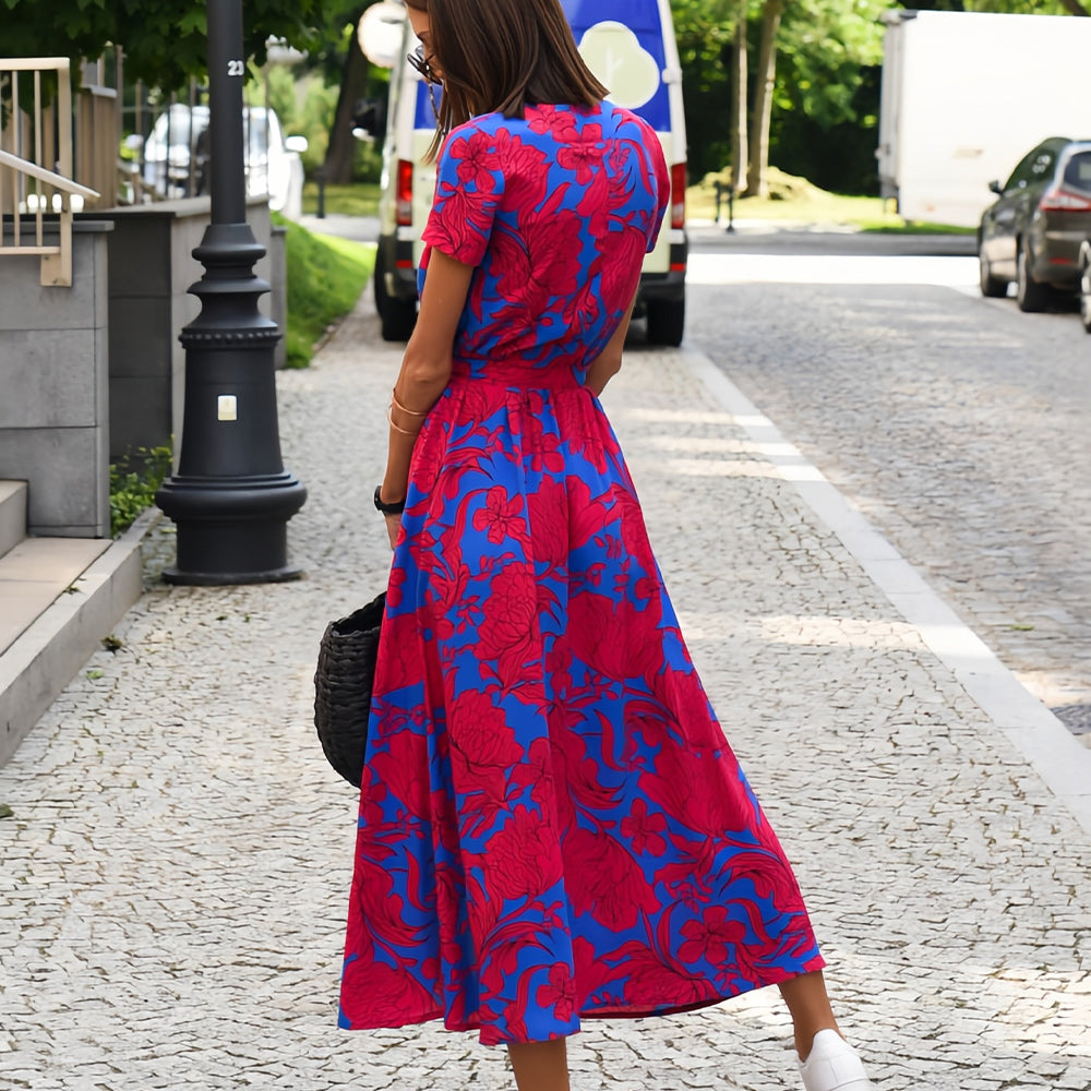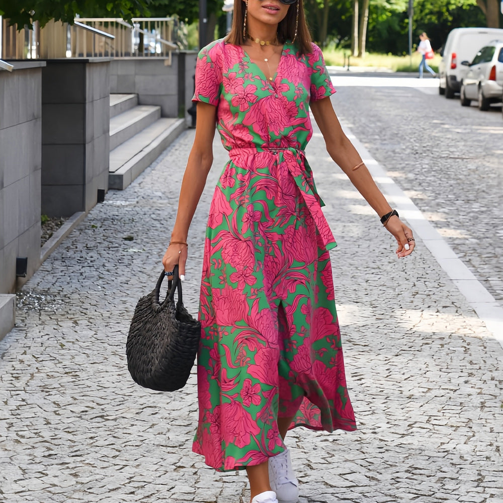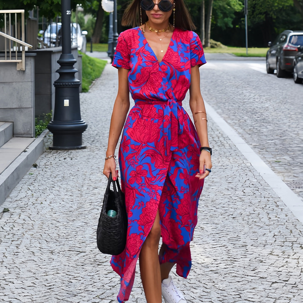 Neues bedrucktes Sommerkleid mit V-Ausschnitt