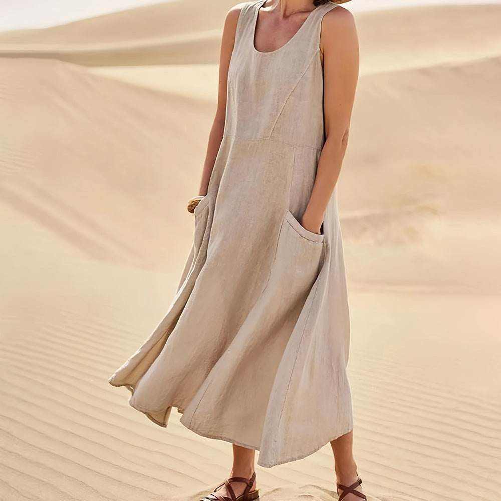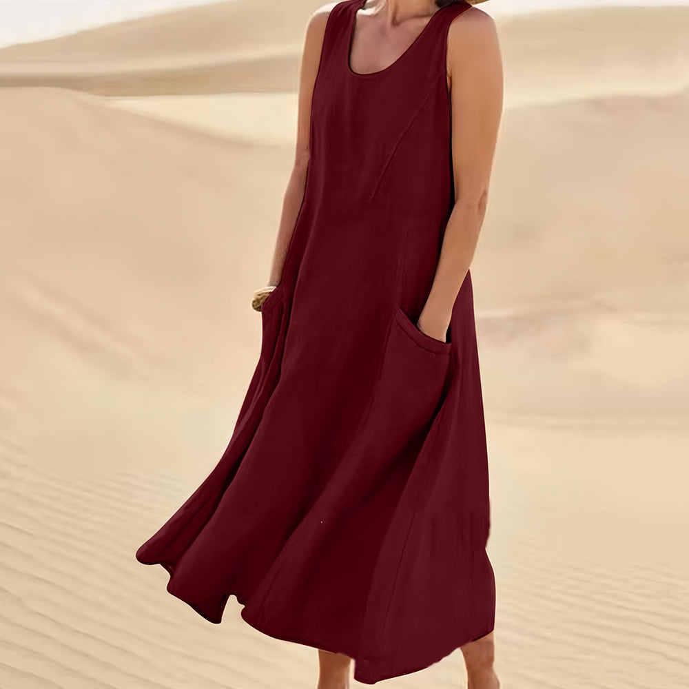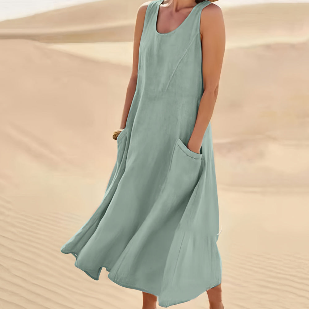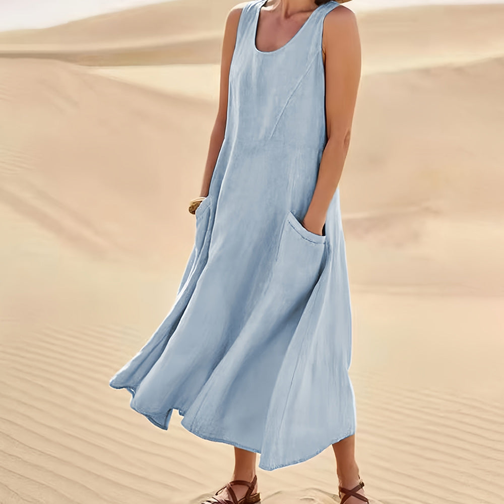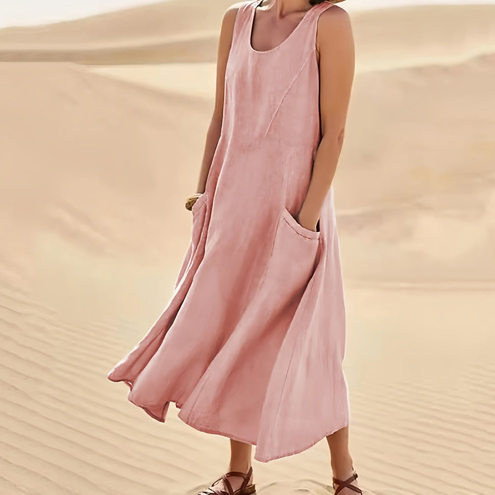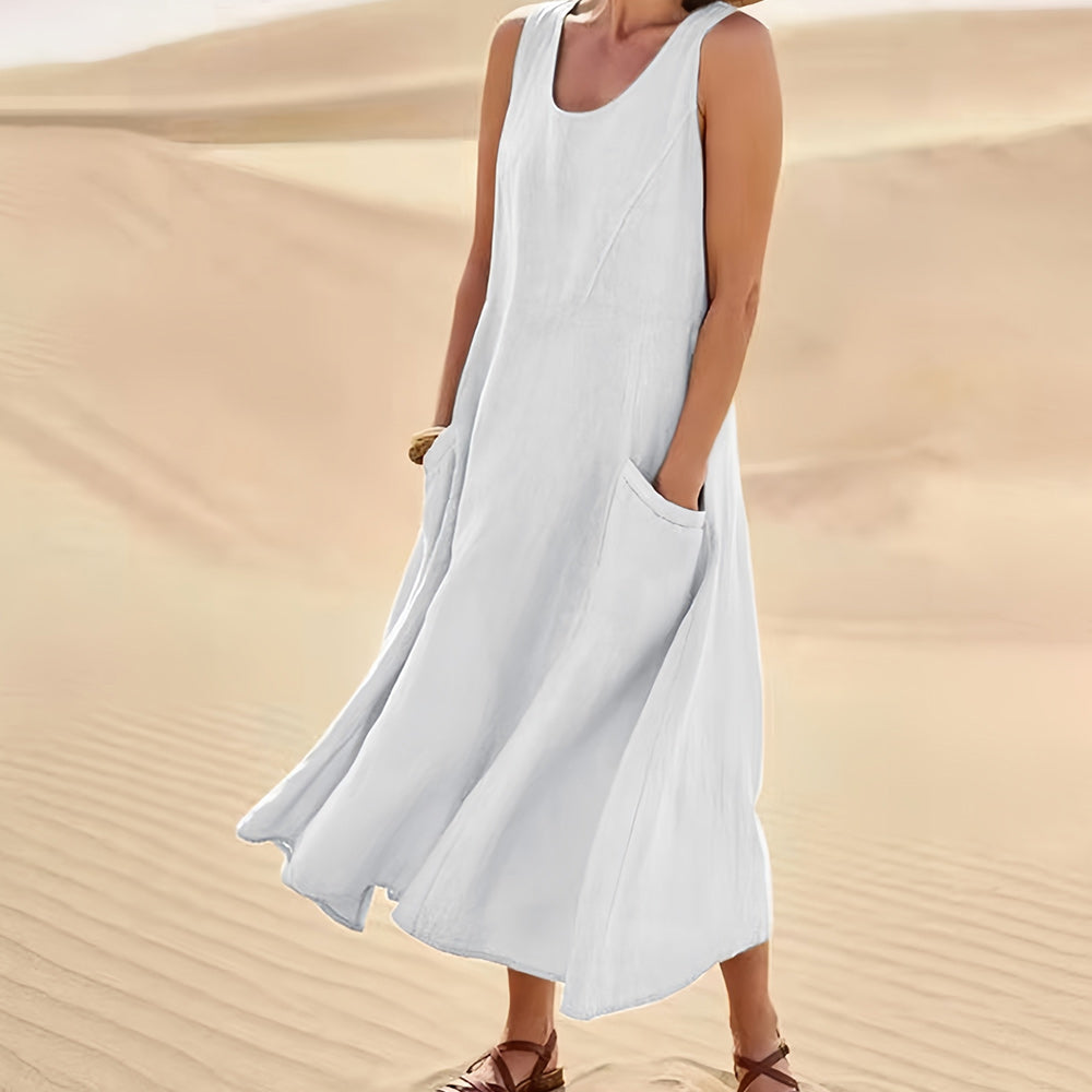 Schlichtes einfarbiges ärmelloses Sommerkleid für Damen