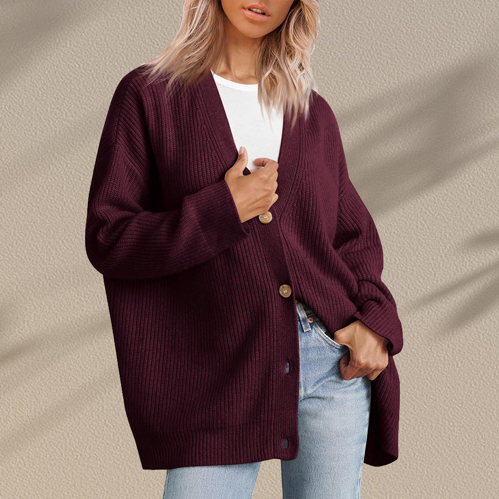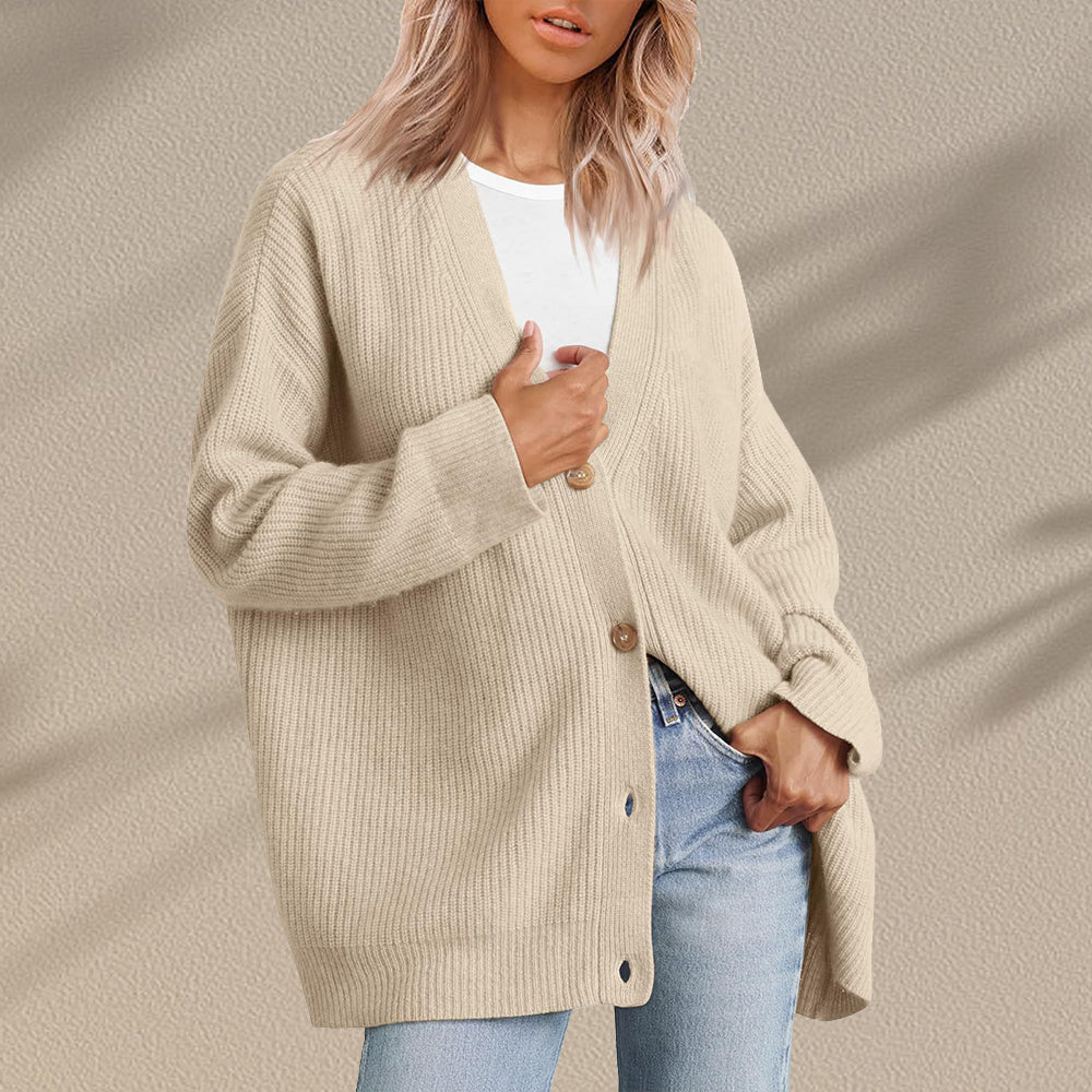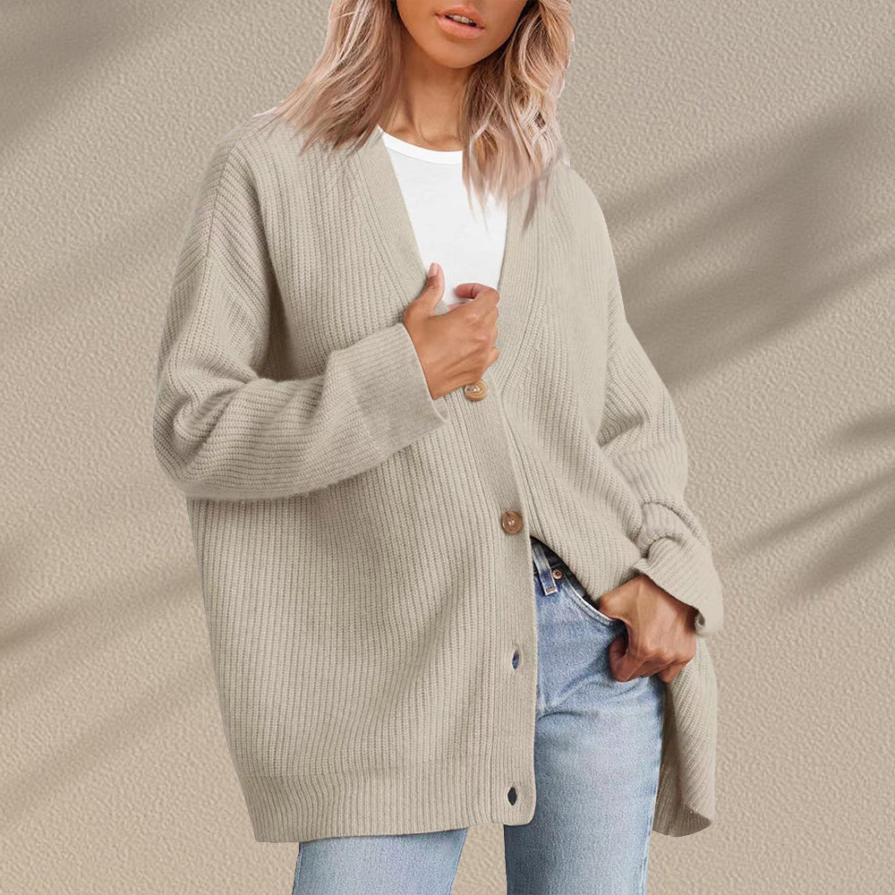 - 1 x Herbst- Und Winterneuheiten, Einfacher, Vielseitiger, Einfarbiger, Beliebter Damen-Strickjackenpullover