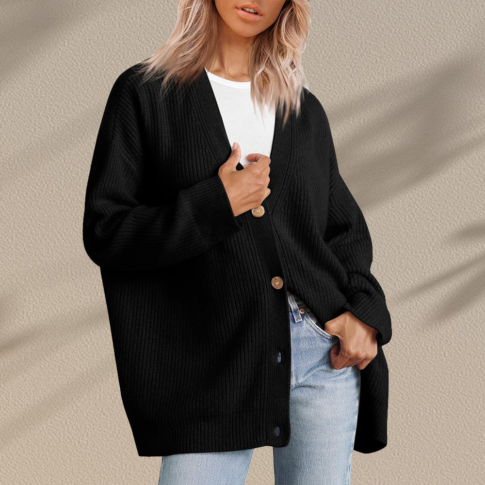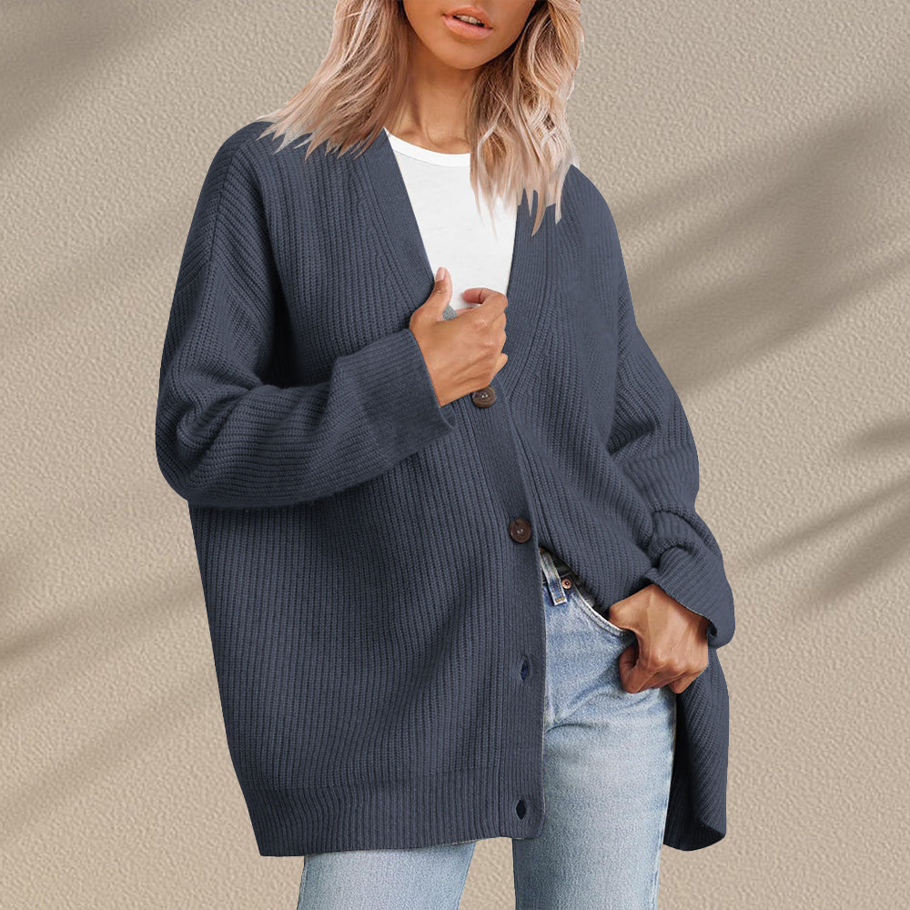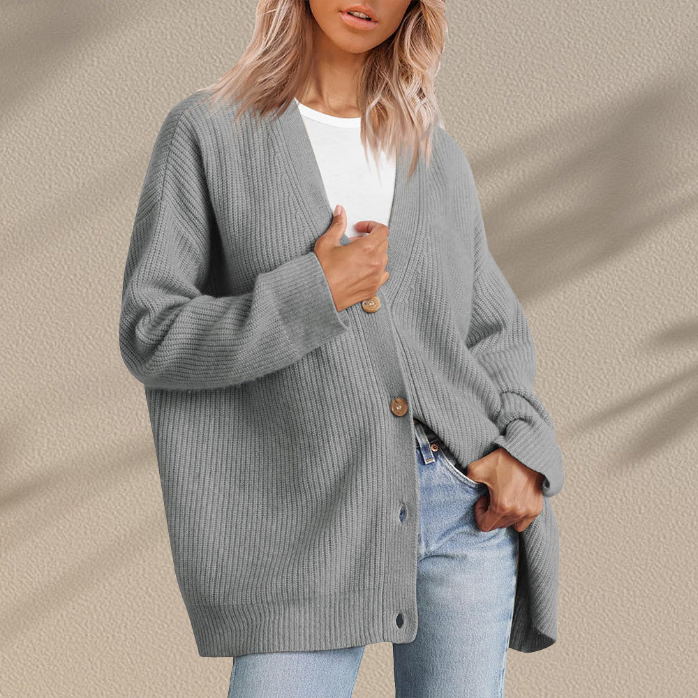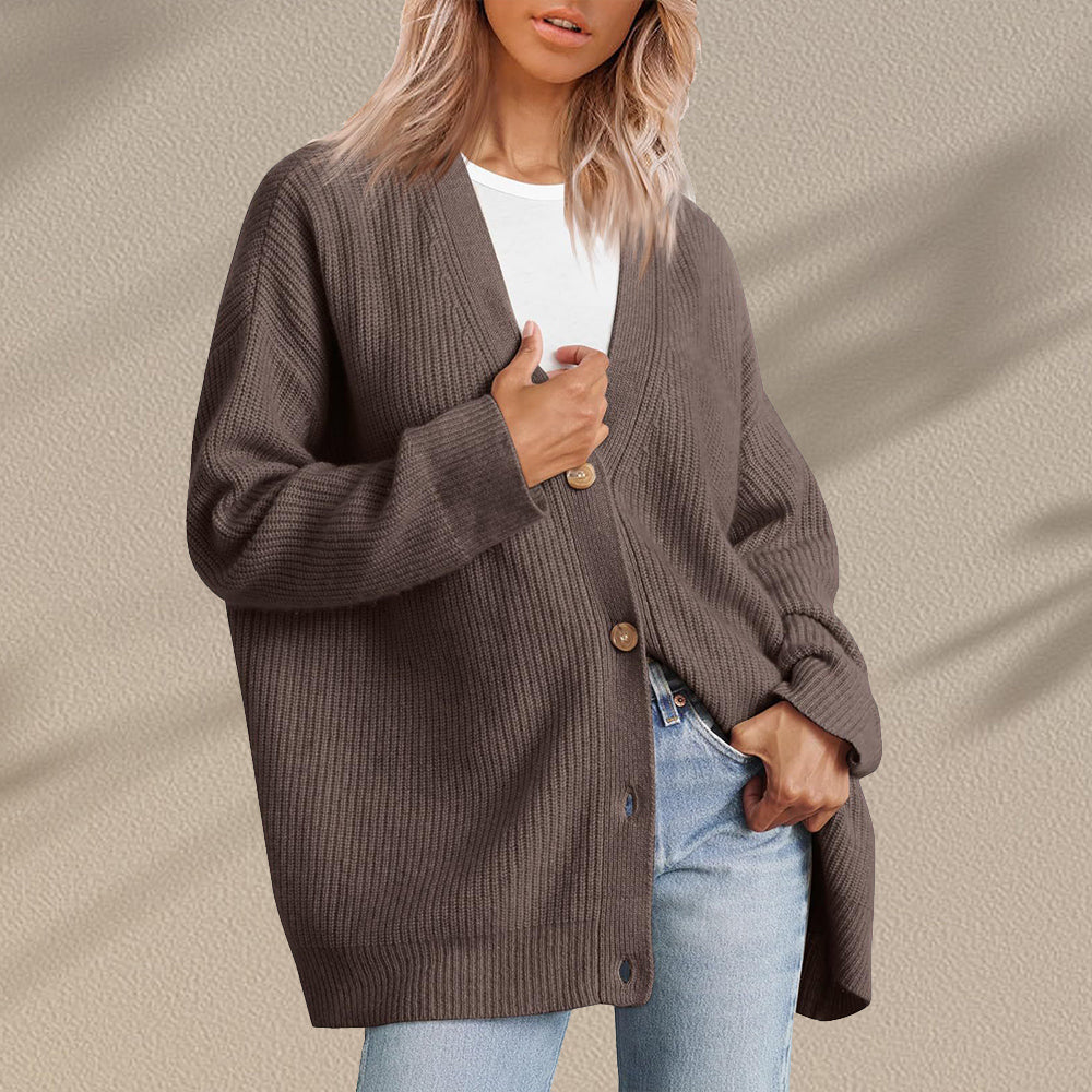 - 1 x Herbst- Und Winterneuheiten, Einfacher, Vielseitiger, Einfarbiger, Beliebter Damen-Strickjackenpullover
