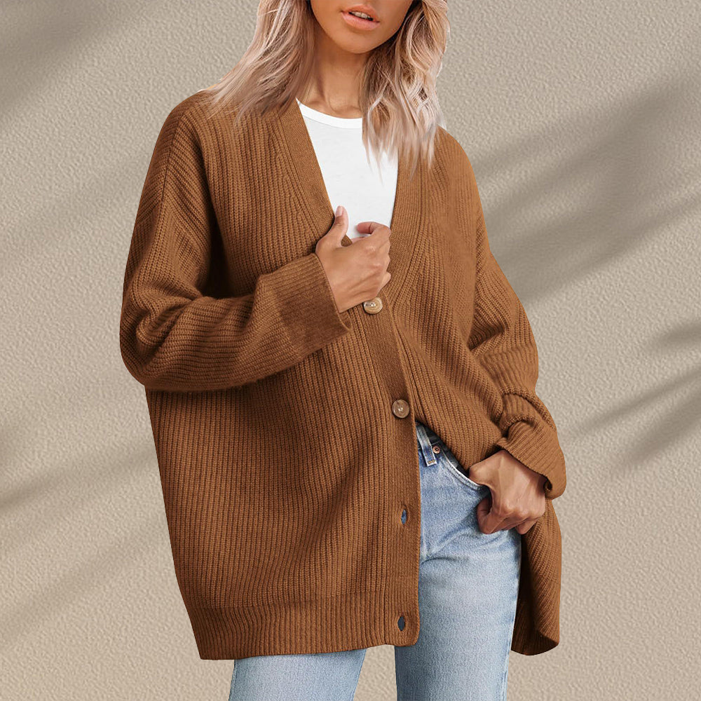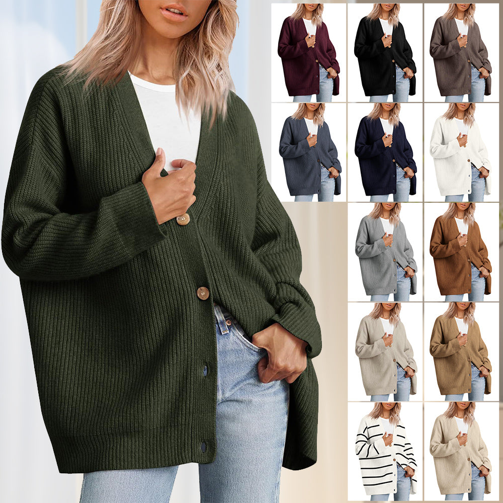 Herbst- Und Winterneuheiten, Einfacher, Vielseitiger, Einfarbiger, Beliebter Damen-Strickjackenpullover